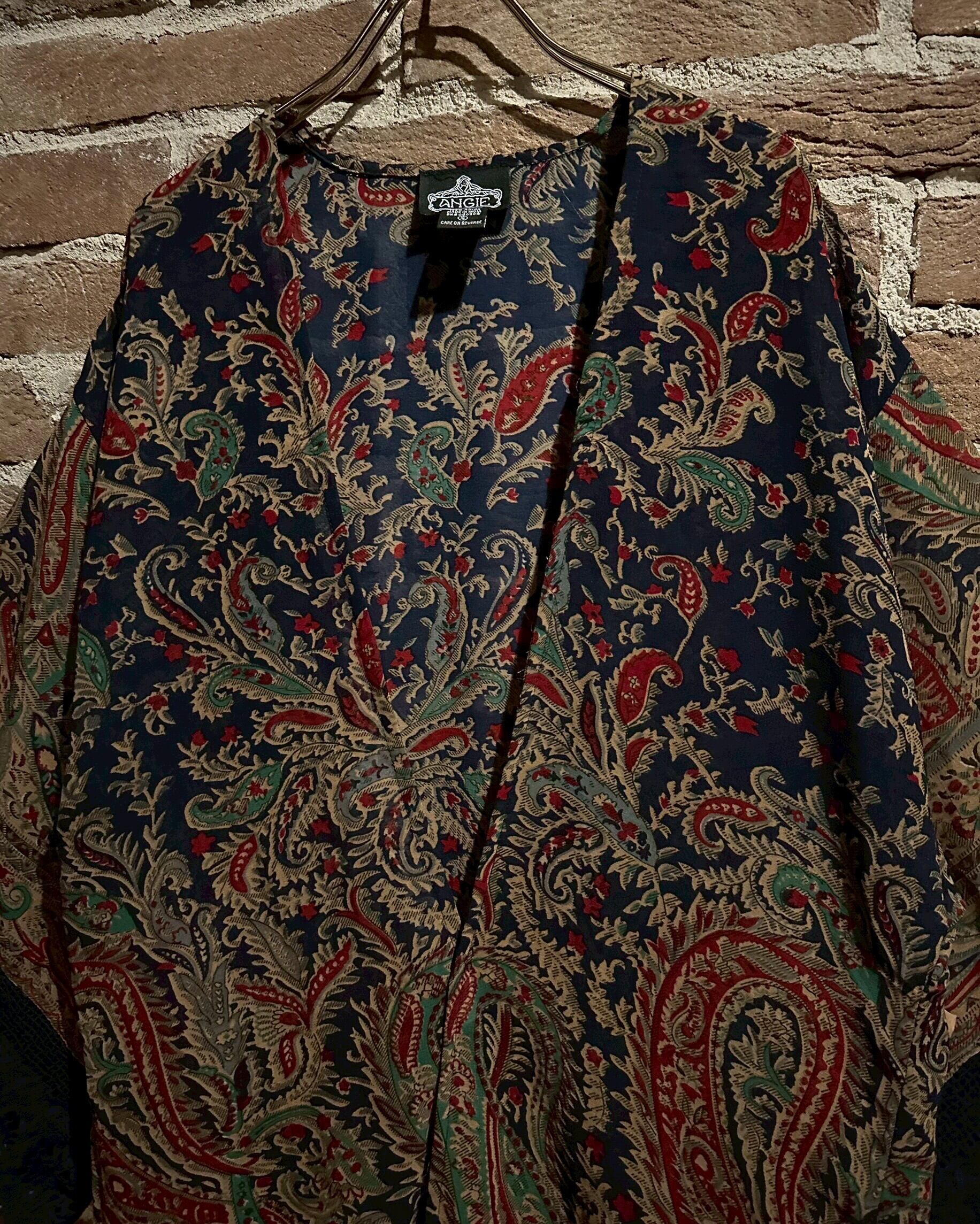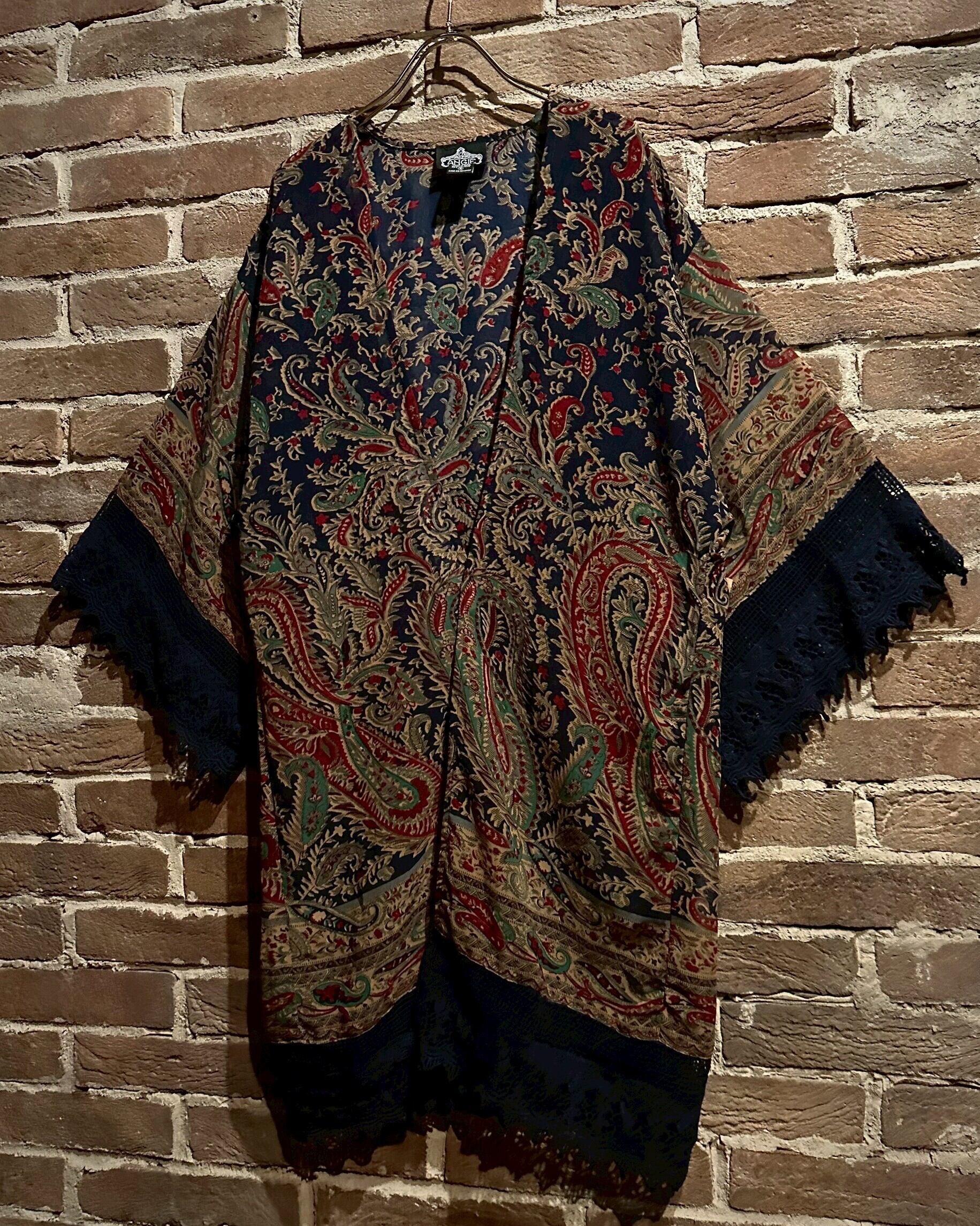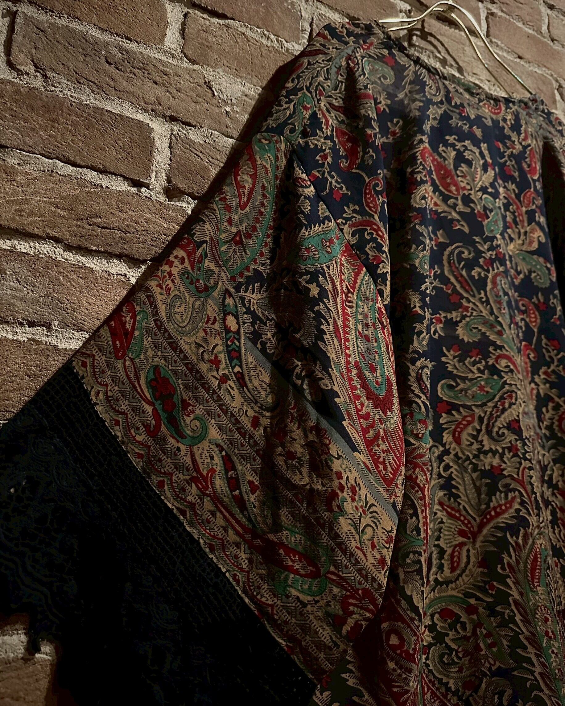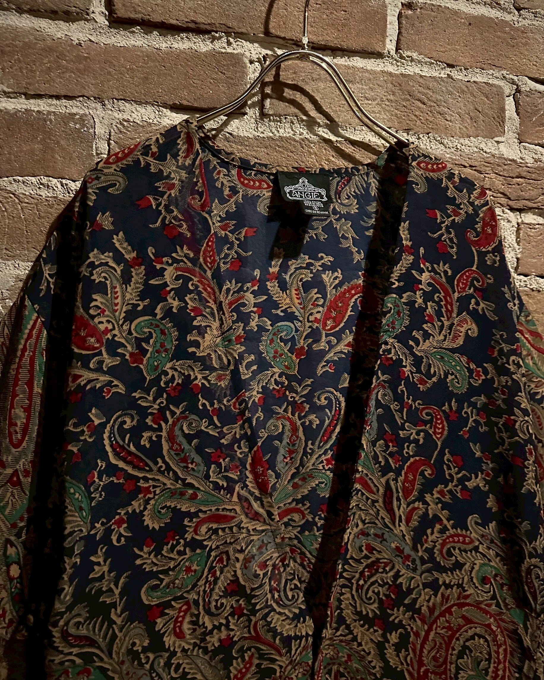 透け感のあるシアー生地をボディに用い、上品なペイズリー柄をボディ全面に載せ、袖口、裾にレースの装飾を施したガウン。