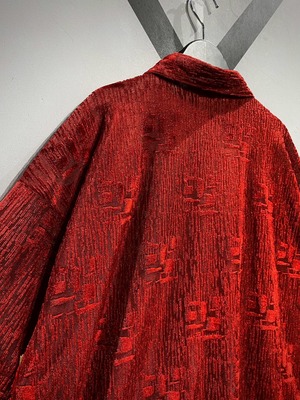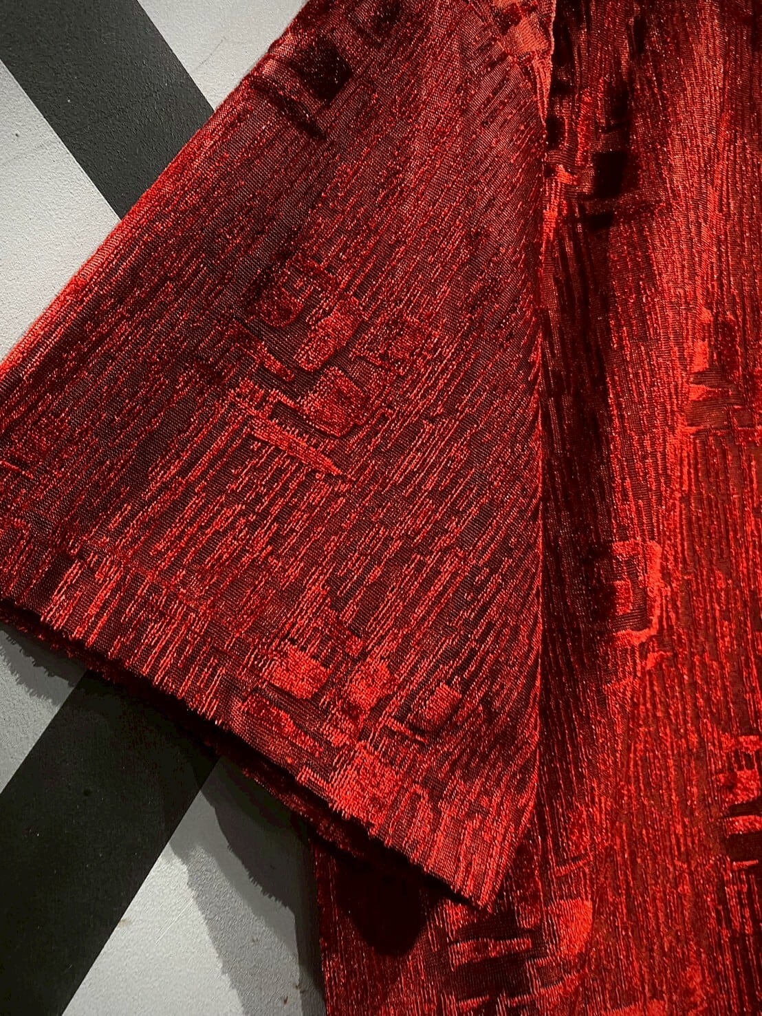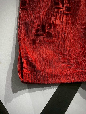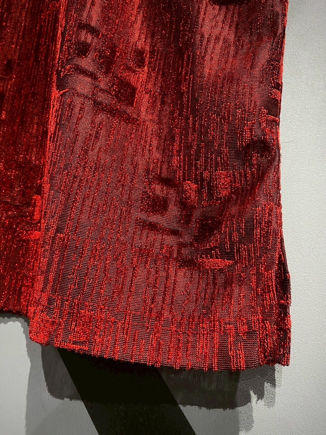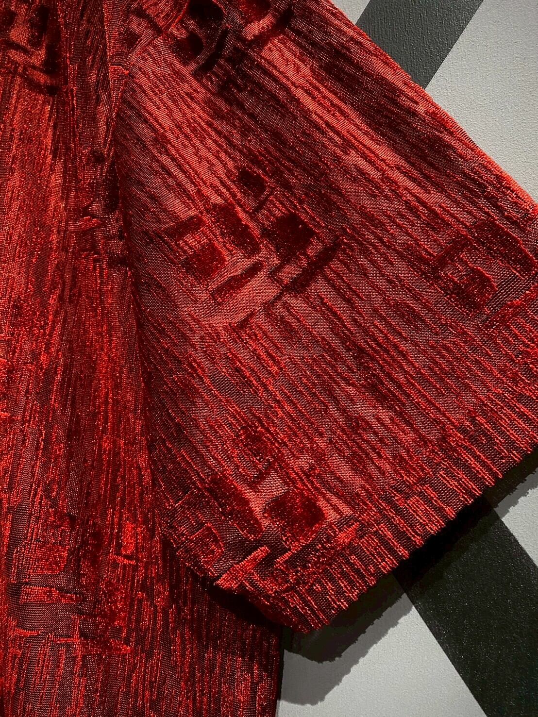 透け感と織りの立体感がマッチし、赤一色のボディに立体感がもたらされています。