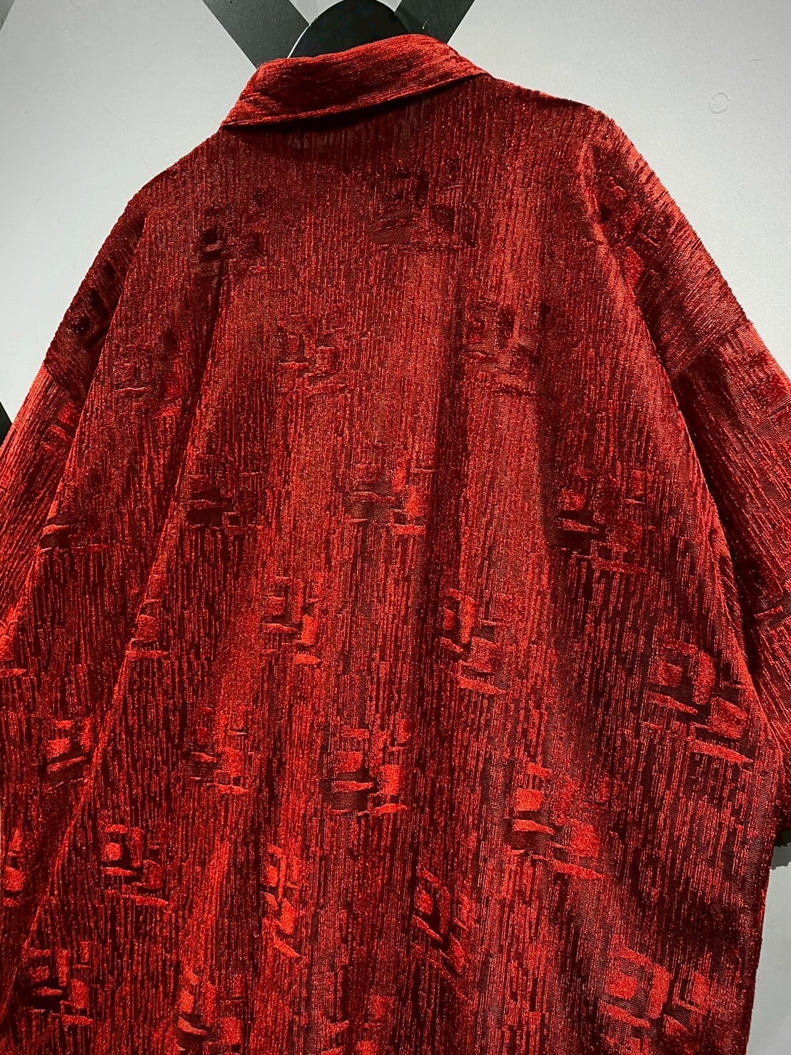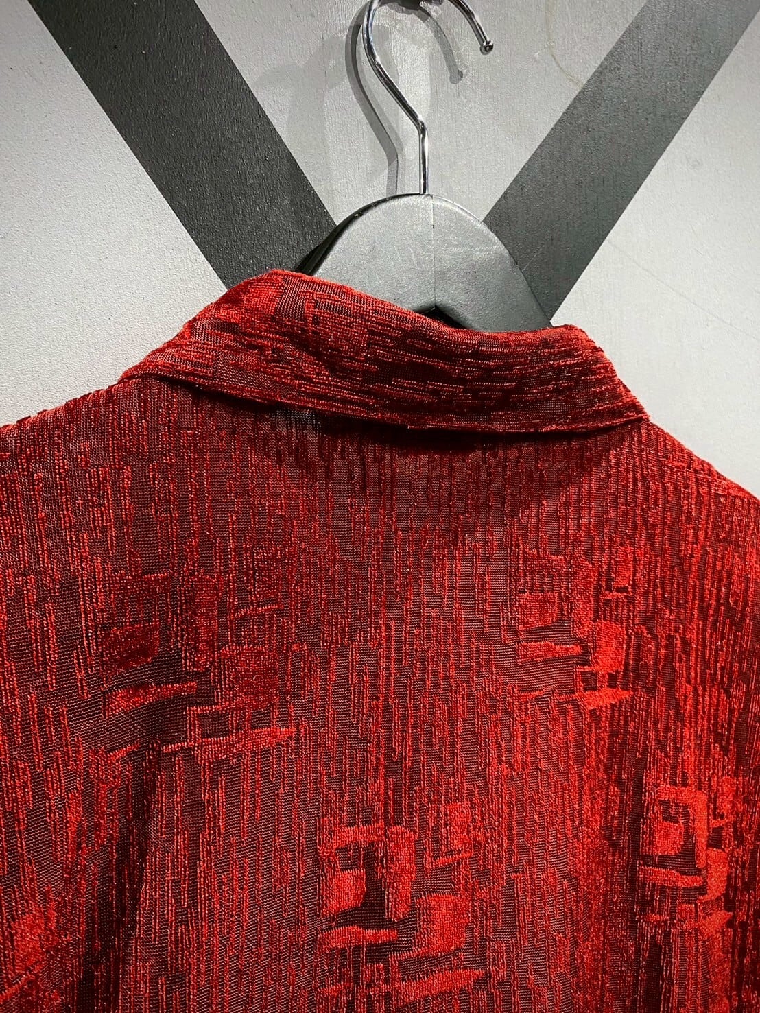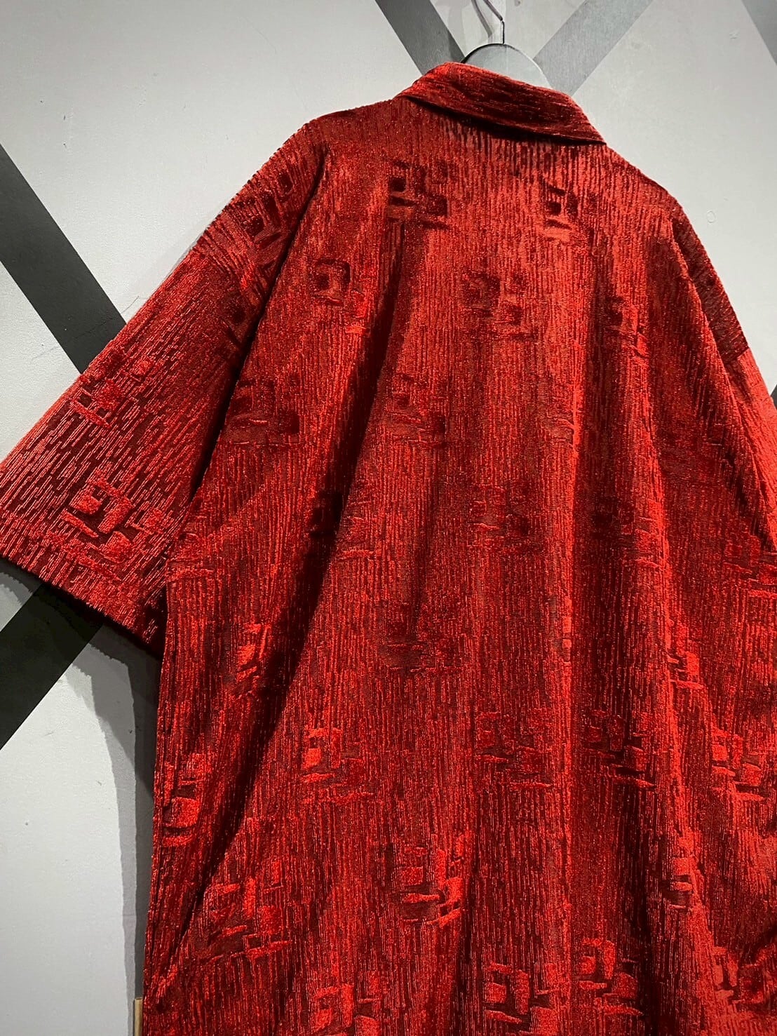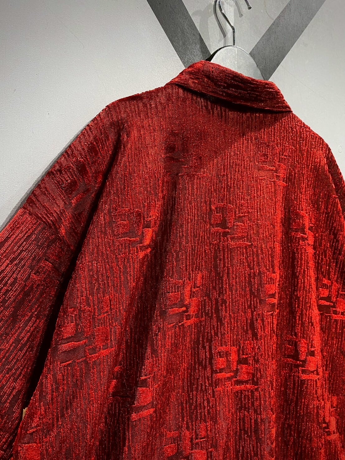 透け感と織りの立体感がマッチし、赤一色のボディに立体感がもたらされています。