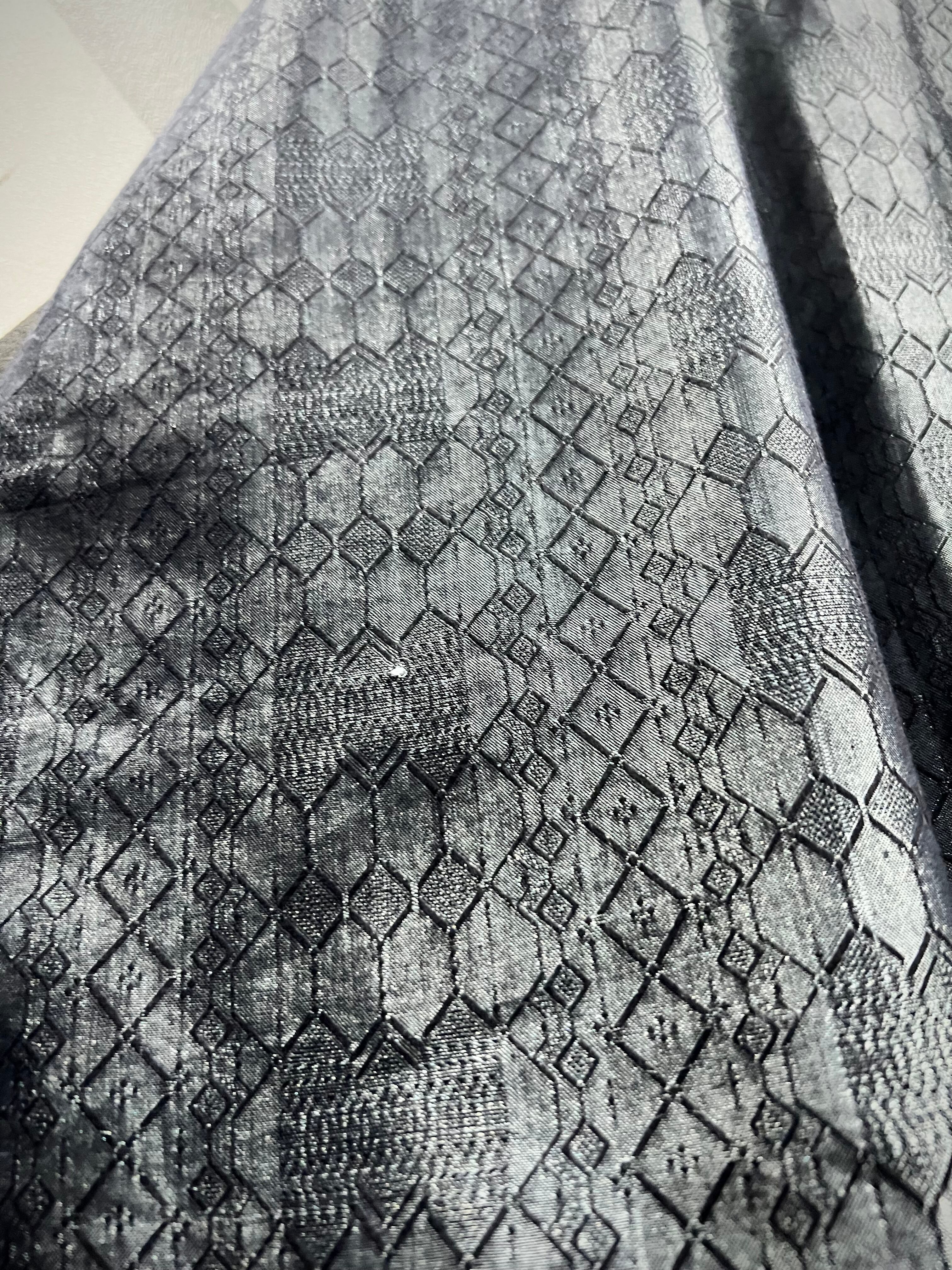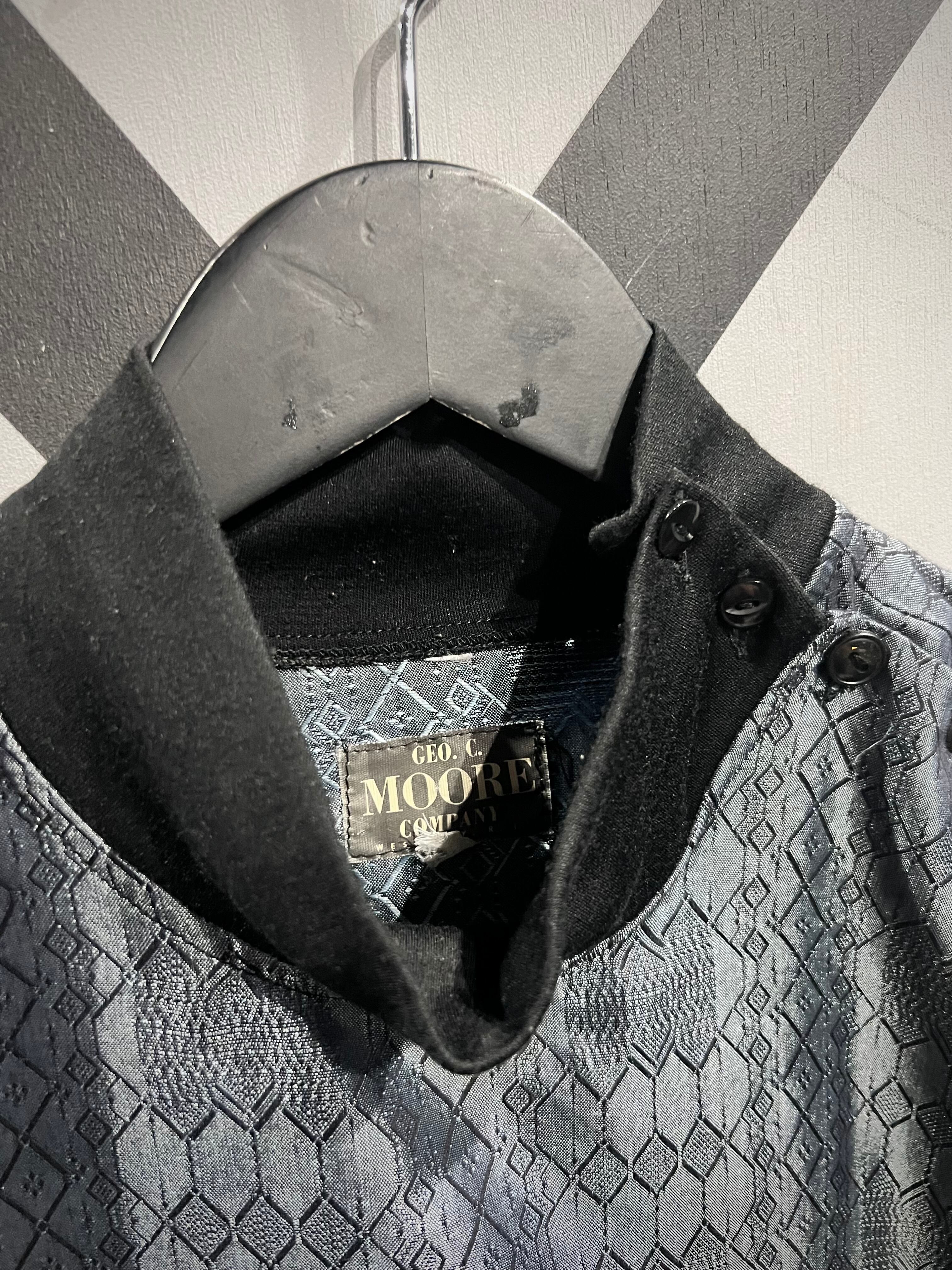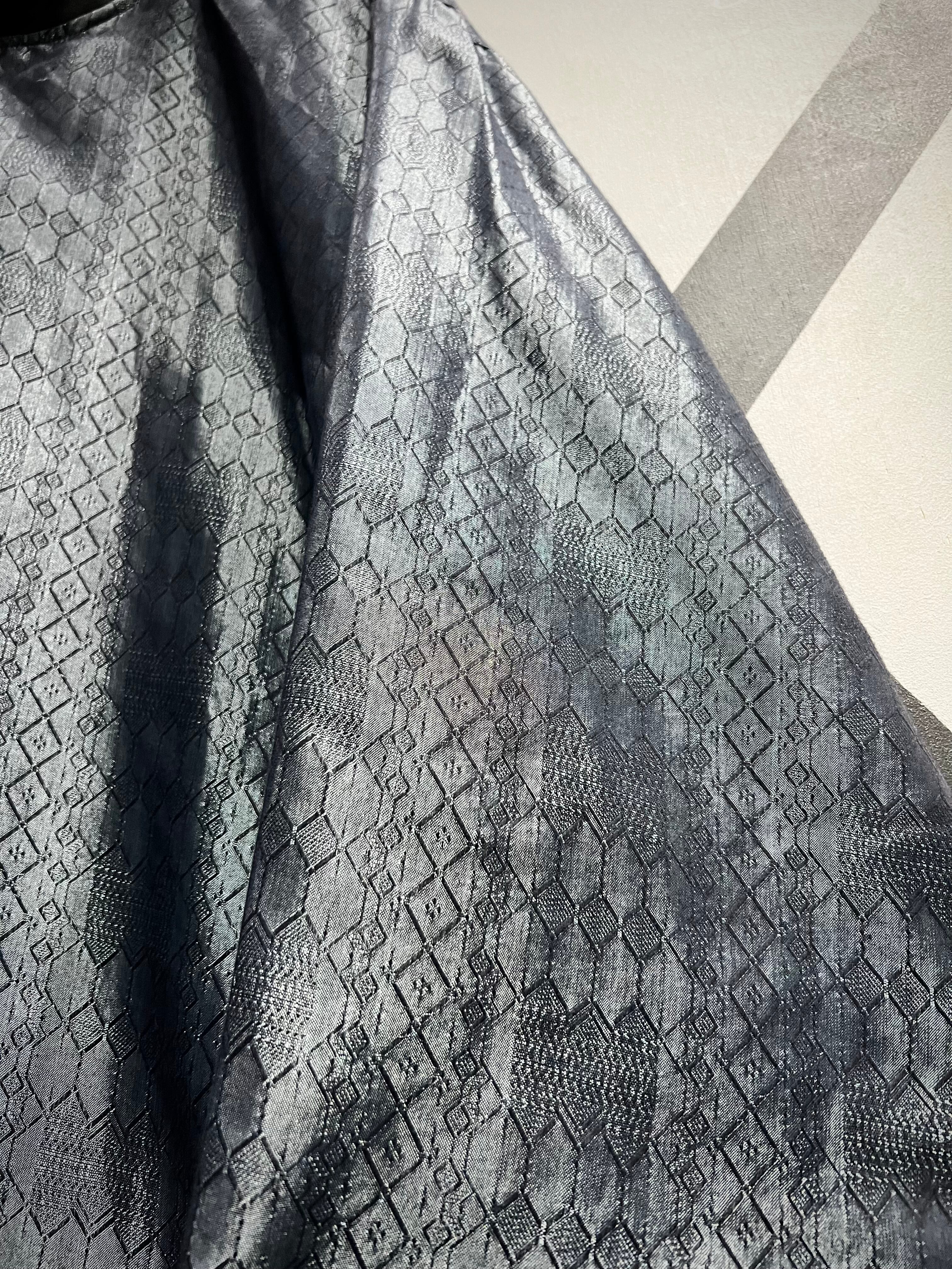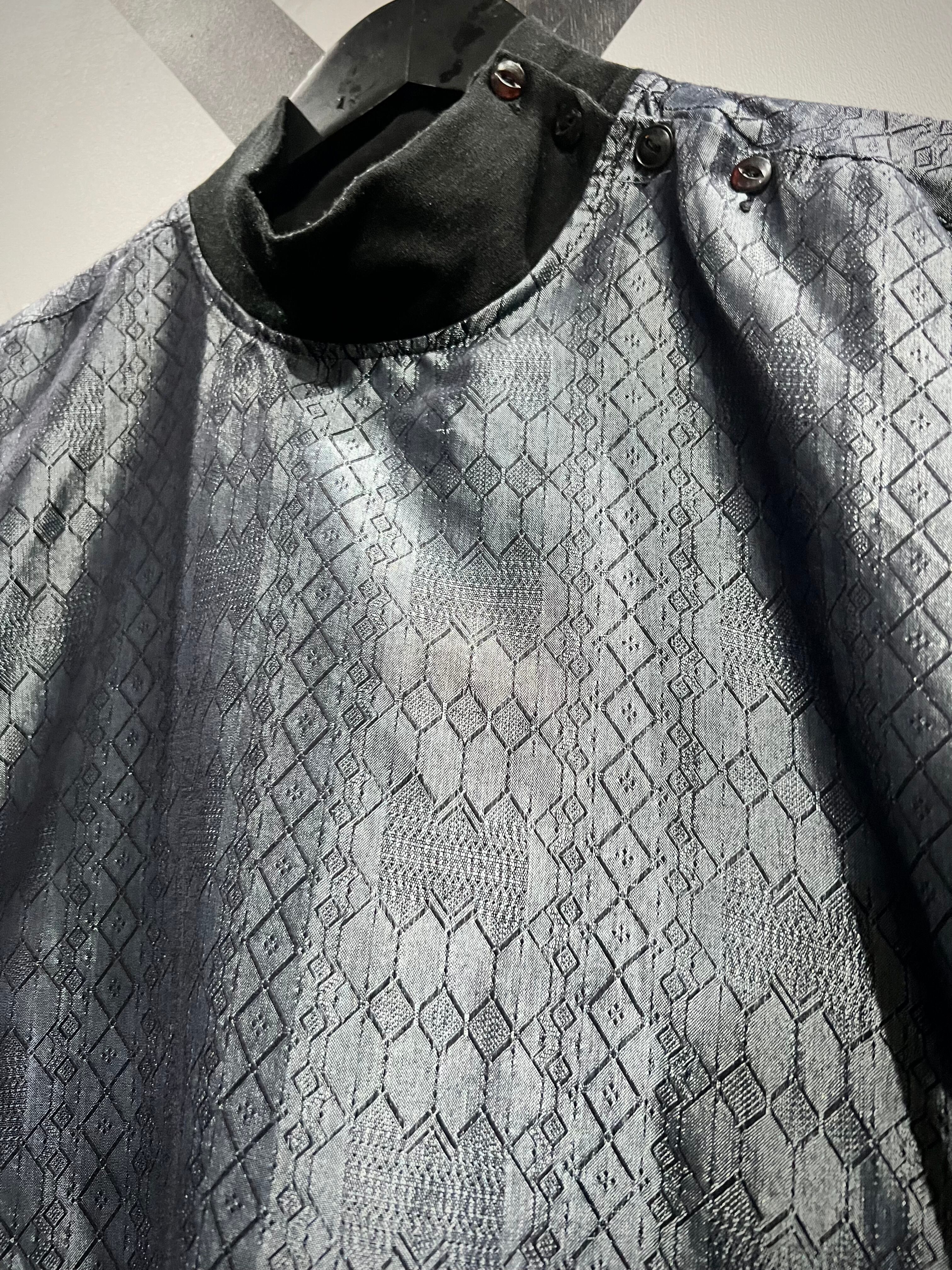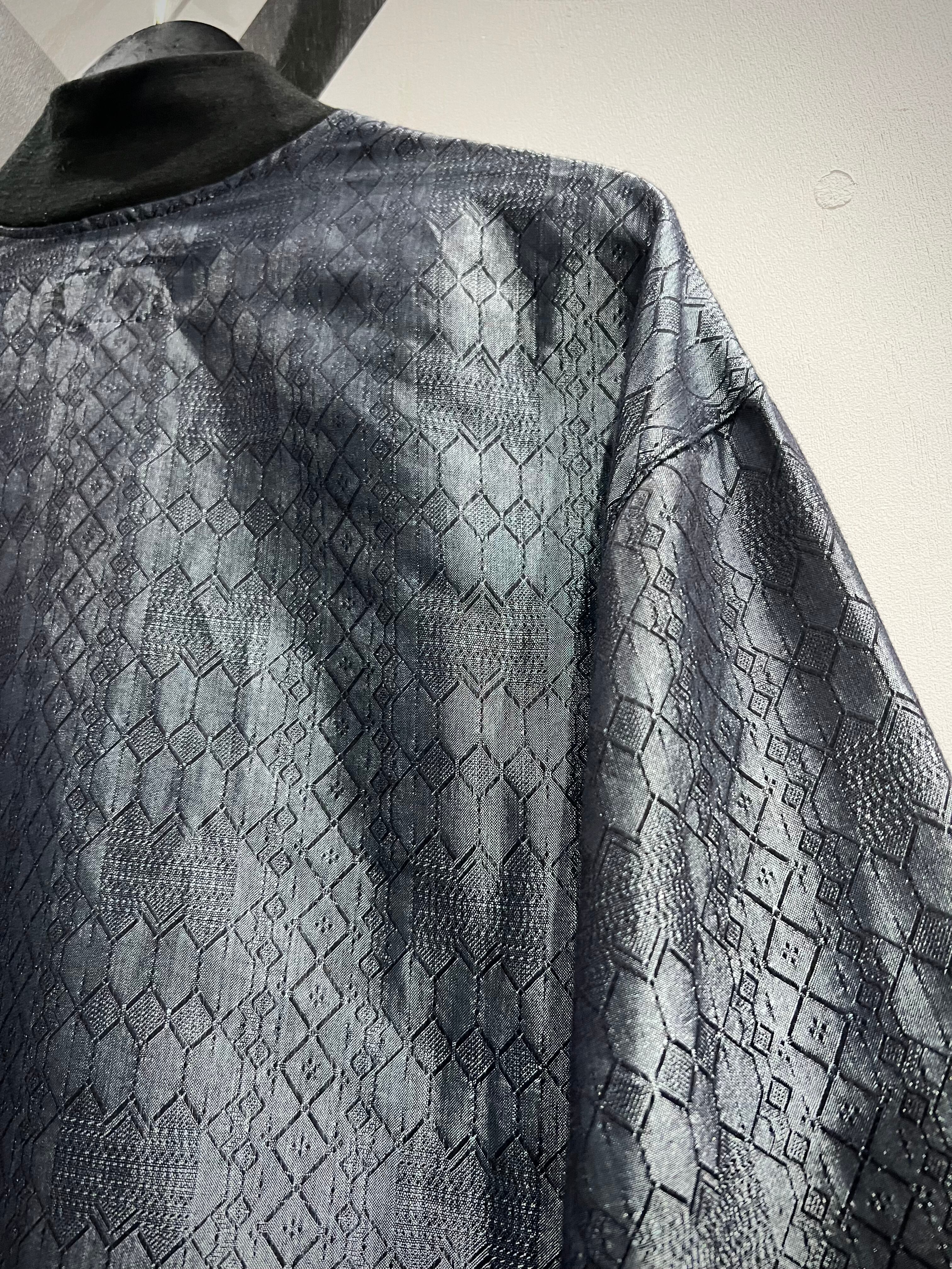 ソリッドな光沢に幾何学柄を掛け合わせた事でモードな雰囲気を漂わせる仕上がり。今季メタリックやグリッターノリは超気分、めちゃくちゃイケてます、、、ネック部分のボタンもデザインのアクセントに。
