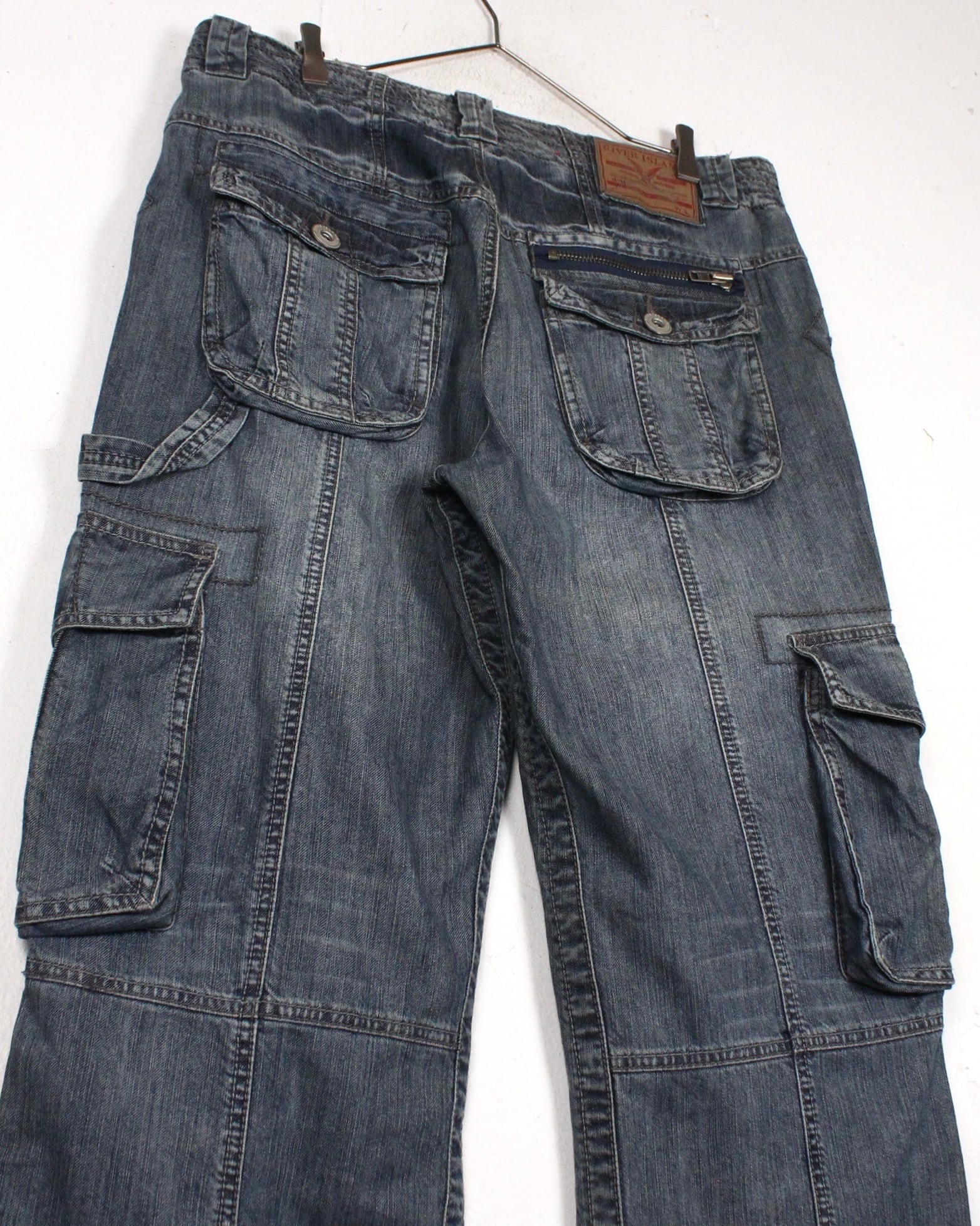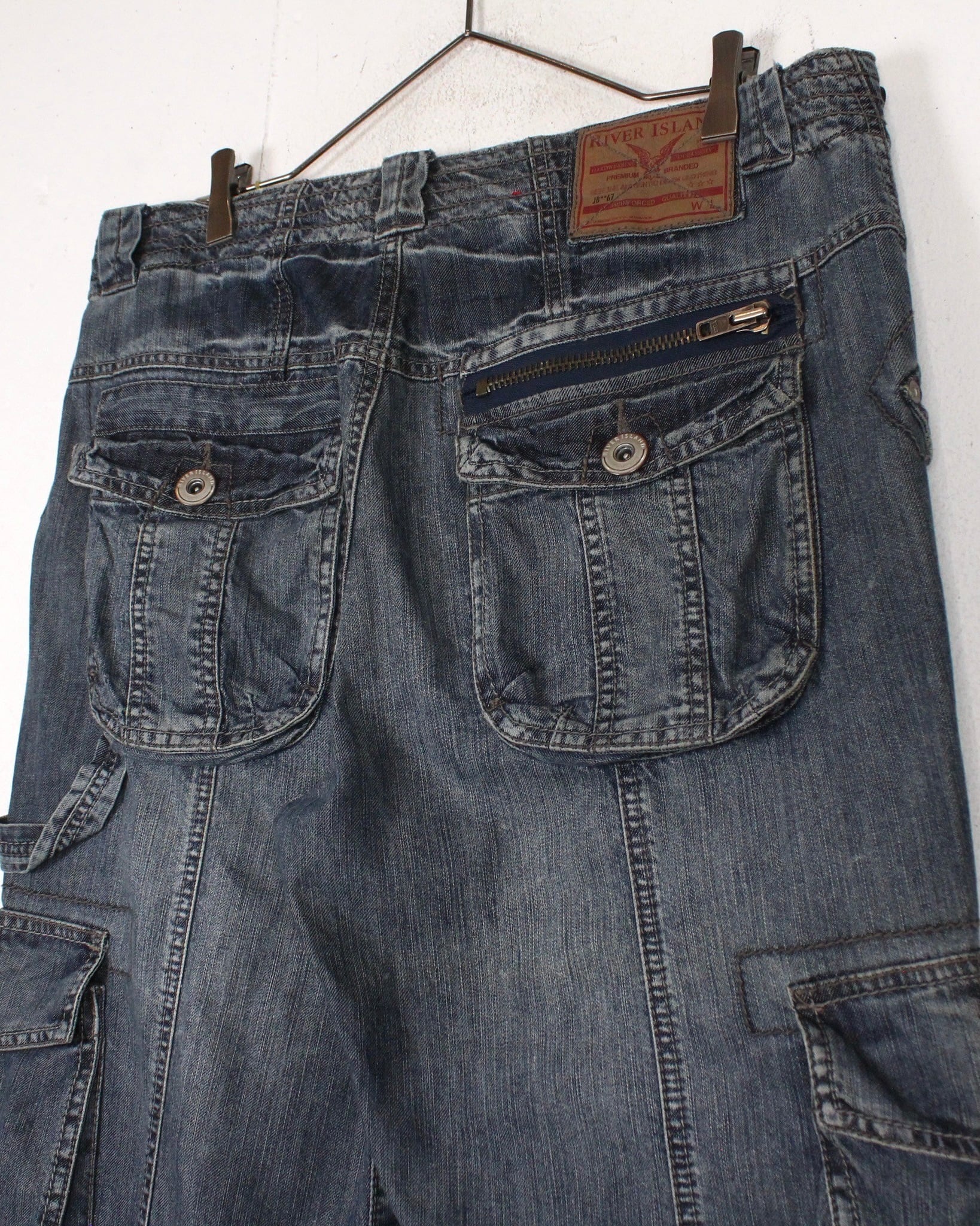 コシのあるデニム素材に、ボディサイドに特徴的なカーゴポケットを施したデニムカーゴパンツ。