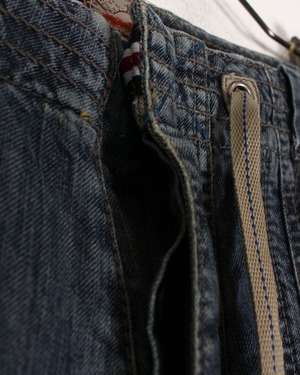フェードしつつも状態良好なデニム素材で、着用していくとデニムならではの経年変化からなる独特な表情が更に浮かんでくる、武骨で荒々しい印象がめちゃくちゃ格好良い一品です。