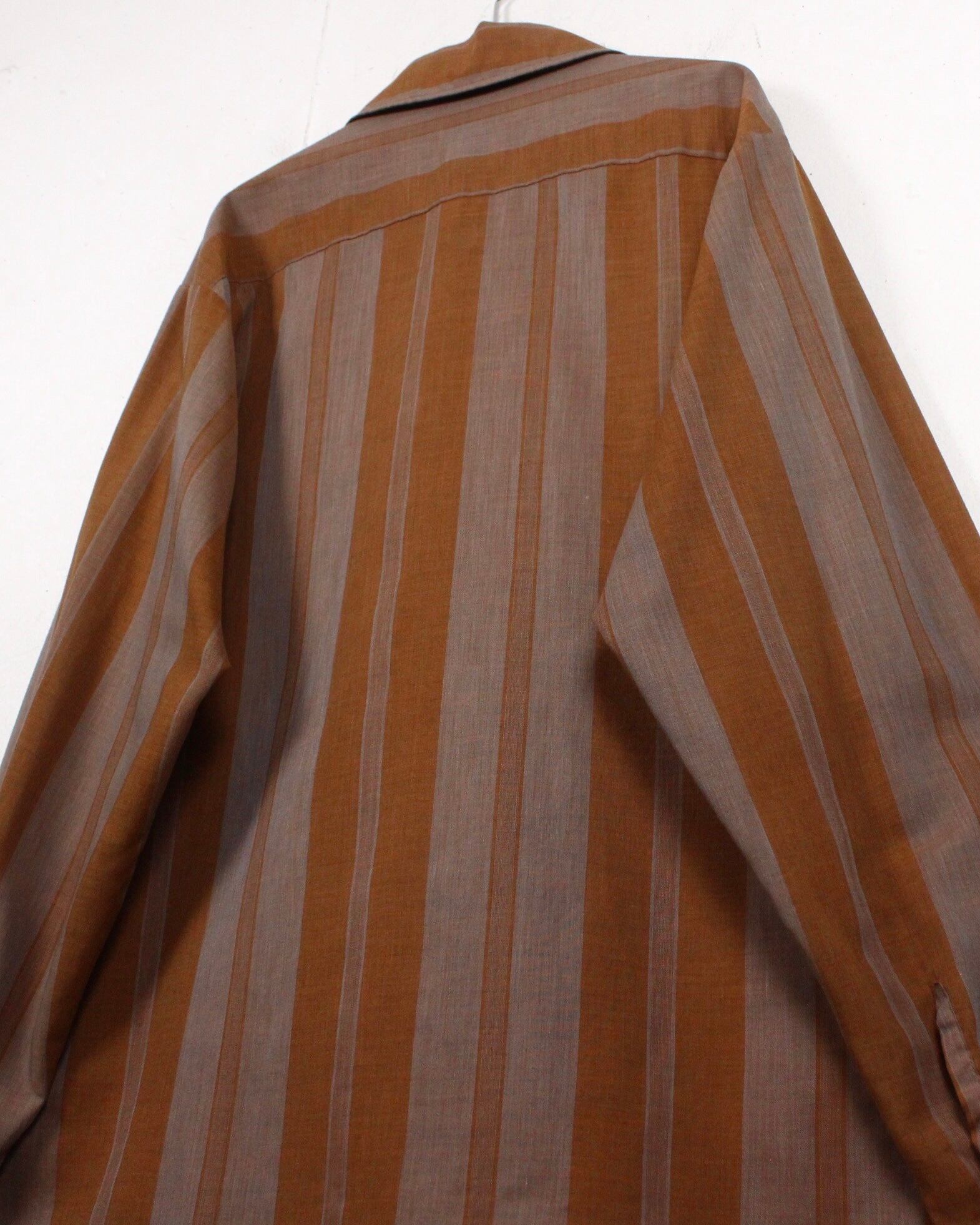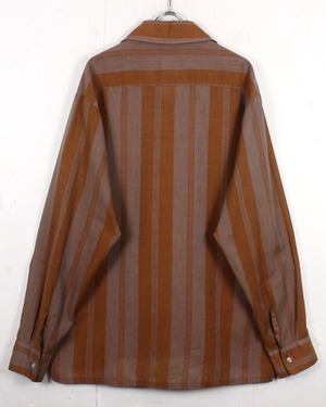 肌触りの良い、軽やかなシャツ生地を用いてストライプを載せた長袖オープンカラーシャツ。