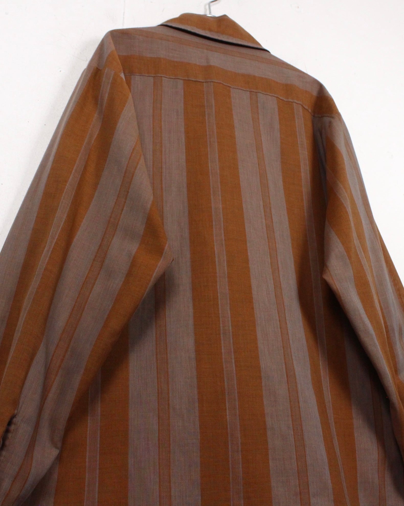 この年代特有の大きな尖った襟をアクセントに、フロントにはパッチポケットをON。シンプルながらヴィンテージならではの雰囲気を漂わせますね。