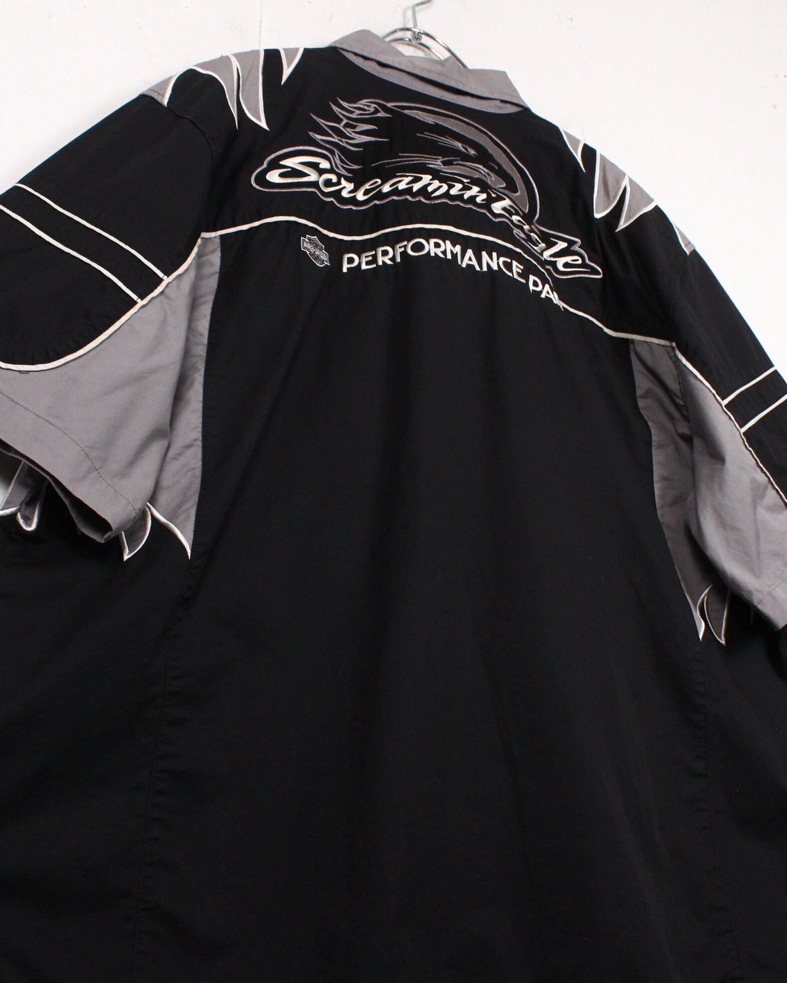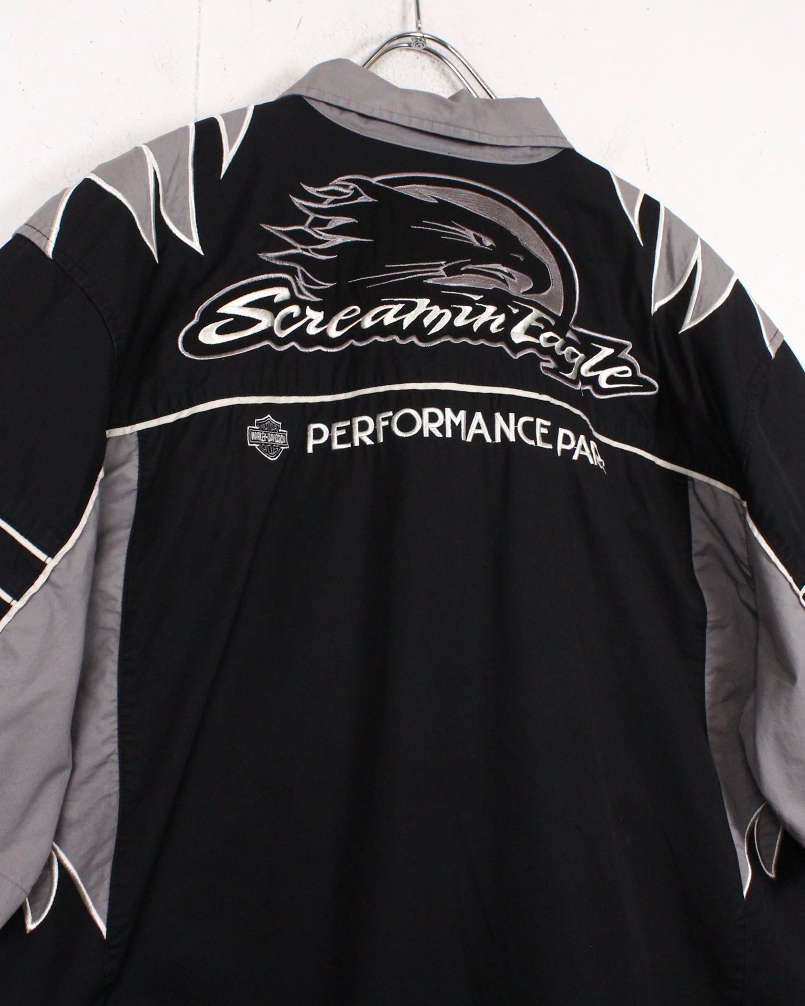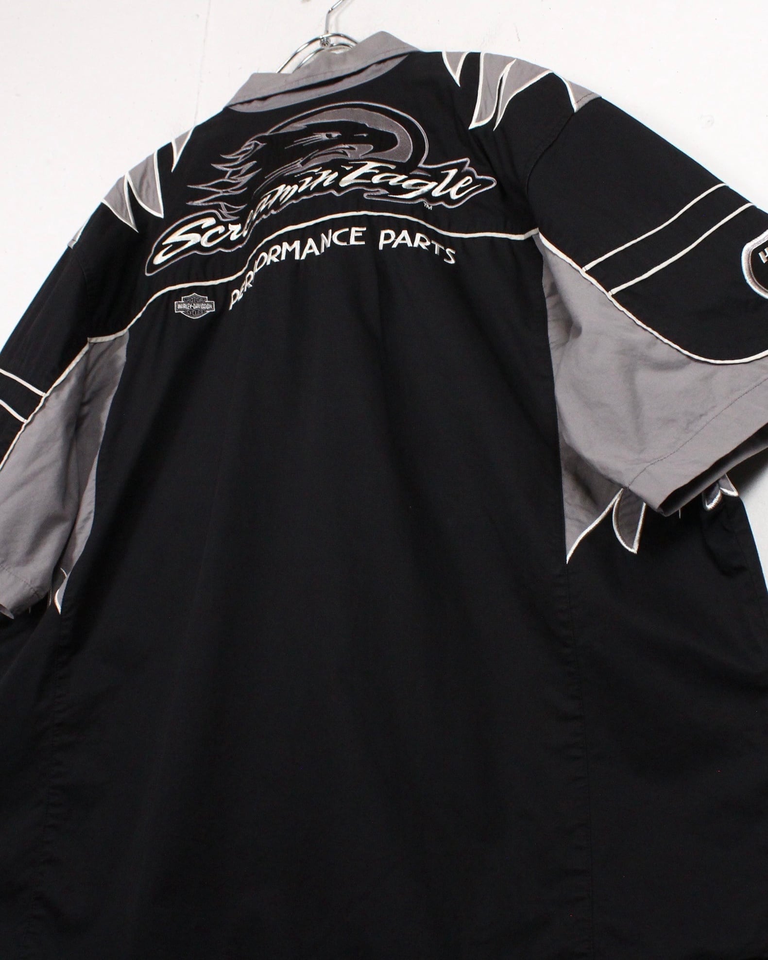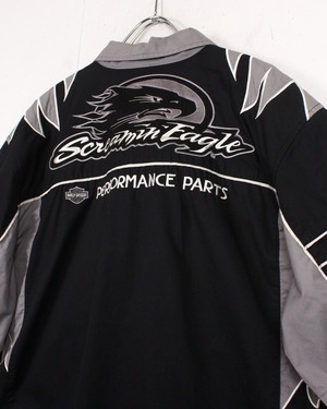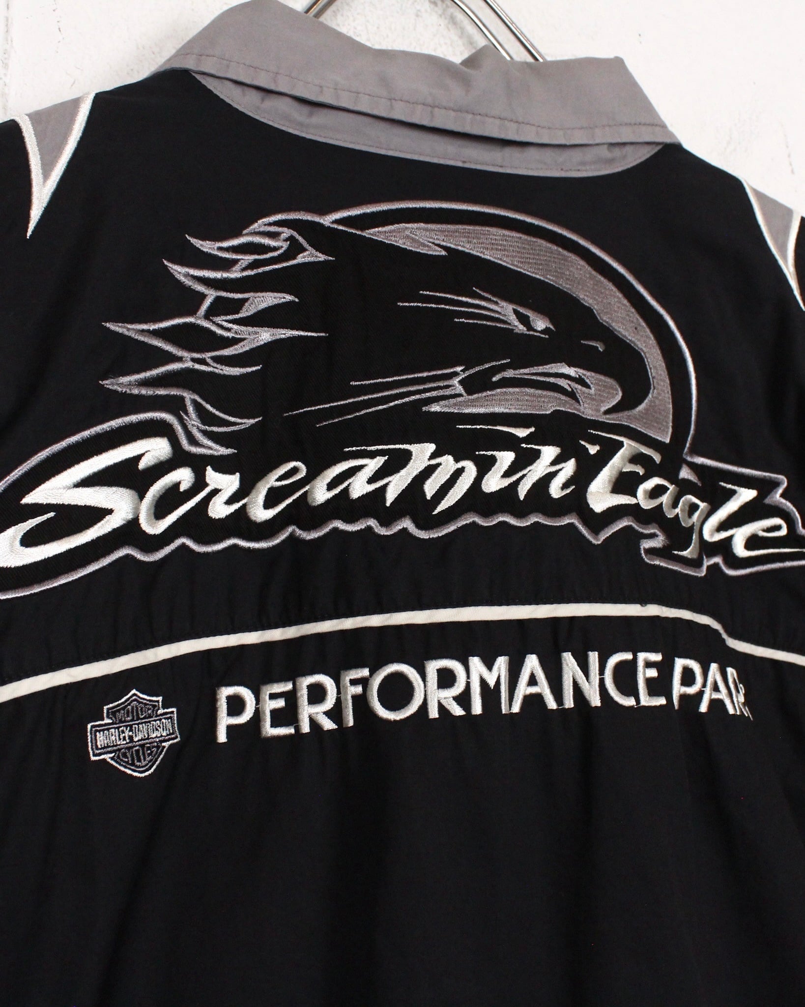 フロント、背面には全世界で圧倒的人気を誇るハーレーが使用しているレーシングパーツブランド"Screamin Eagle"のアイコニックなブランドロゴをプリントとワッペンでON。