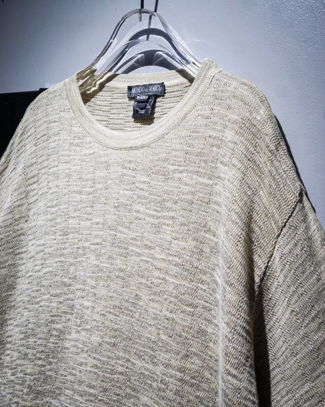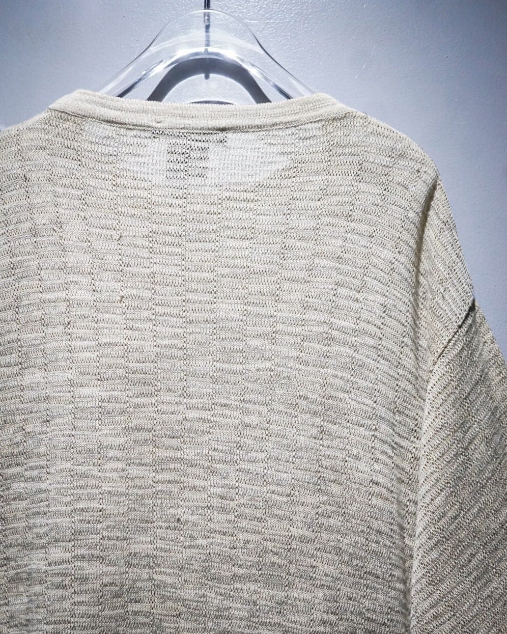アイボリーをベースとした柔らかなカラーリングに、繊細かつザックリとした編みによるニット特有の風合いを漂わせる逸品。
