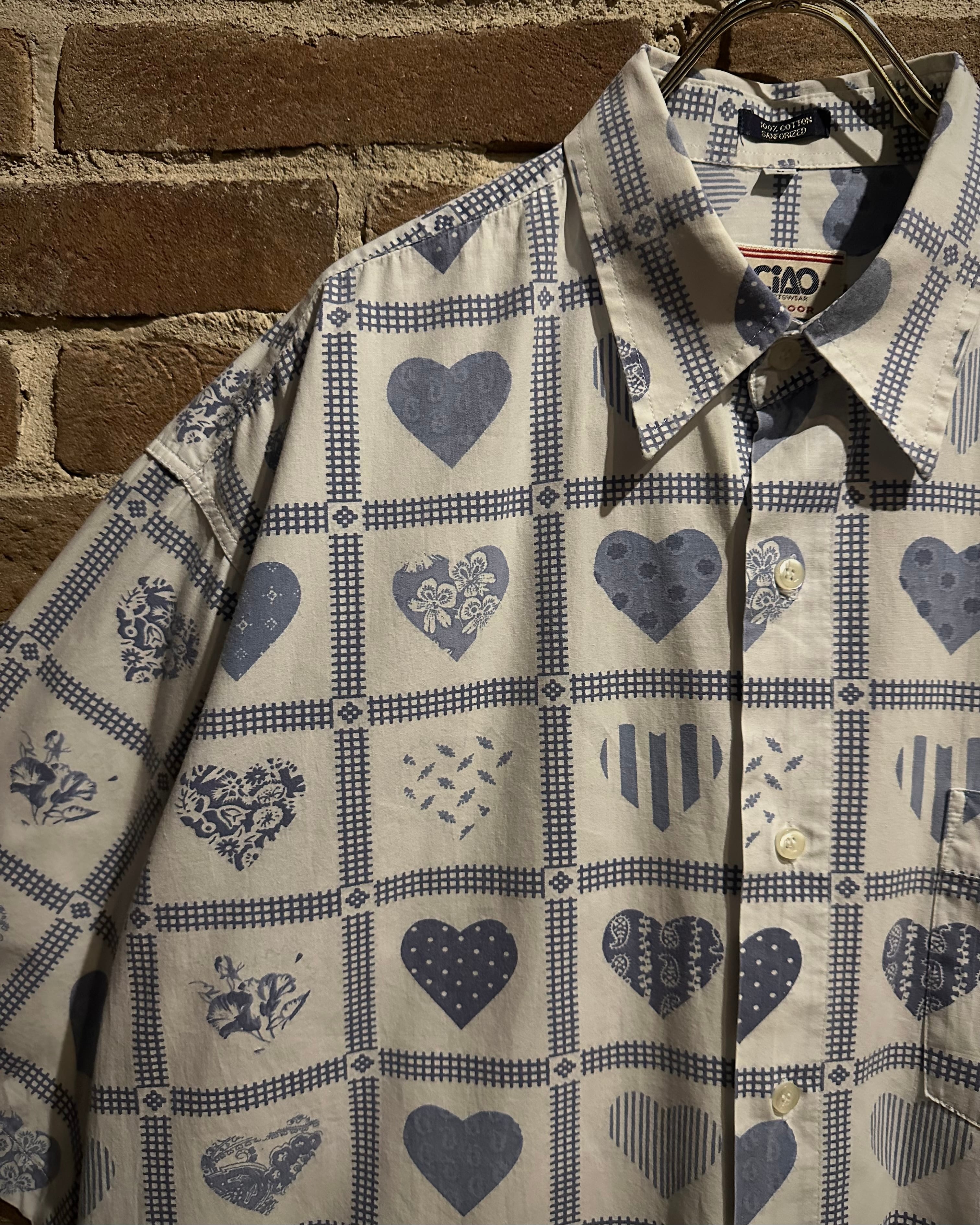 総柄ながらも落ち着いた雰囲気、当店らしいレトロさを併せ持った半袖シャツの逸品です。