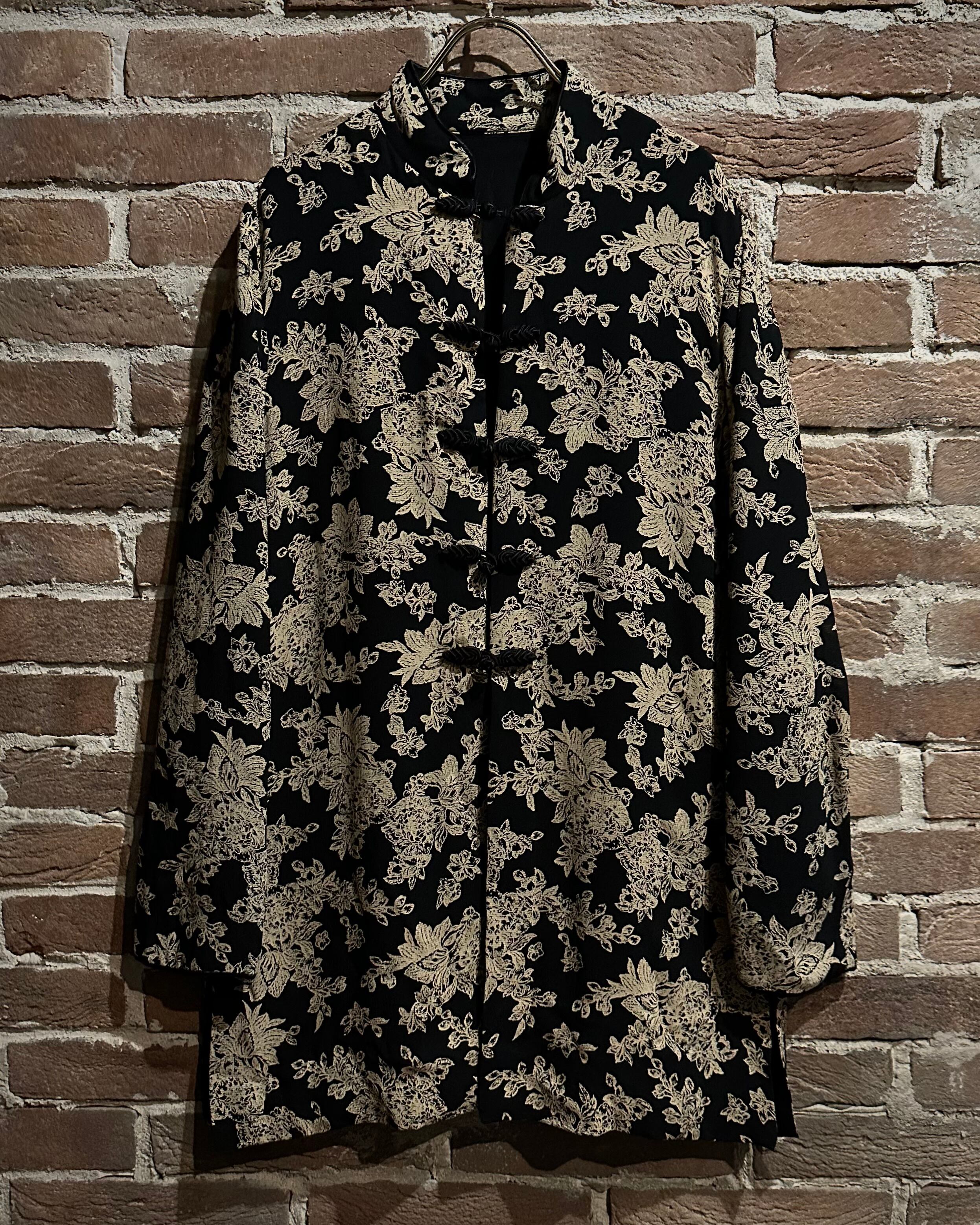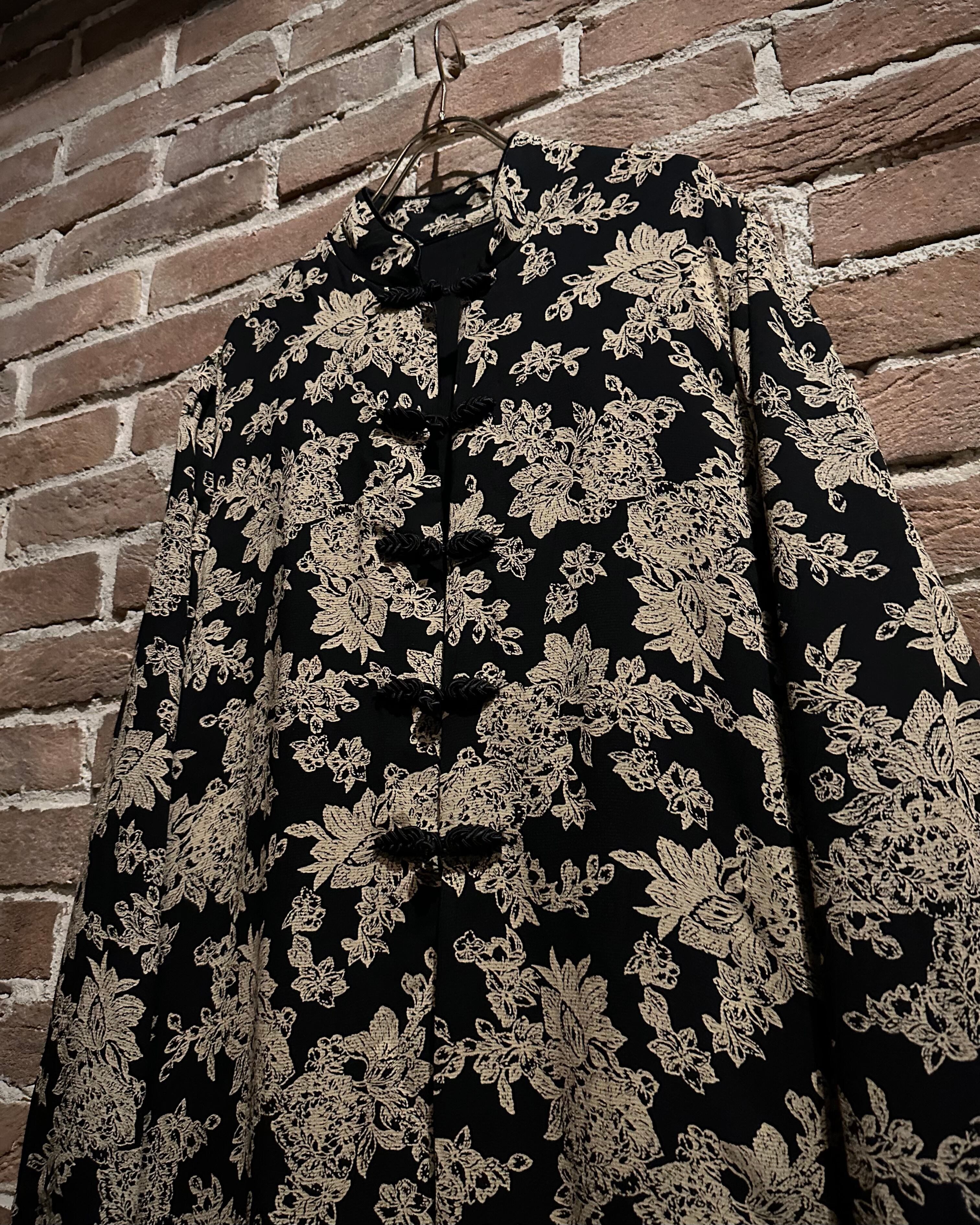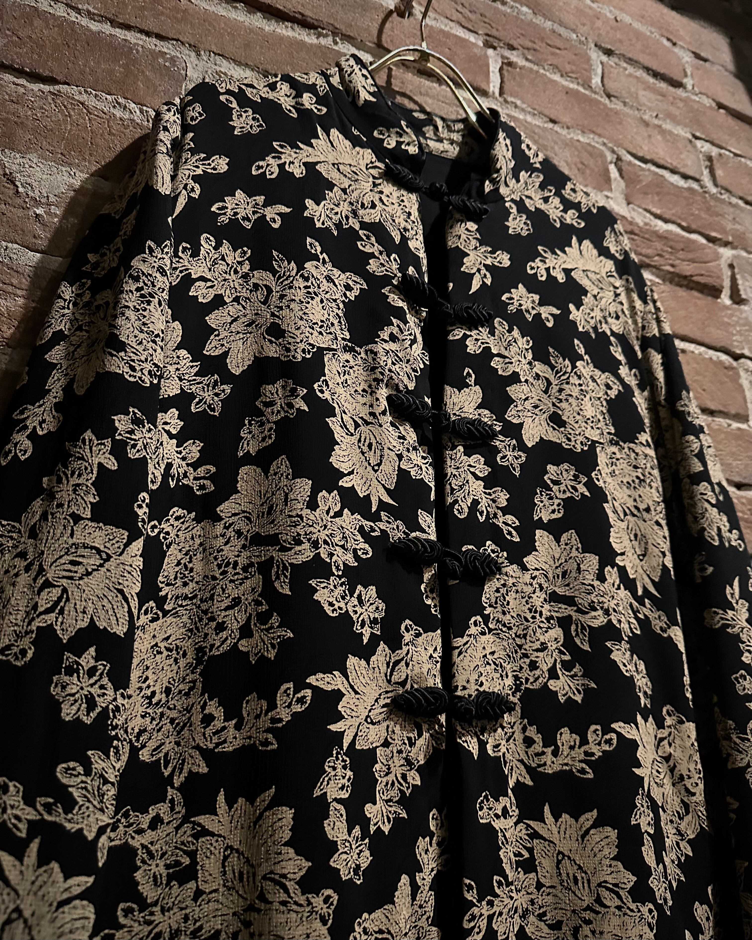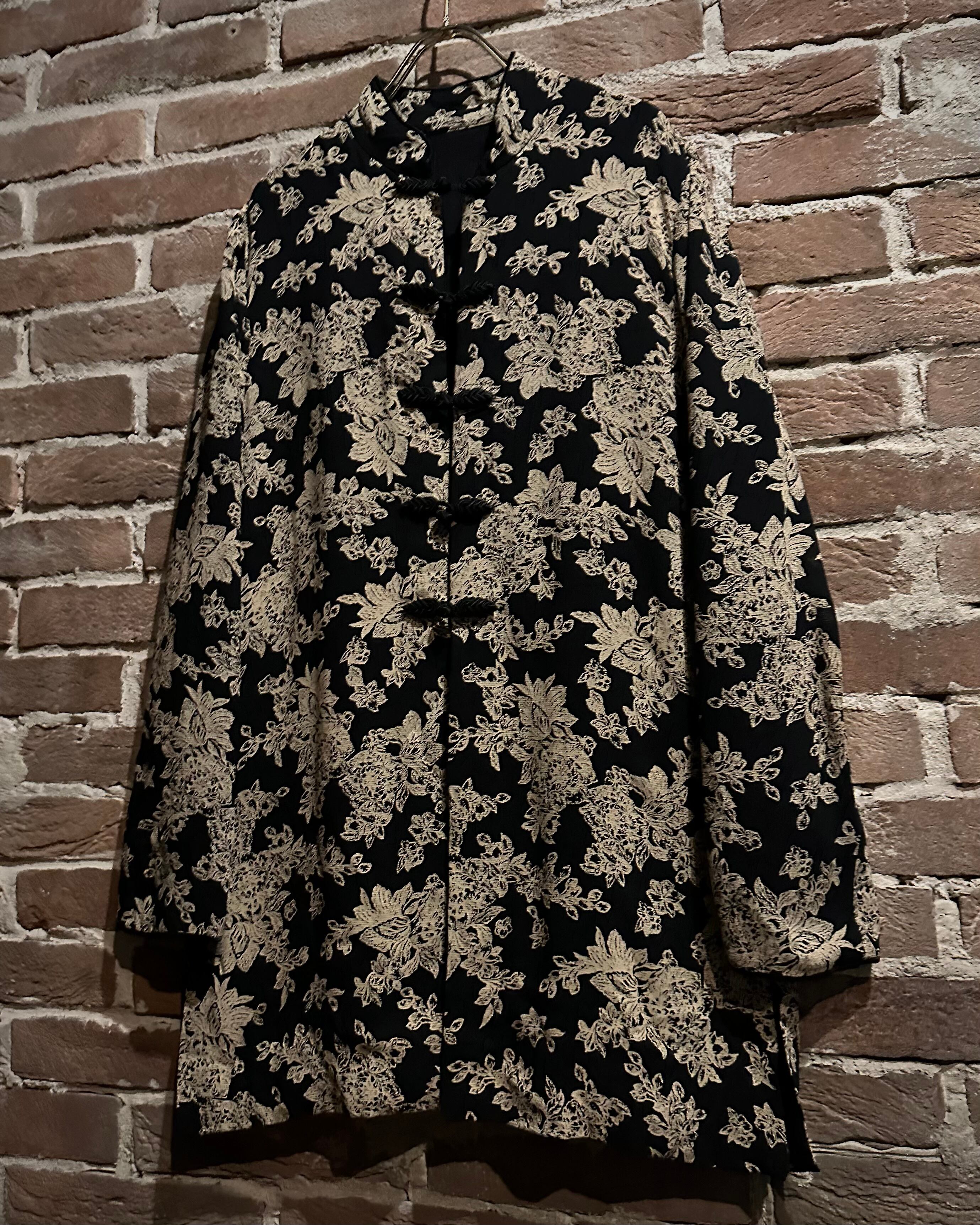 サラッと肌触りの優しいレーヨンをベースに、レトロな花柄を載せたチャイナシャツジャケット。