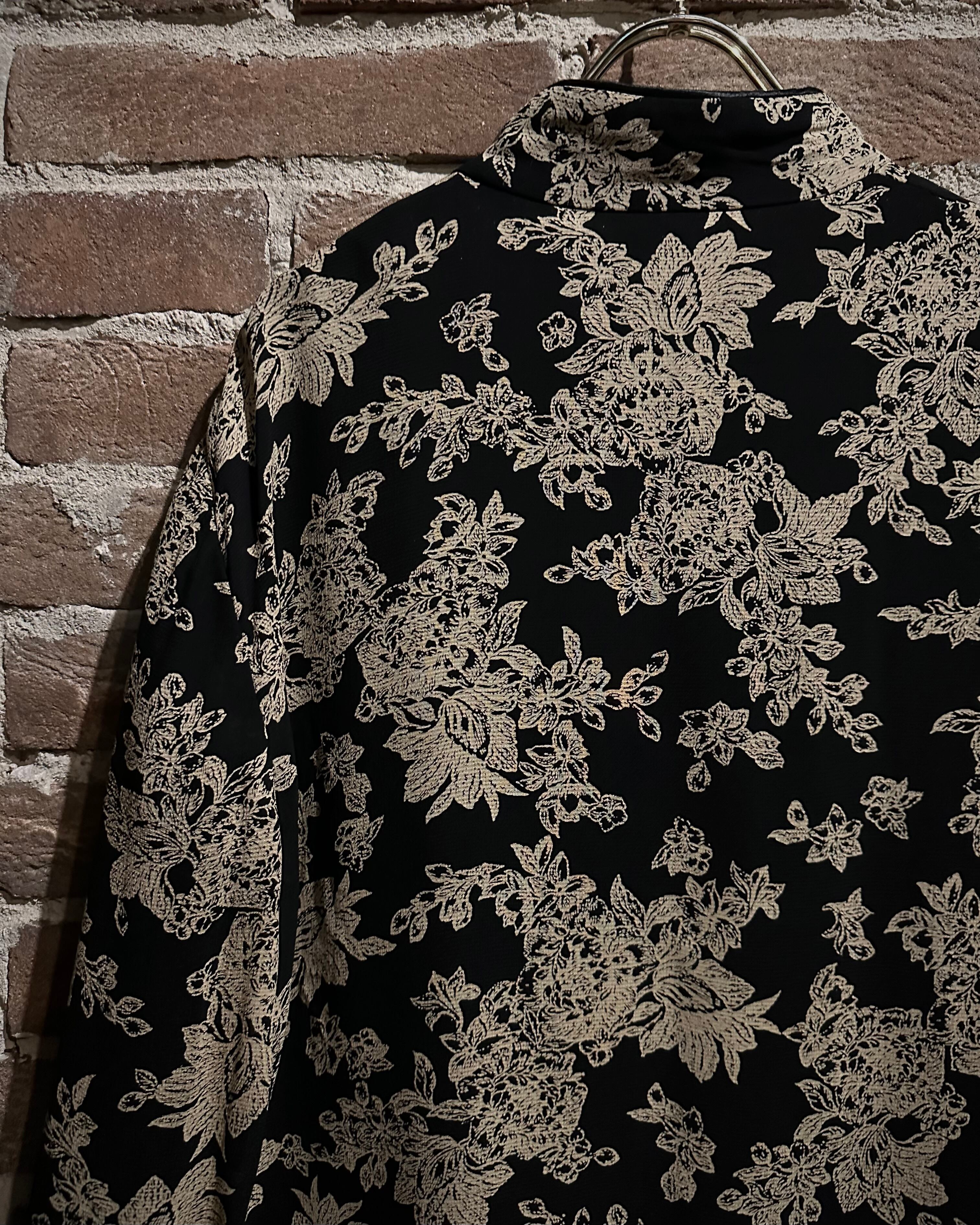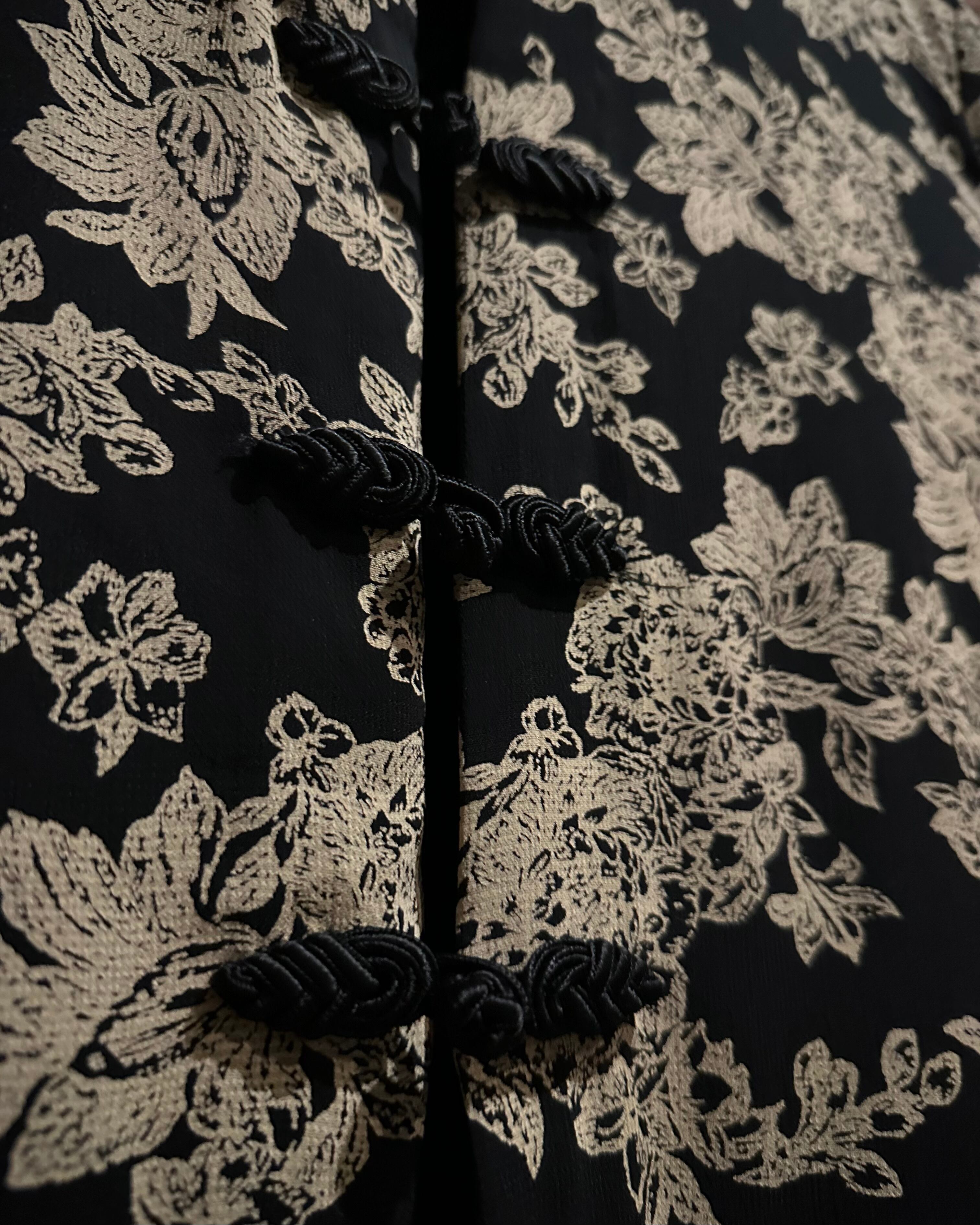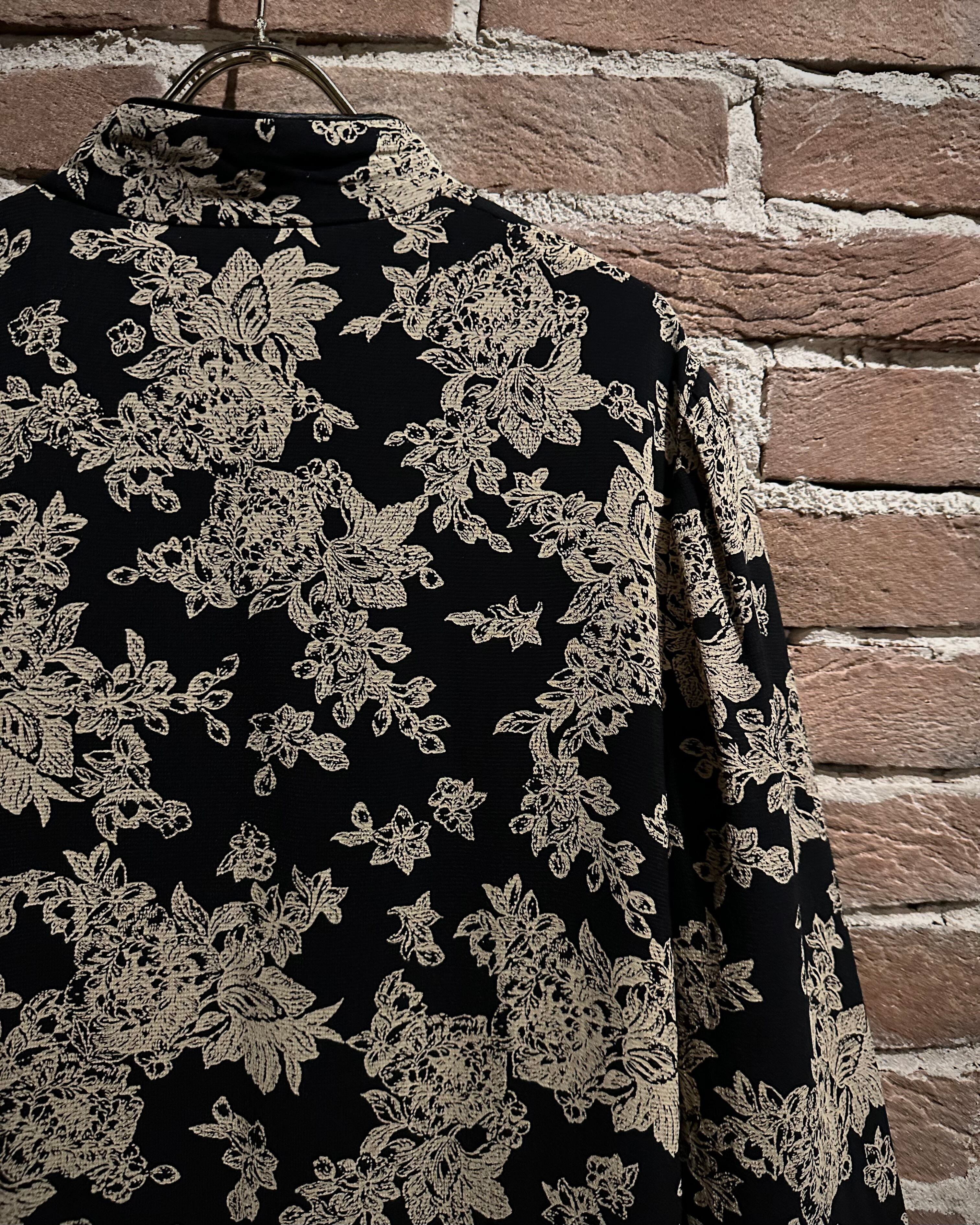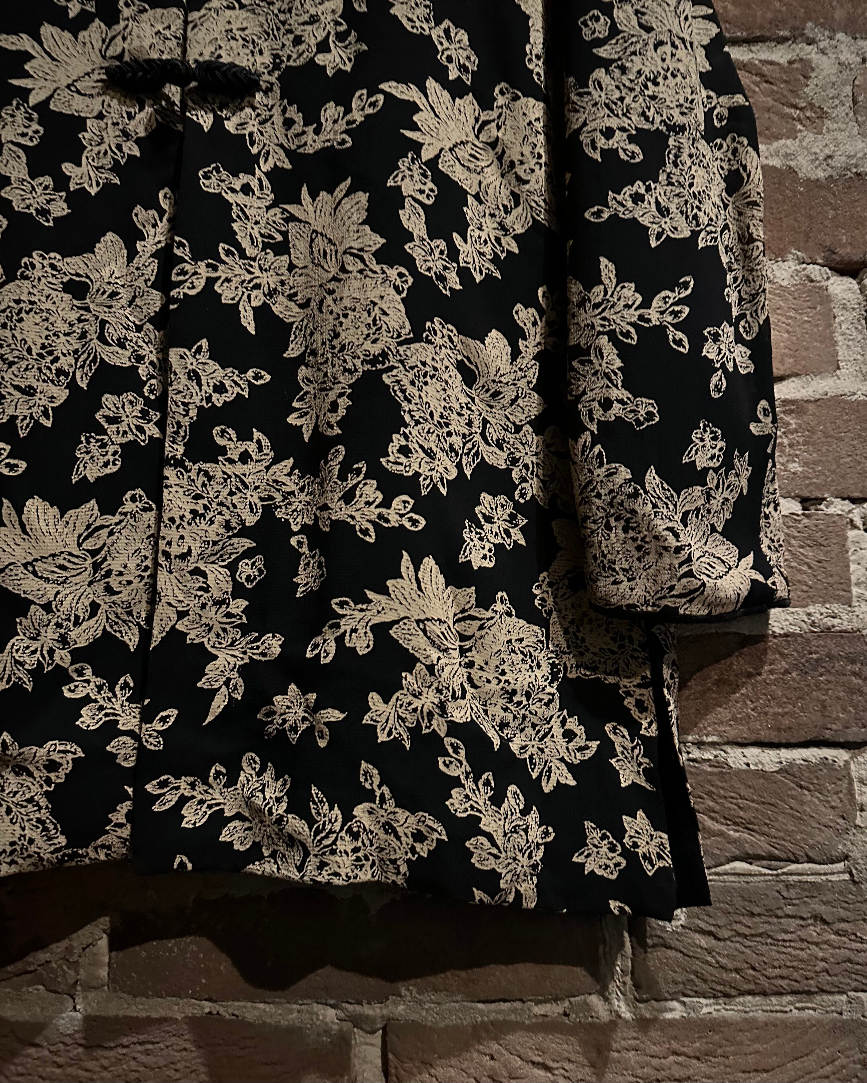サラッと肌触りの優しいレーヨンをベースに、レトロな花柄を載せたチャイナシャツジャケット。