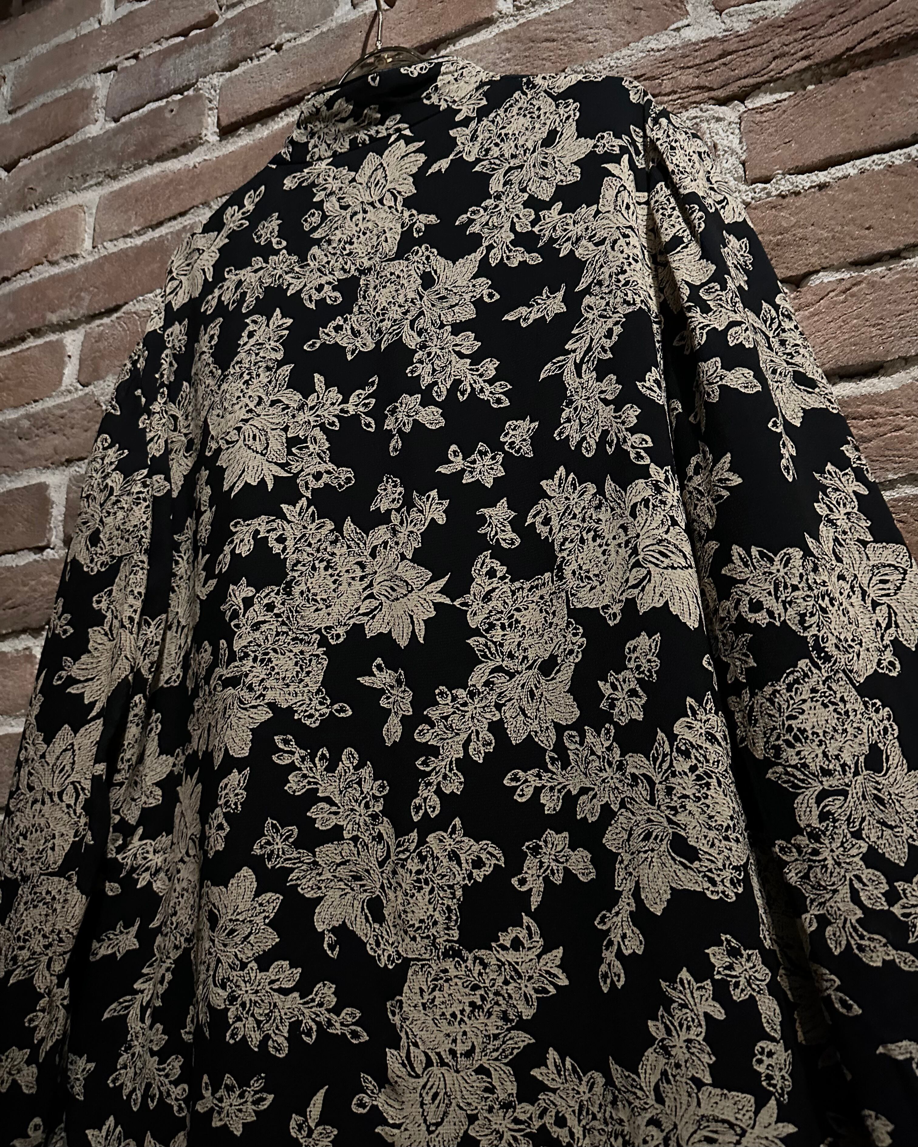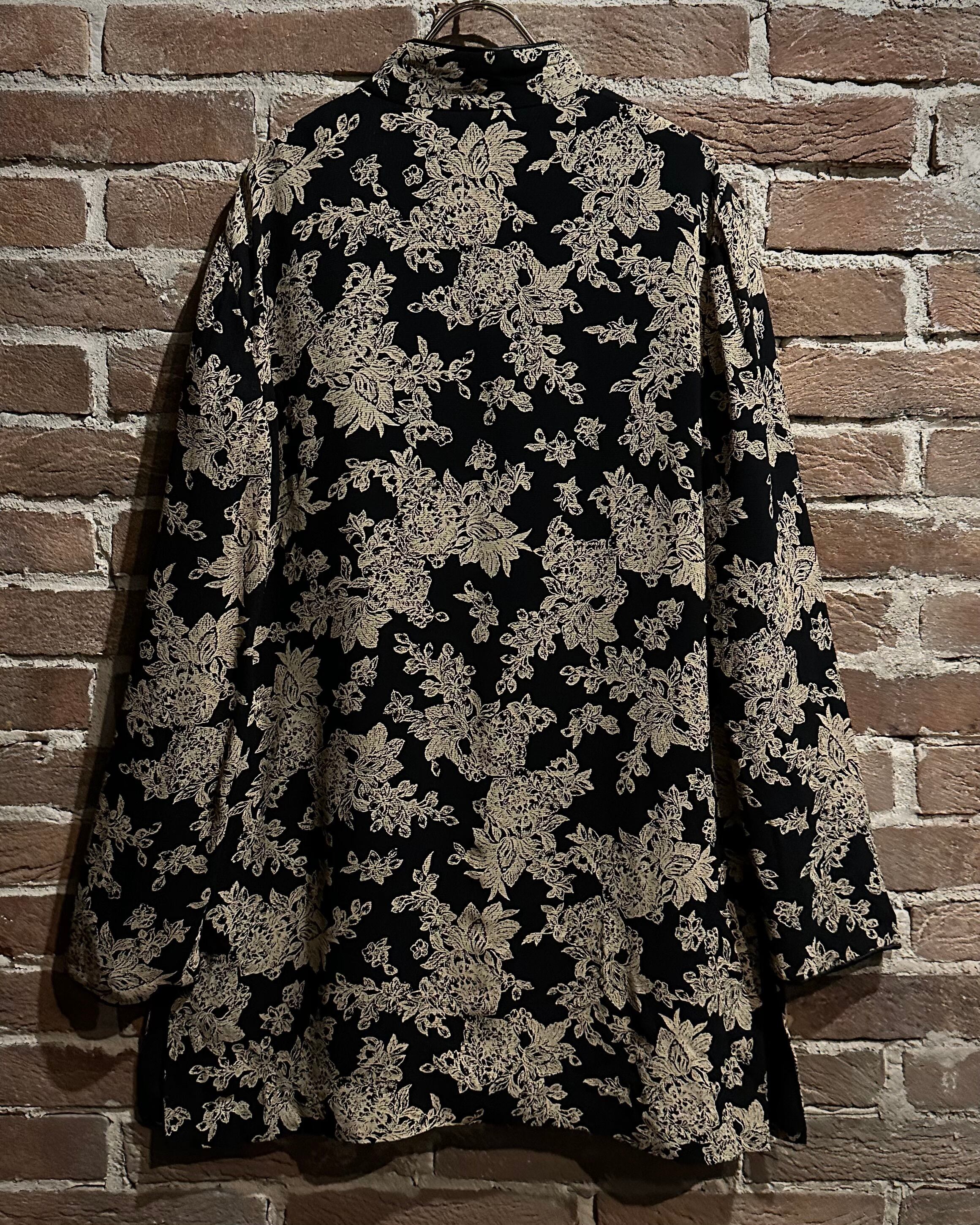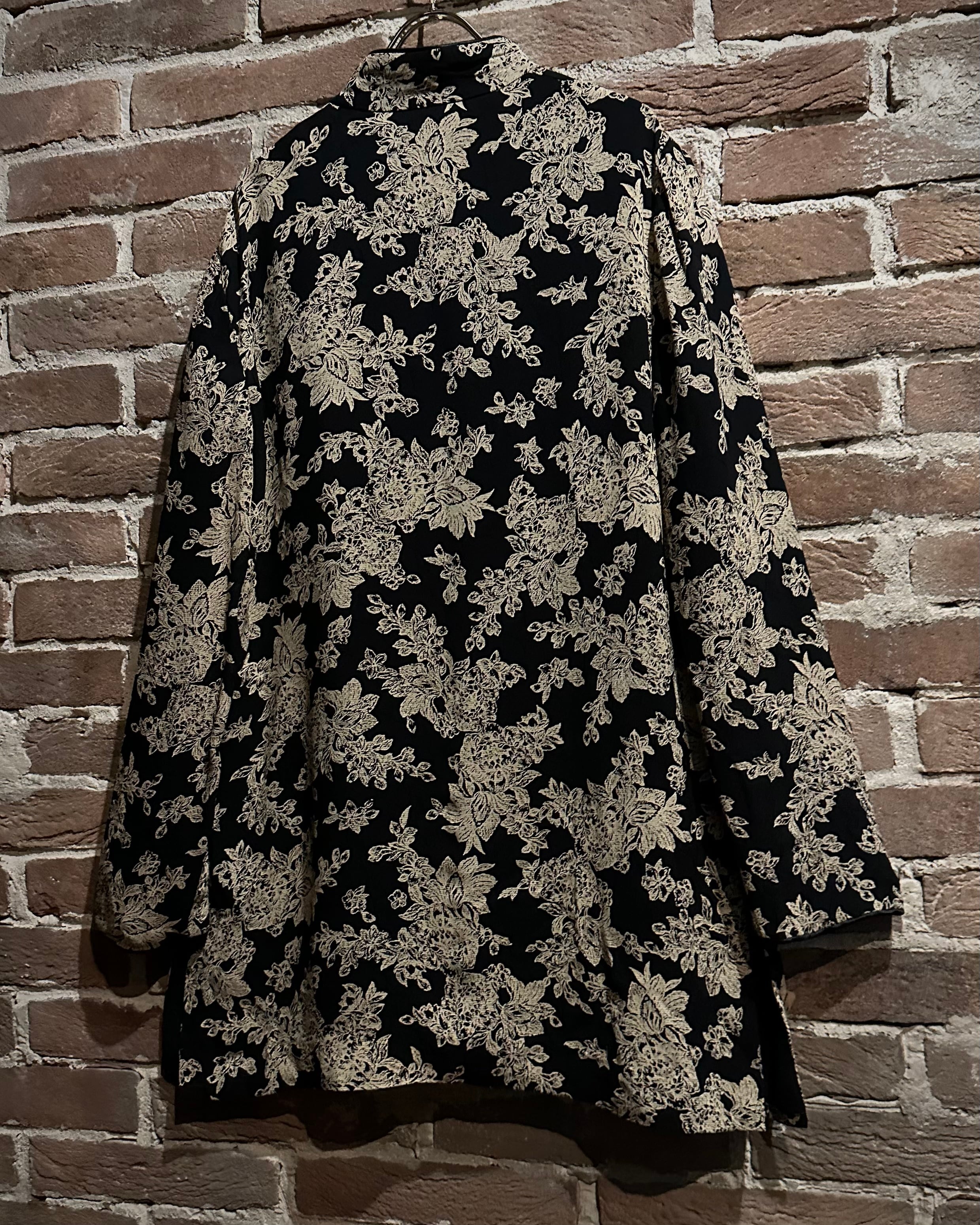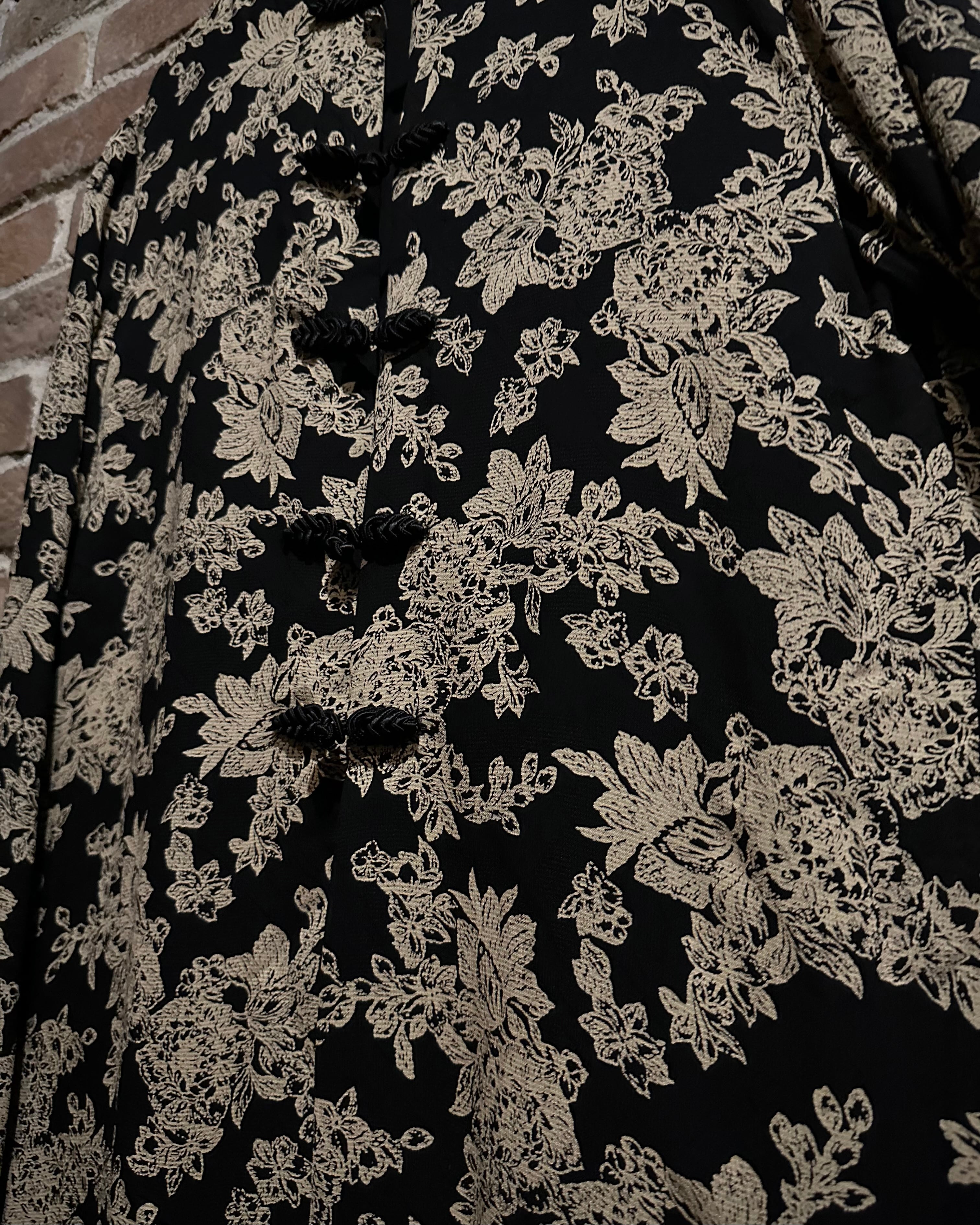 サラッと肌触りの優しいレーヨンをベースに、レトロな花柄を載せたチャイナシャツジャケット。