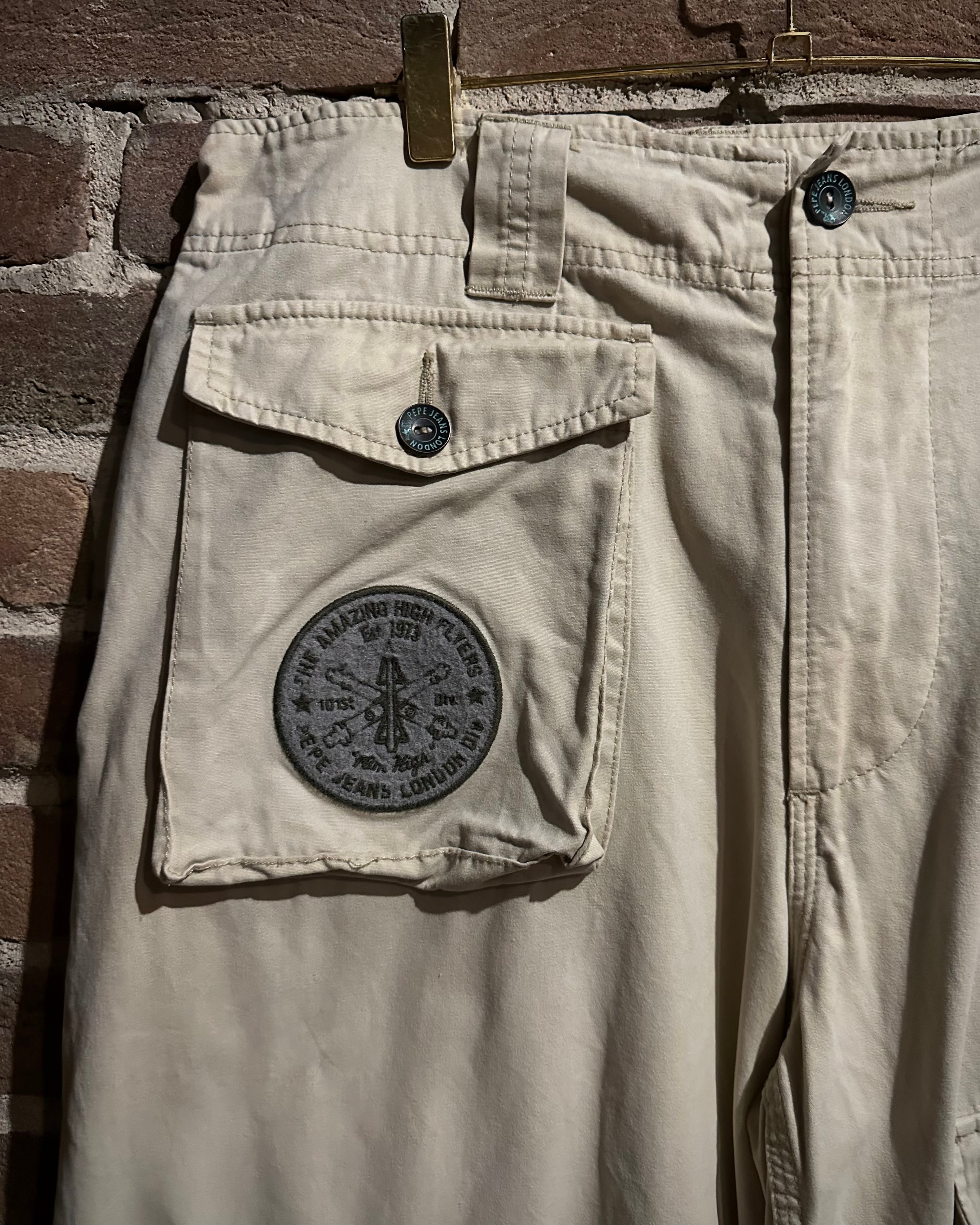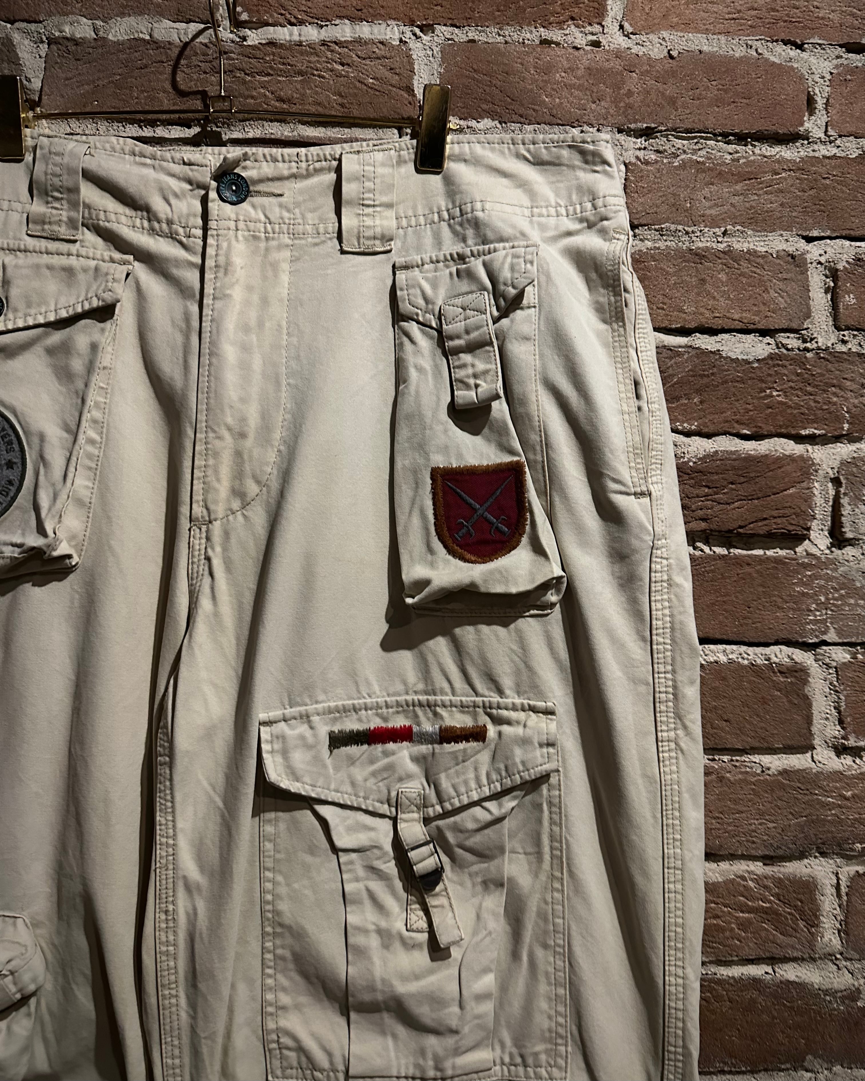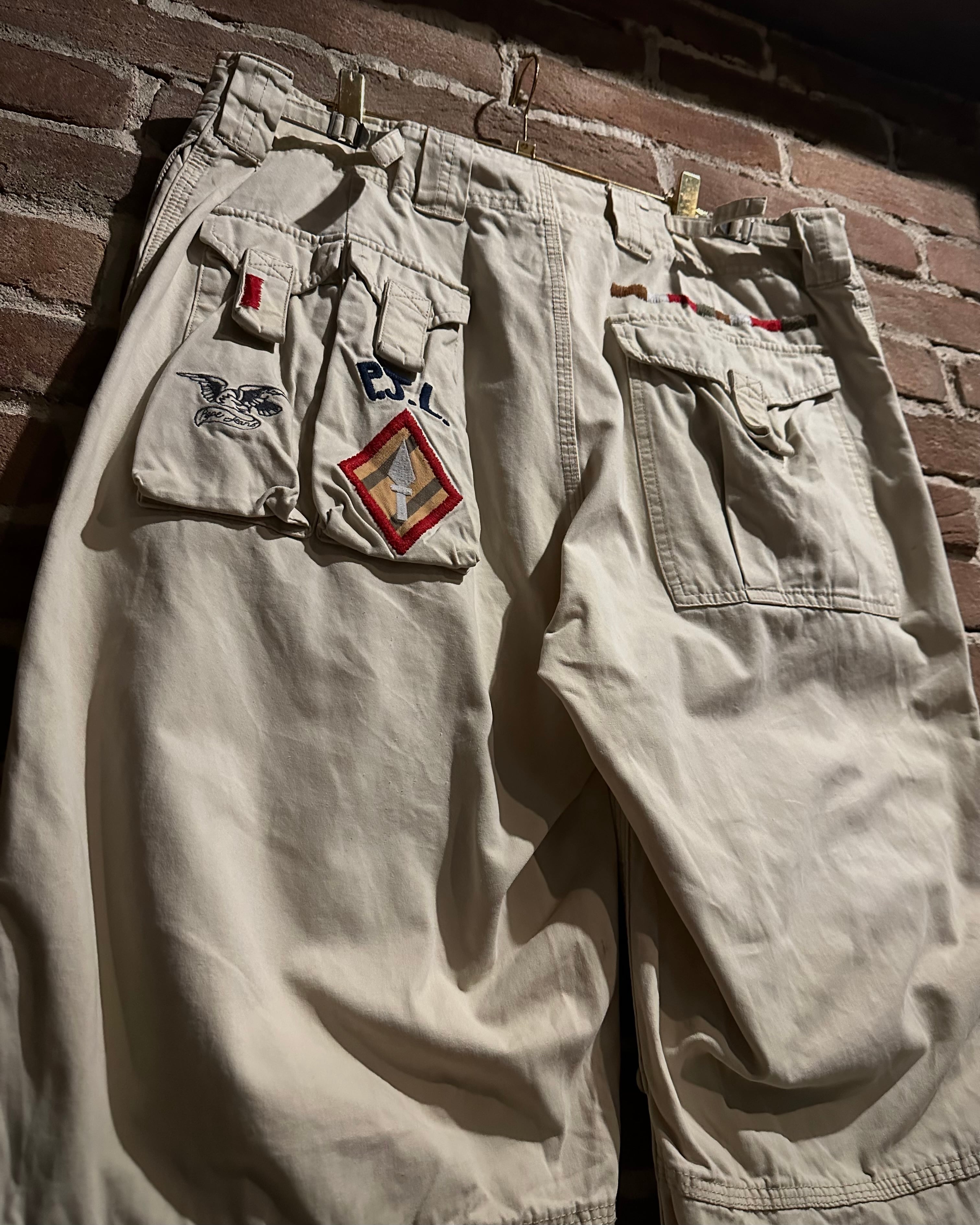 ホワイトのボディをベースに、立体感のあるマチ付きのポケットを載せたレイヴパンツ。