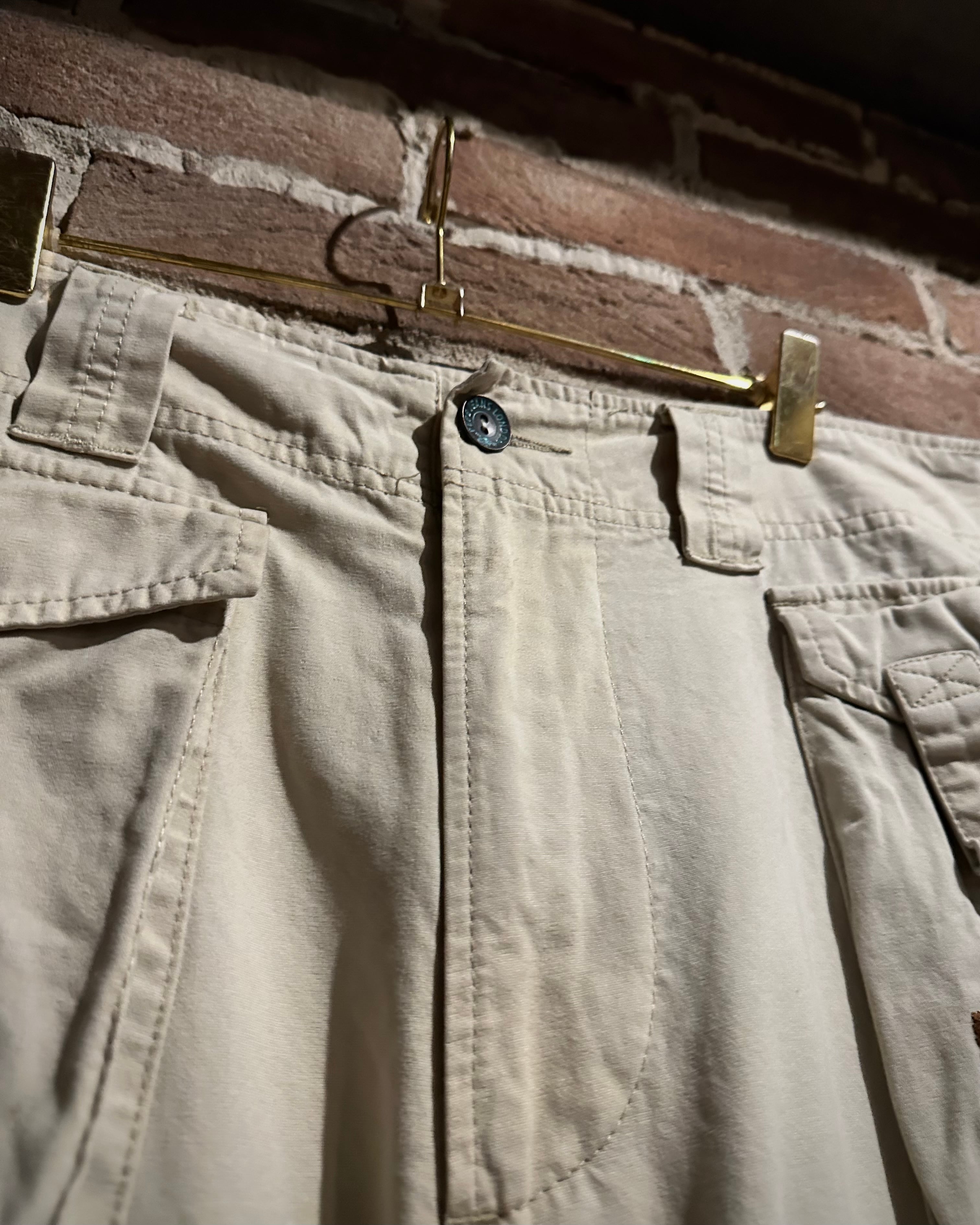 ポケット部分には施術によるデザイン、膝部分にはダーツが施された事で着用時に立体的なシルエットを描いてくれたりと、細やかな作り込みも素晴らしい1着。