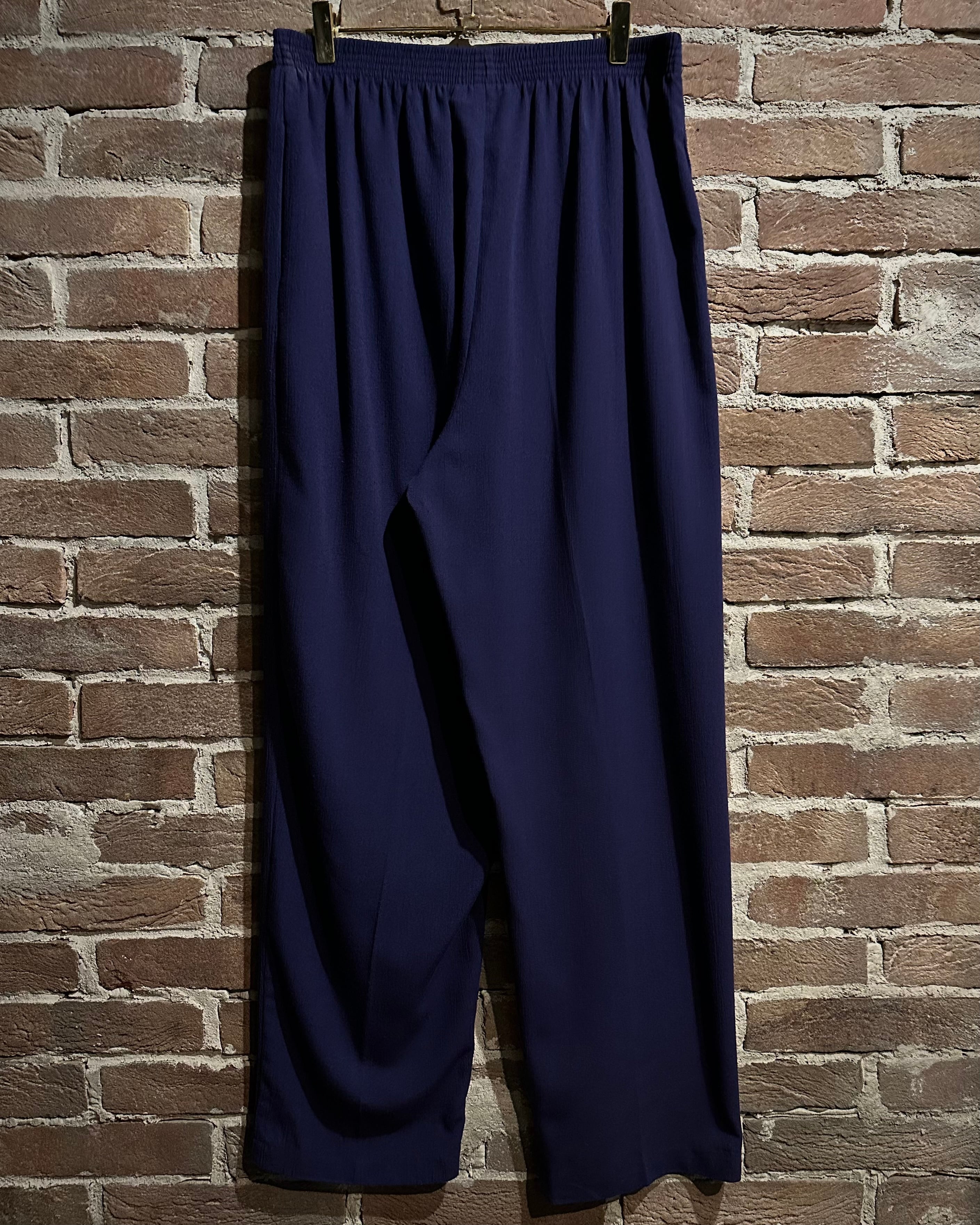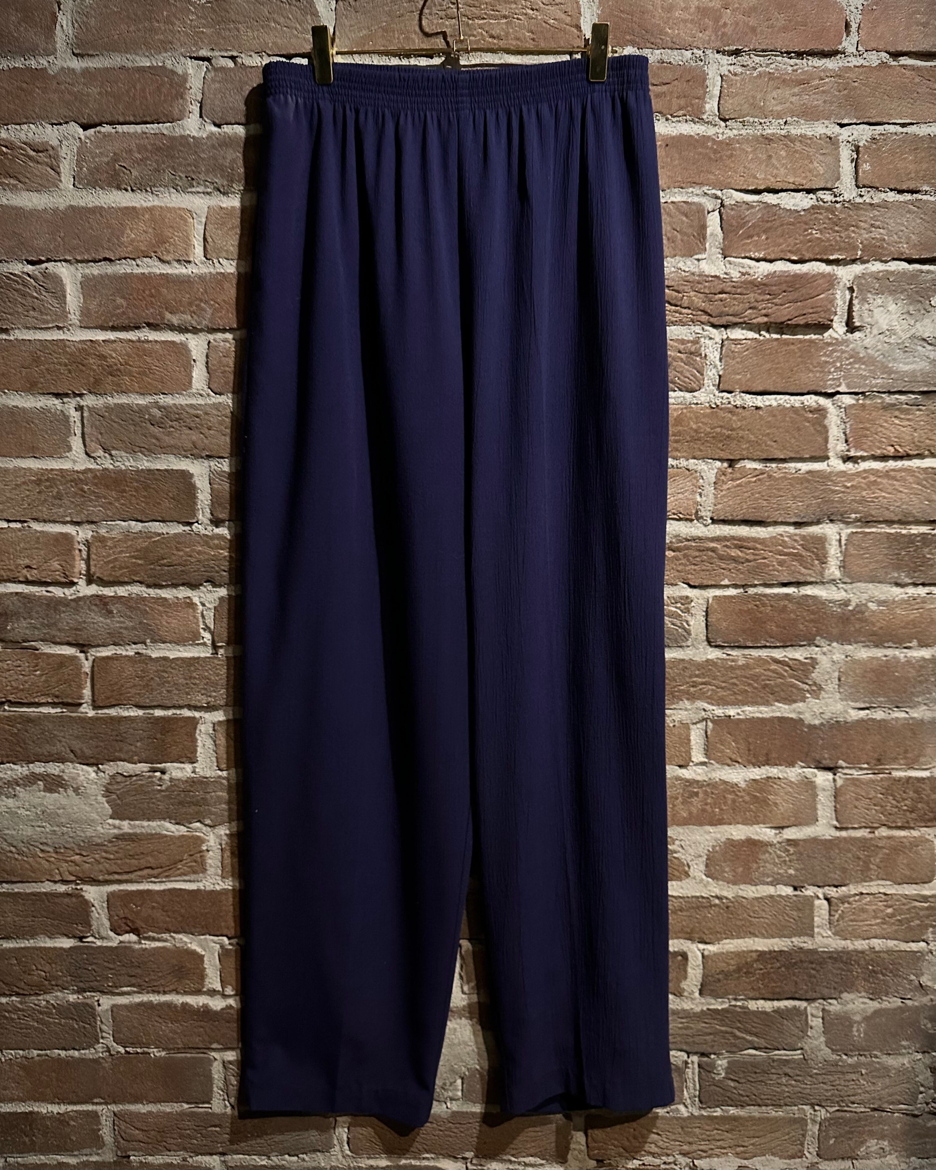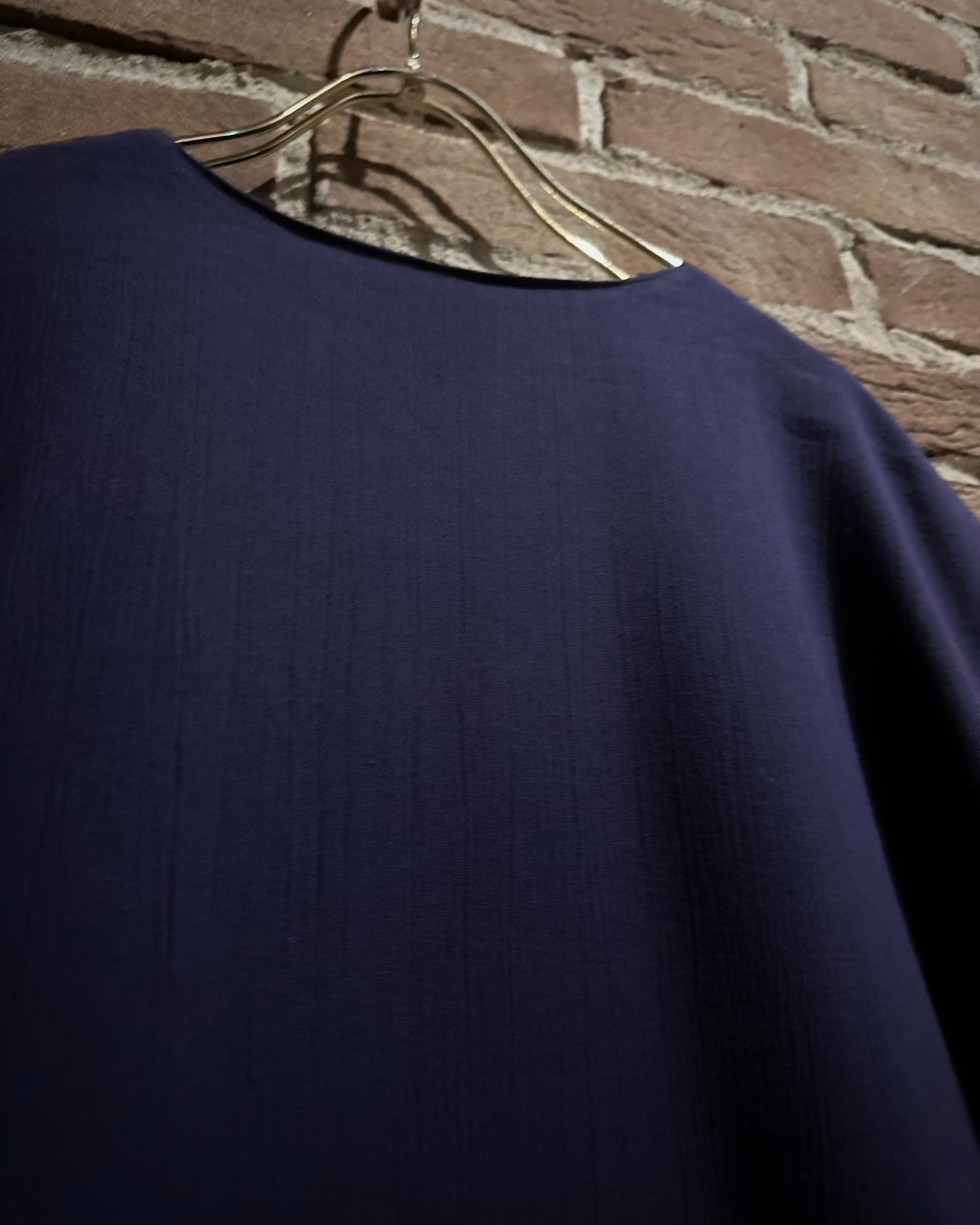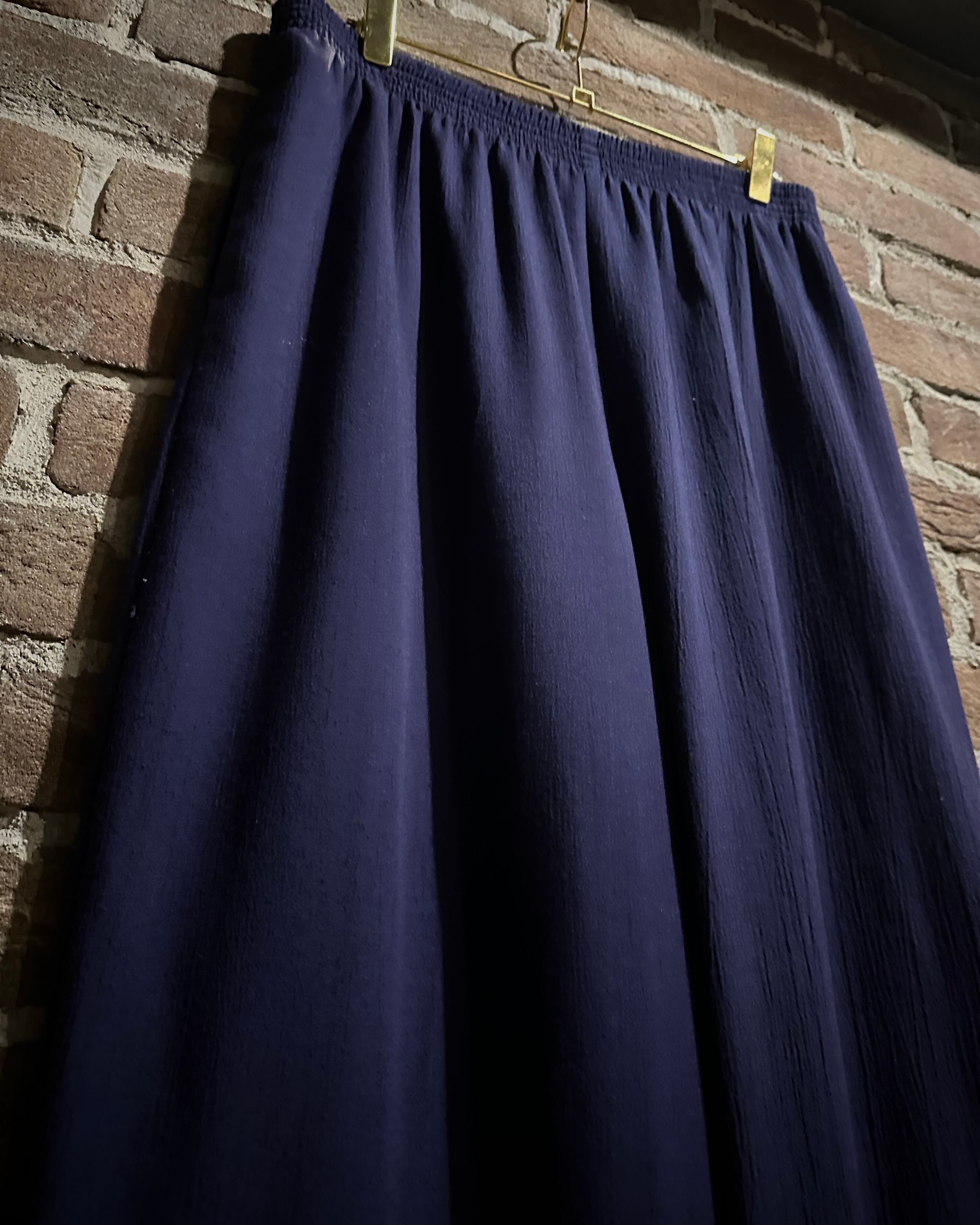 ウエストはゴムのイージー仕様でズドンとワイドなストレートシルエット。ギャザーによって美しい落ち感が演出され、ドレープがボディに深い陰影を与えています。