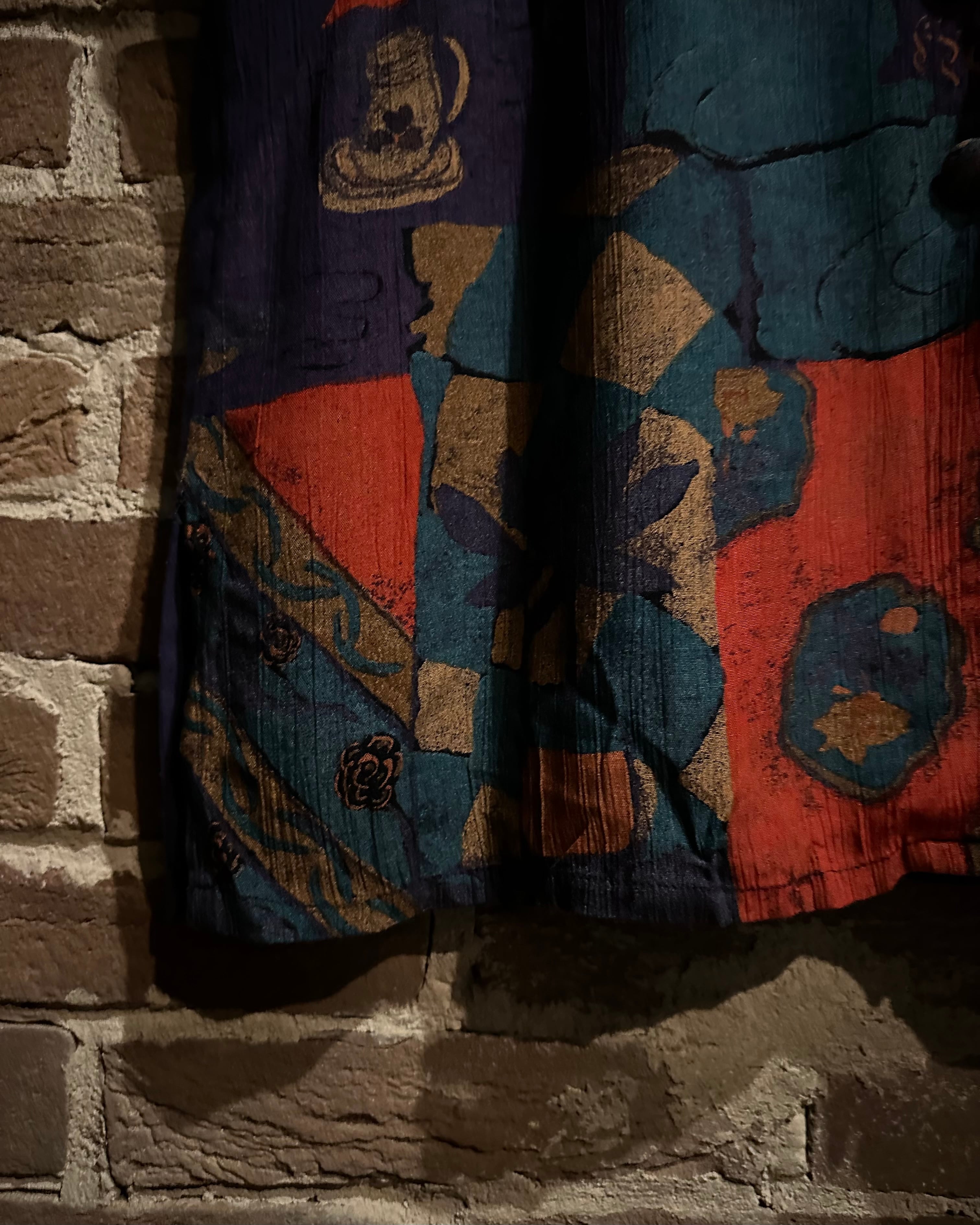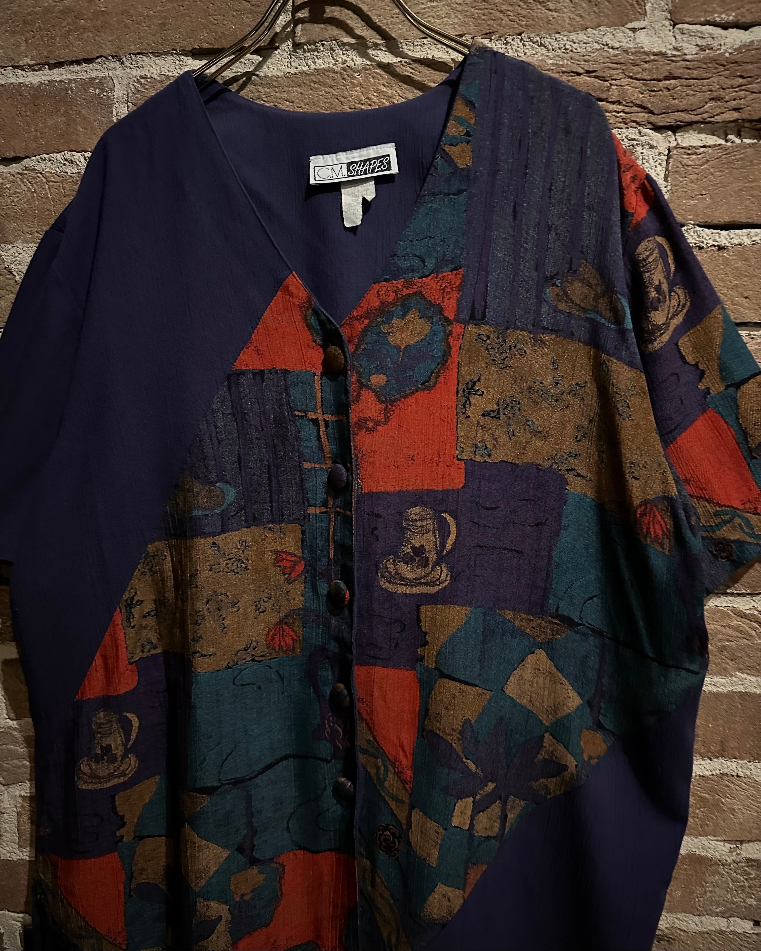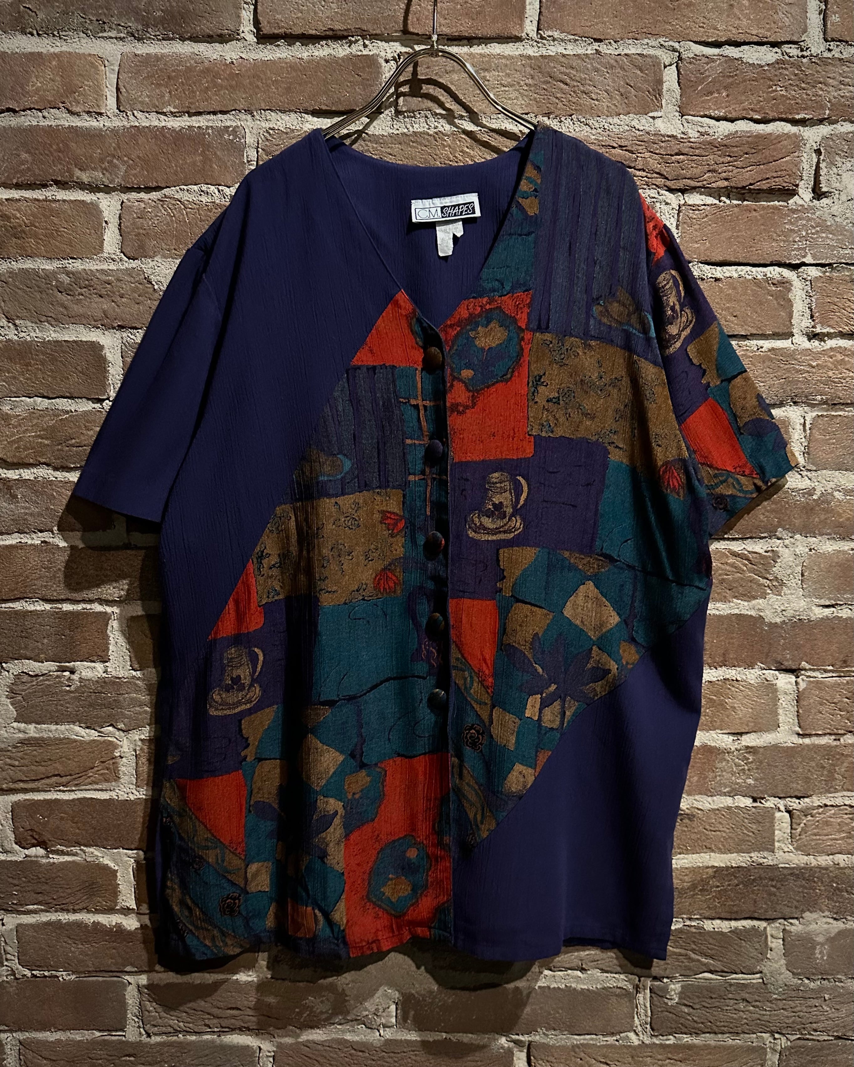 柔らかくトロみのあるボディに、アート柄を切り替えた稀有な半袖シャツセットアップの逸品。