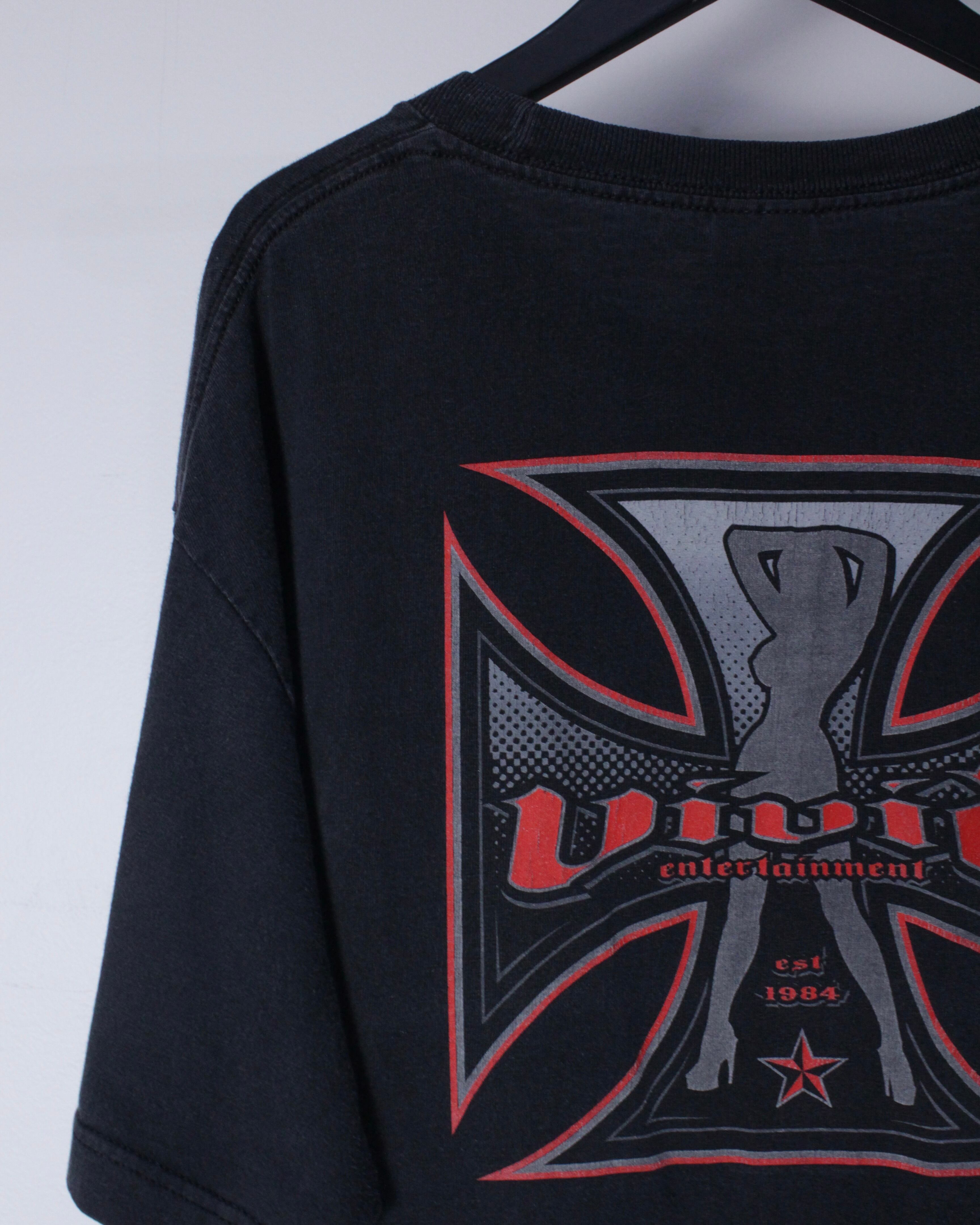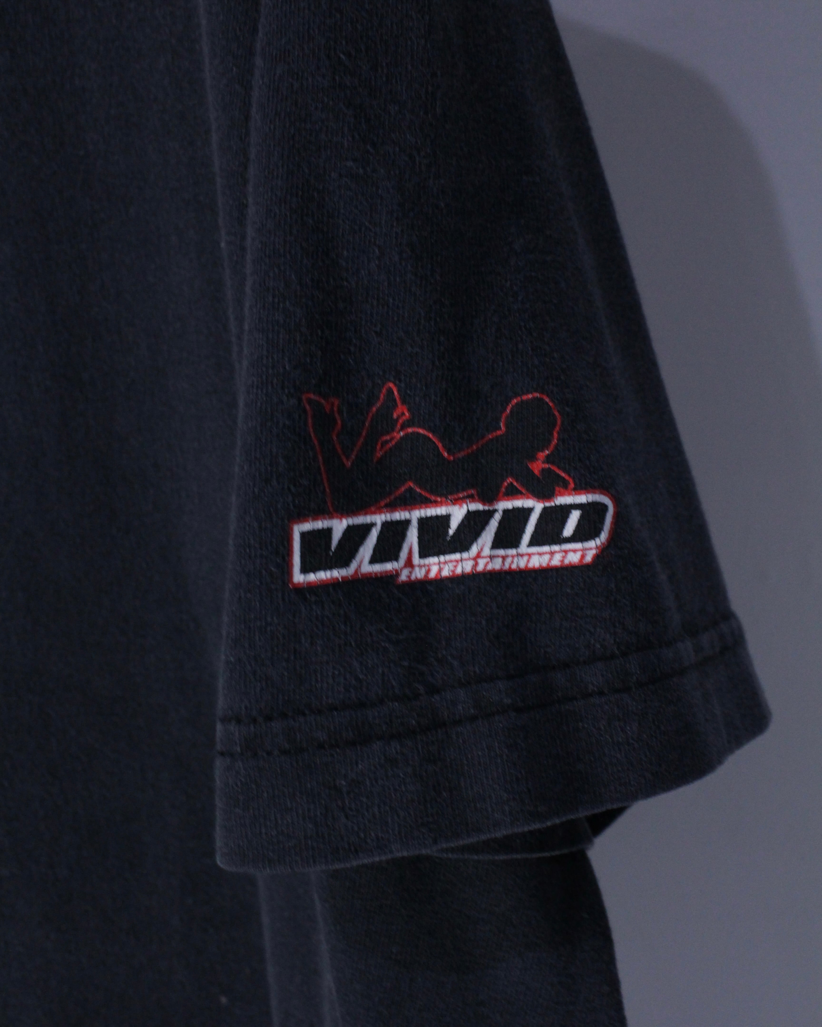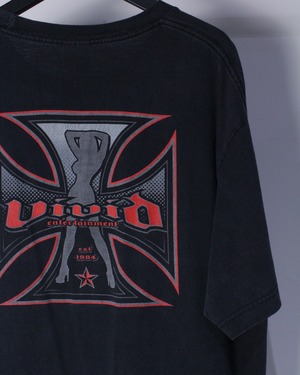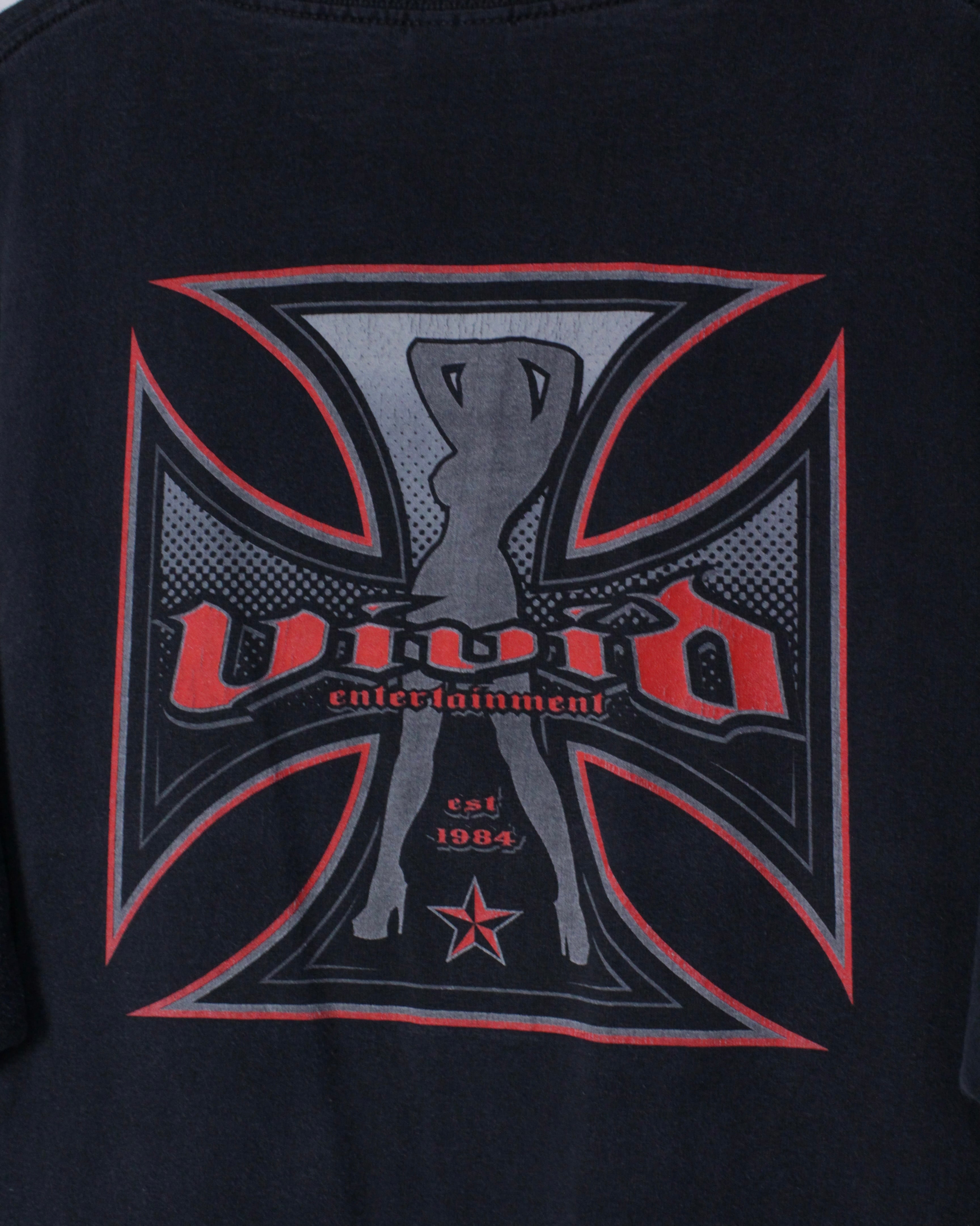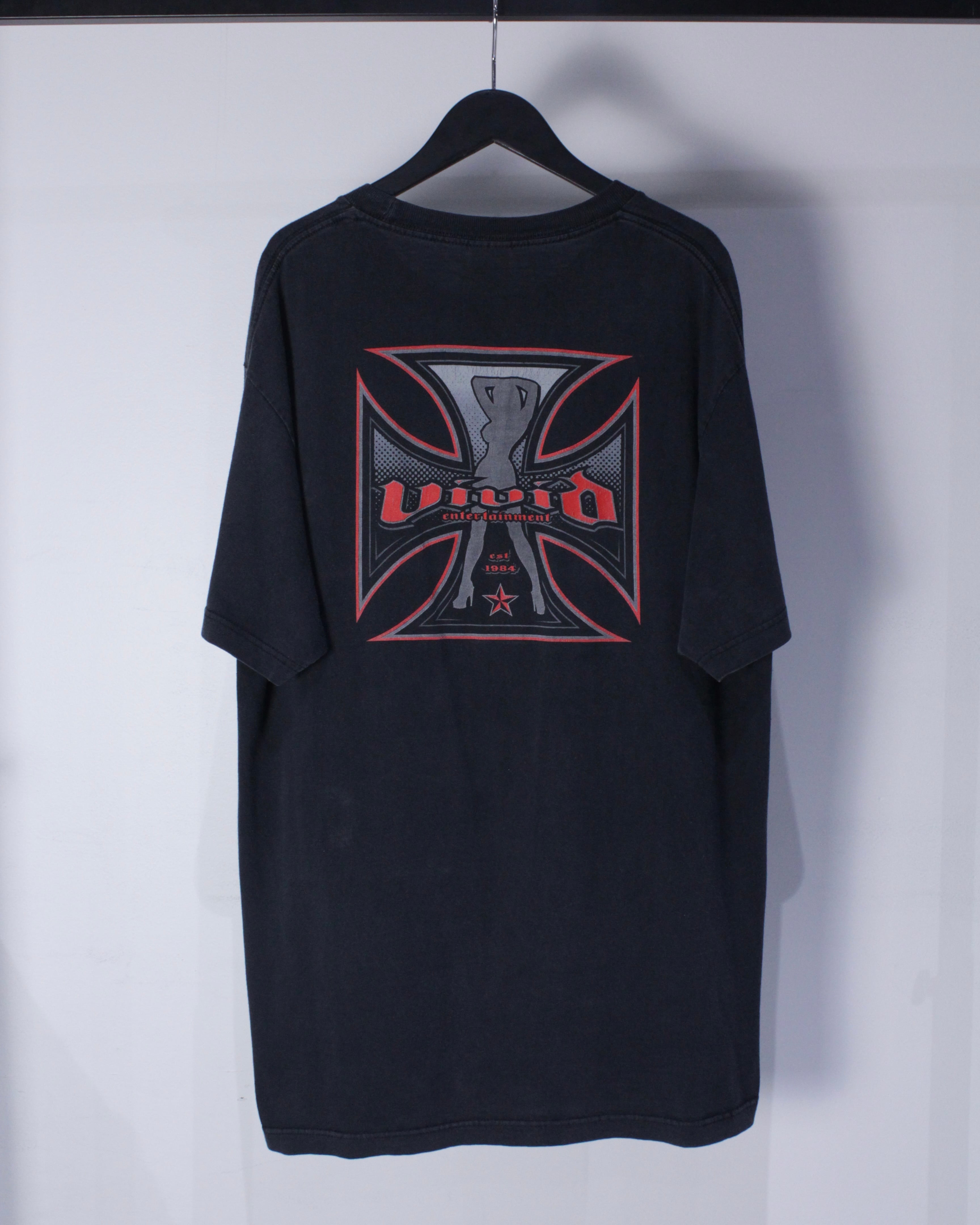アメリカのAV会社"Vivid Entertainment"の、アイアンクロスのロゴ、セクシーな女性をプリントしたTシャツ。