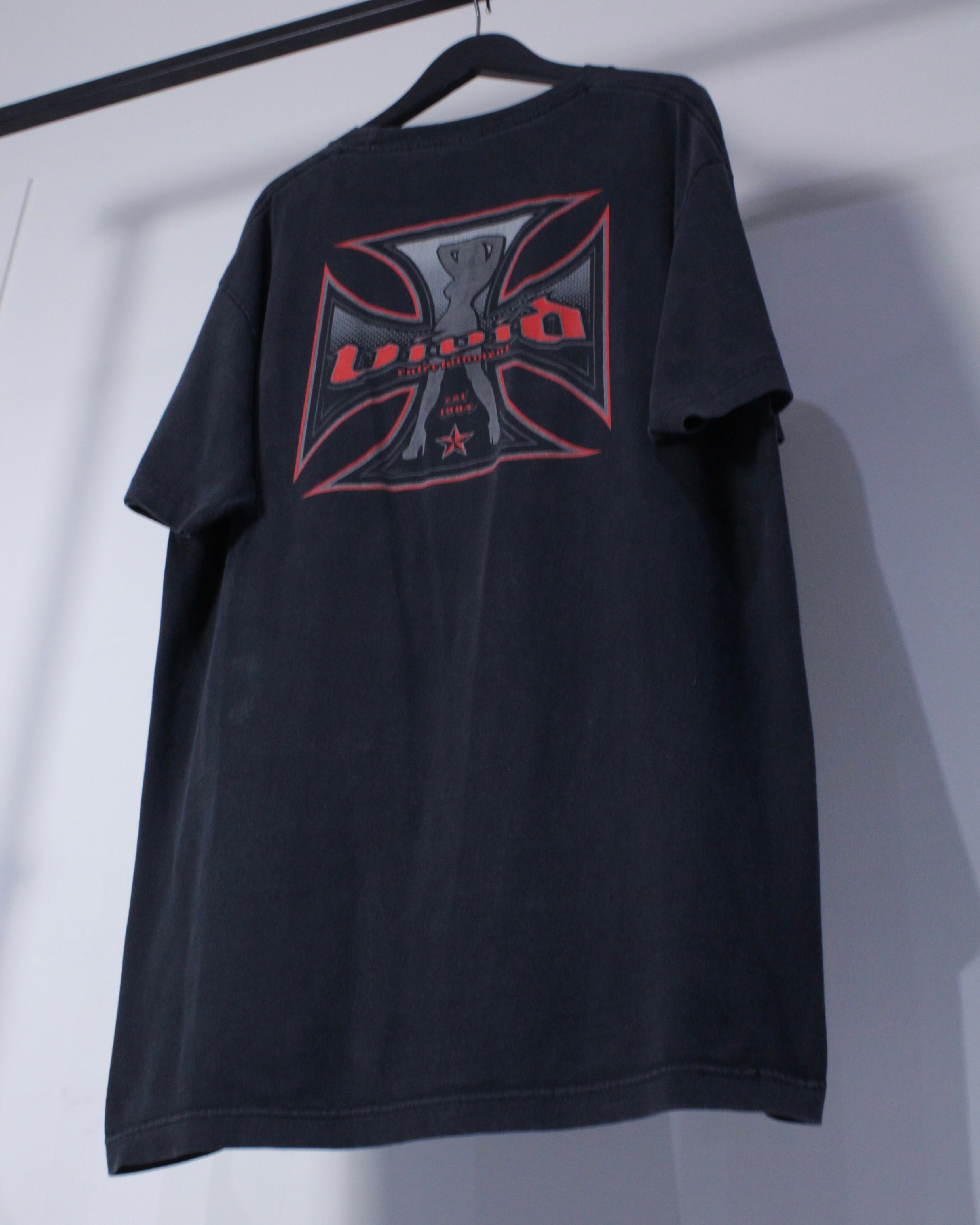 アイアンクロスのデザインは他ブランドで高騰化していたりと、今トレンド感のあるグラフィック。その中でも珍しい1着でら非常にノリの良いデザインに仕上がっています。