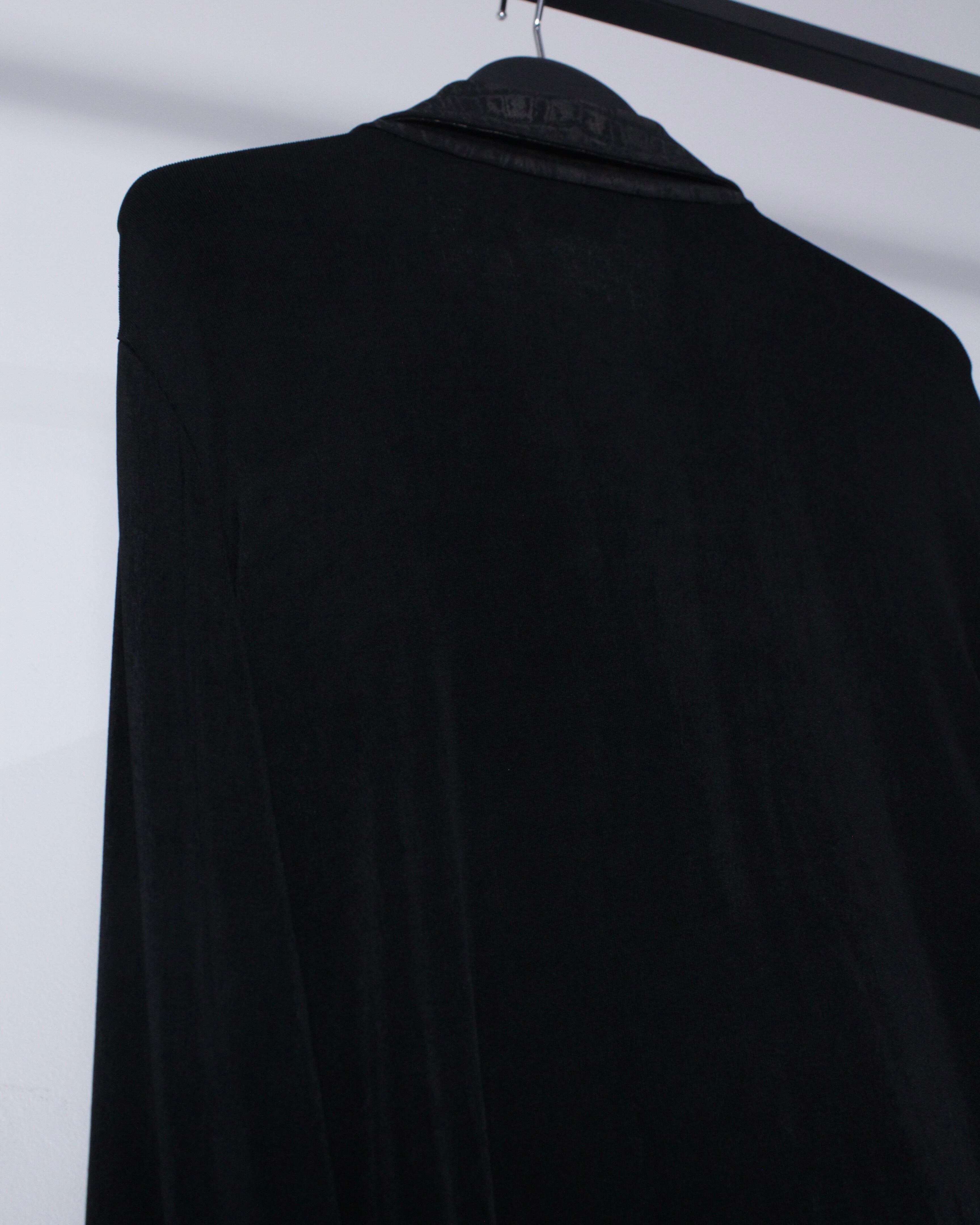 オールブラックのボディにクロコダイルを掛け合わせた事でモードかつラグジュアリーな雰囲気を放つアイテムへと昇華された、デザインバランスが素晴らしい1着。