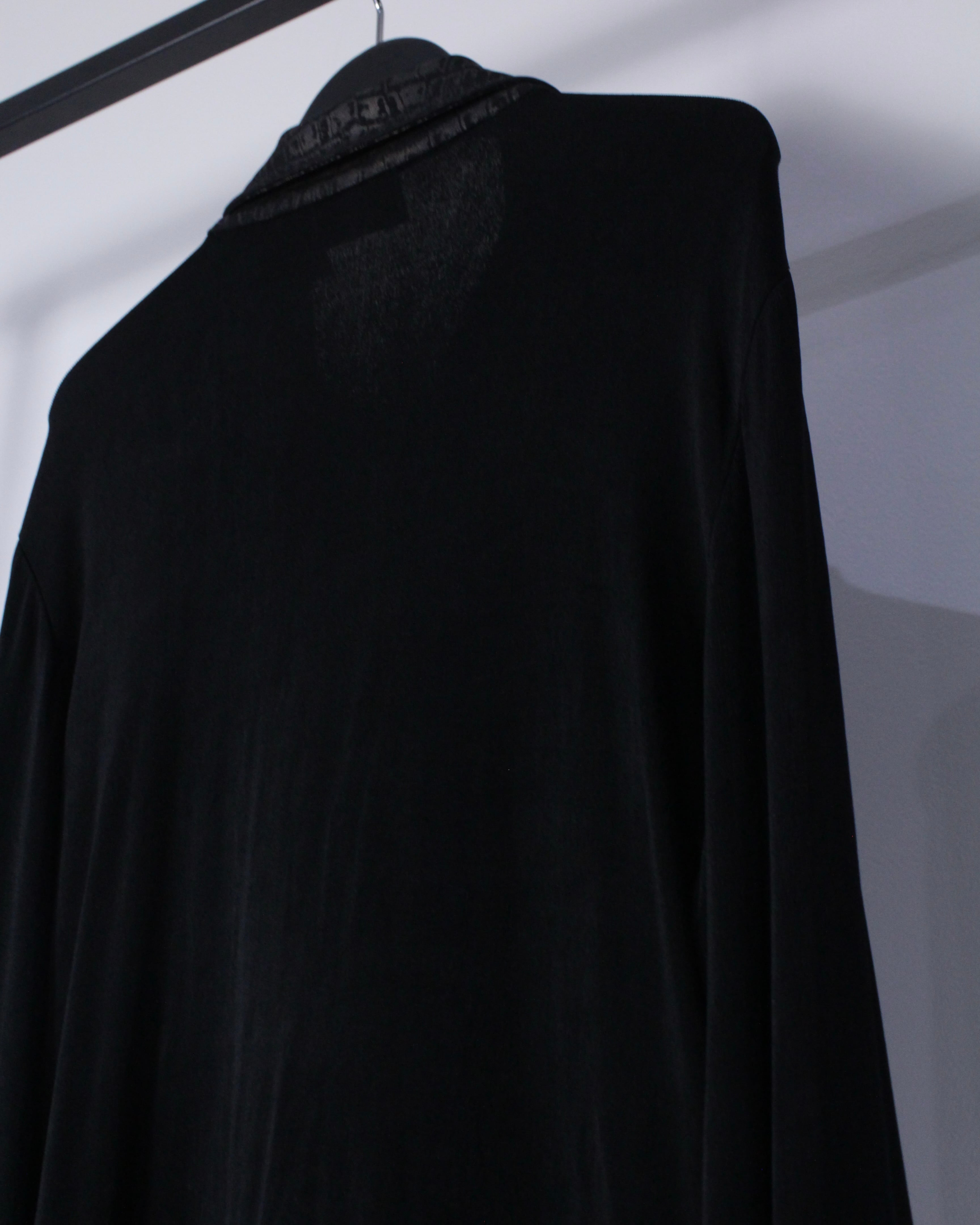 伸縮性のある薄手の生地なので着用時のシルエットも抜群、着用シーズンを選ばず、ライトなアウターとしてはもちろん、秋冬にはアウターの中に仕込むのもオススメ。