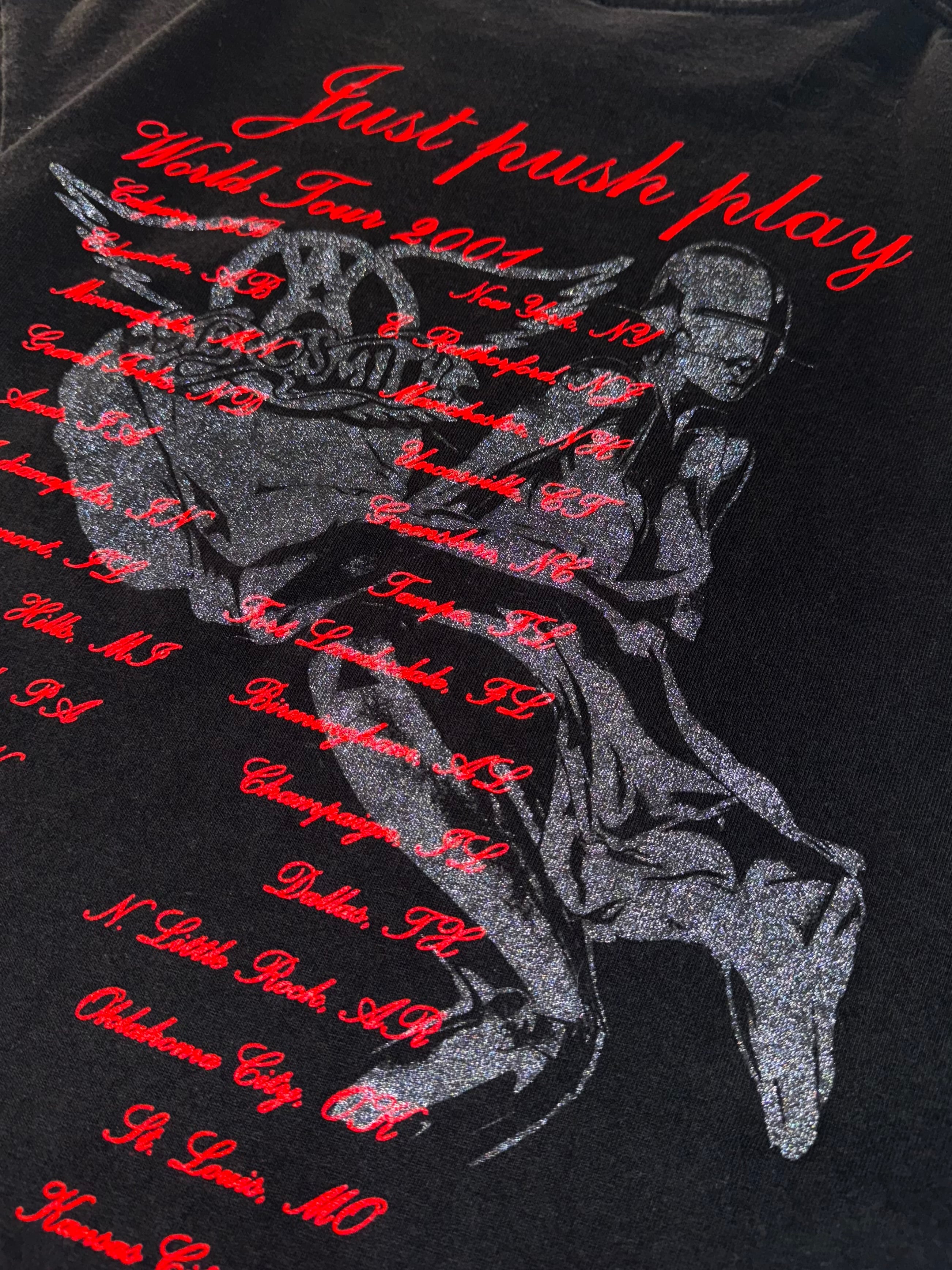 アメリカン・ハードロックの頂点に君臨する"エアロスミス"から、2001年に発表したアルバム『JUST PUSH PLAY』のツアーTシャツ。