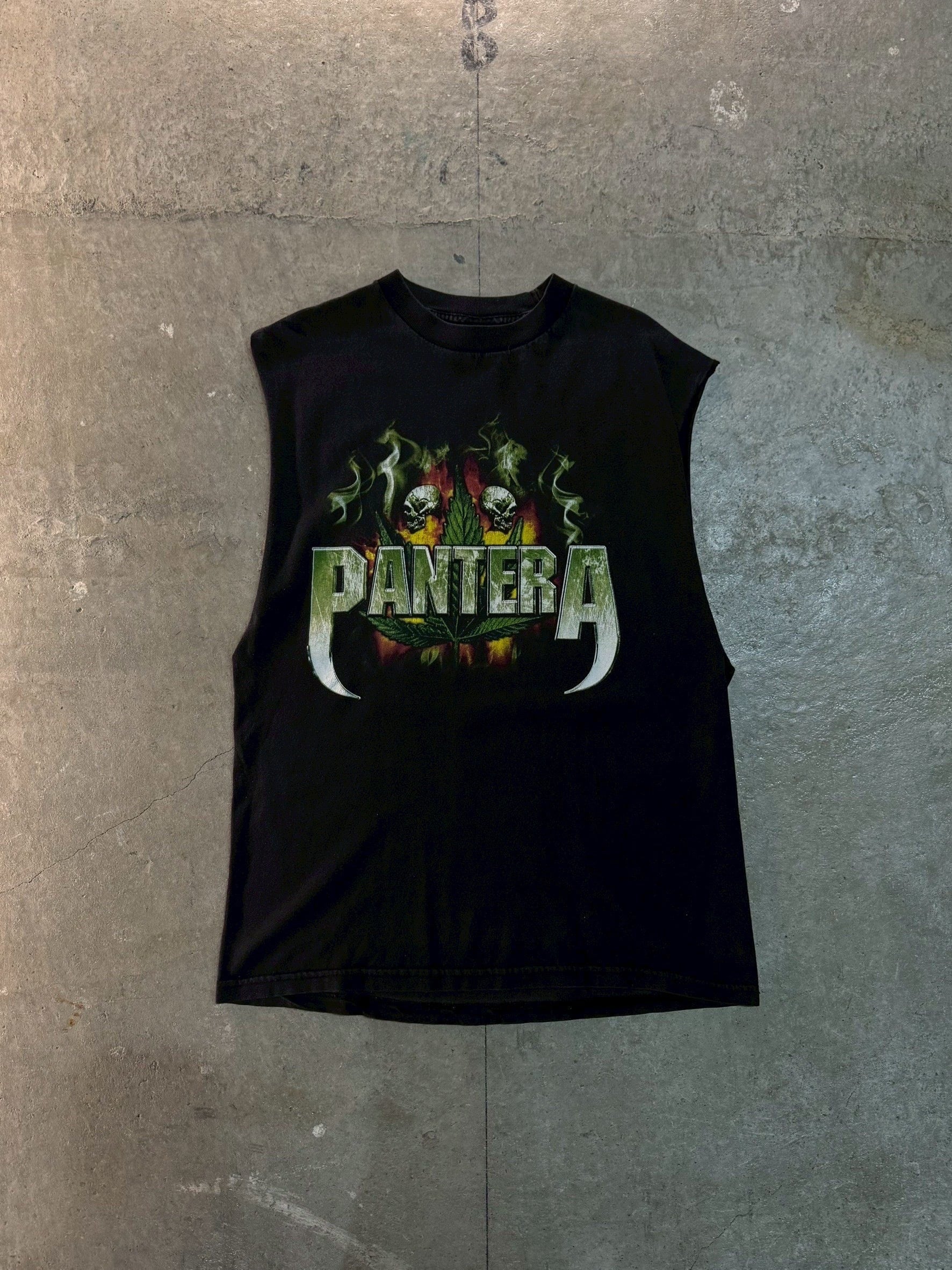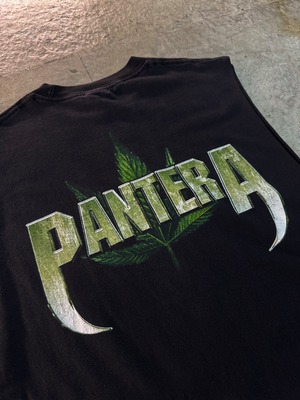 90年代のメタルシーンを象徴とするヘヴィメタルバンド"PANTERA"より、前所有者によるスリーブ部分のカットオフカスタムが施されたノースリーブTシャツ。