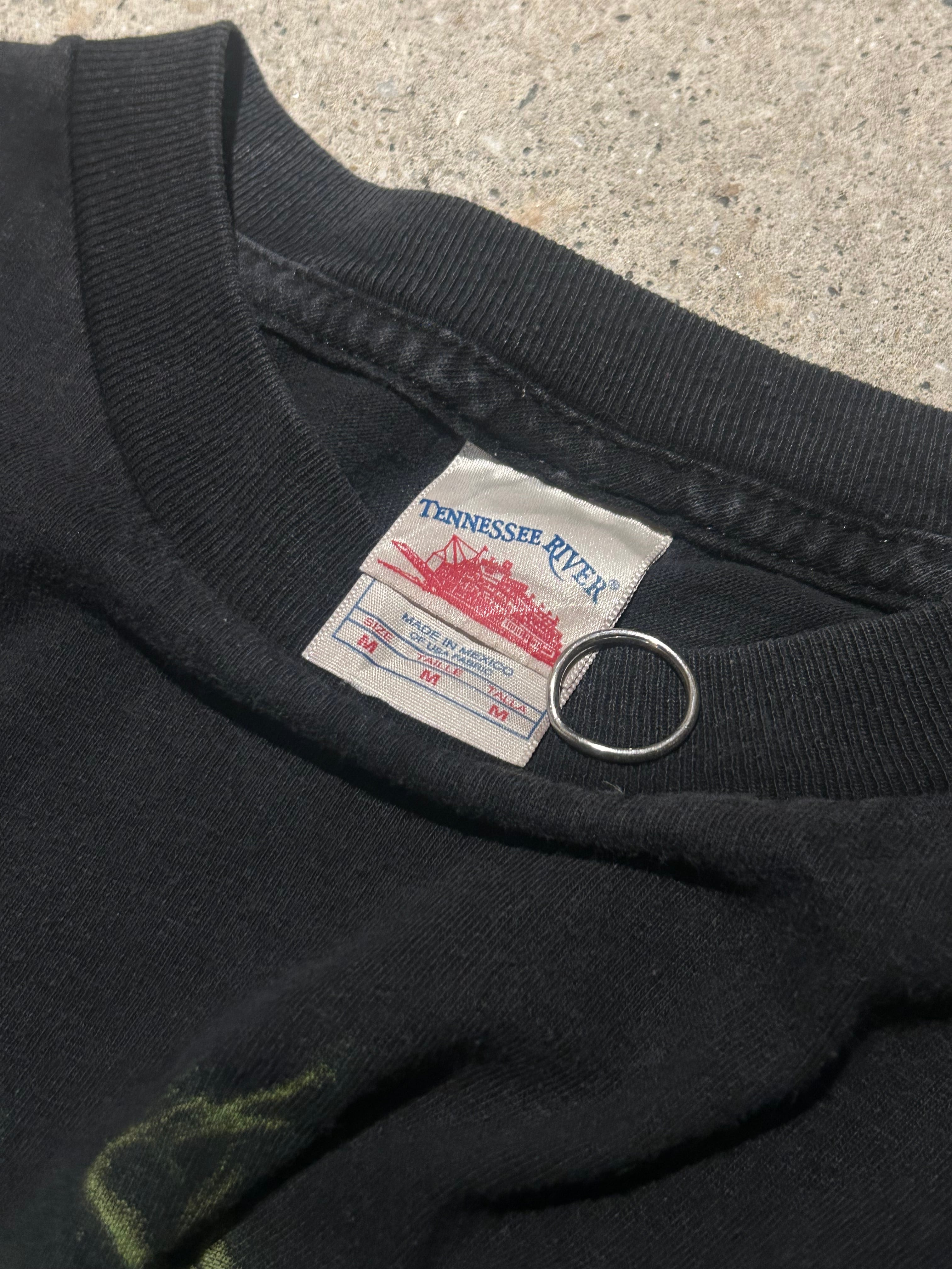 フロントにはウィード、スカル、ファイヤーが落とし込まれたモチーフの上から"PANTERA"のロゴをON。背面には大胆なウィードのプリントにフロントと同様のバンドのロゴを載せた、パンテラらしさと当時のカルチャーを彷彿とさせるような1枚。