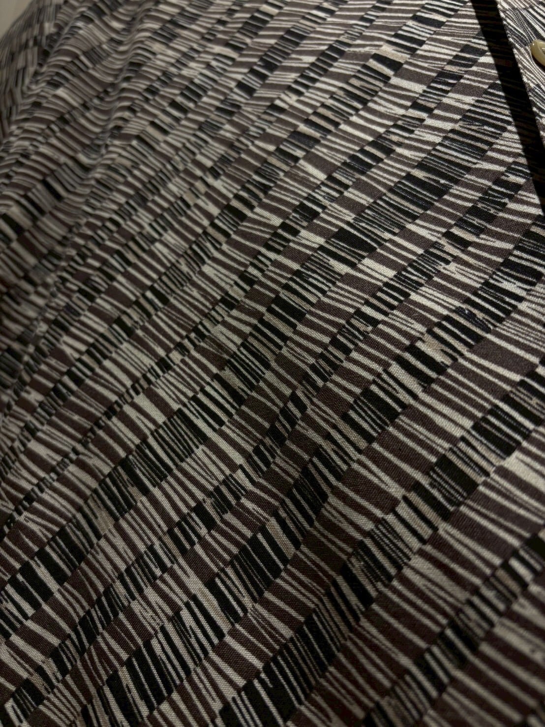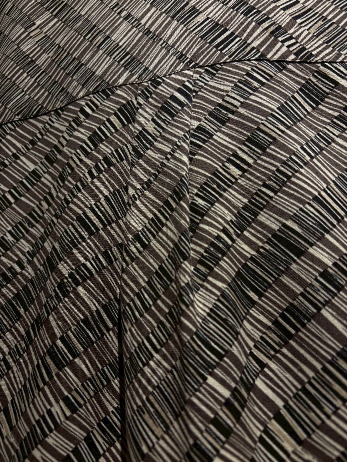 バイアスとストライプが掛け合わさった上、黒と茶の2色が合わさった事で絶妙な立体感が演出されています。