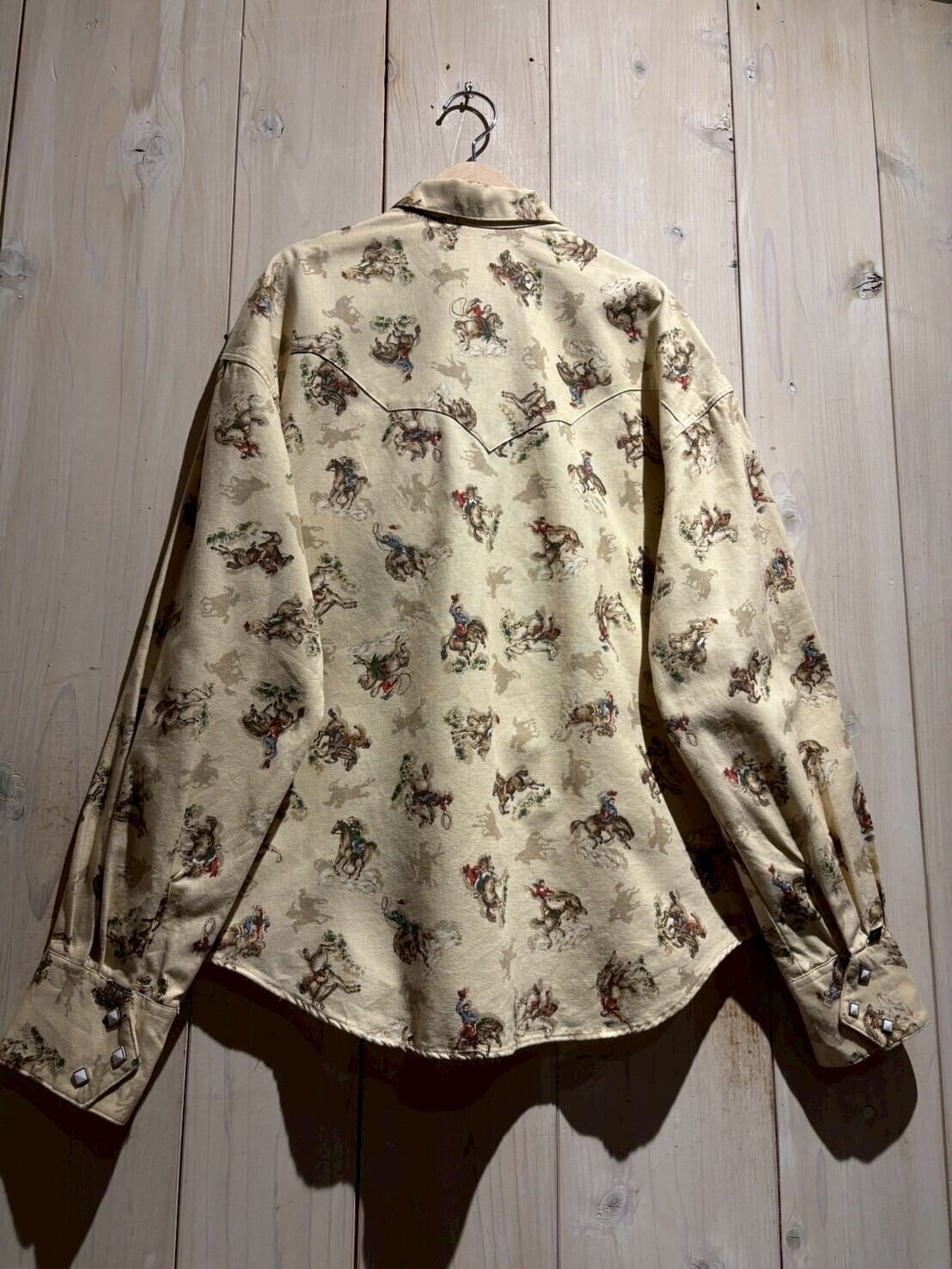 コシのある柔らかなベージュのボディに、様々なブランドのアイコンとしても用いられる馬のデザインを載せたウエスタンシャツ。