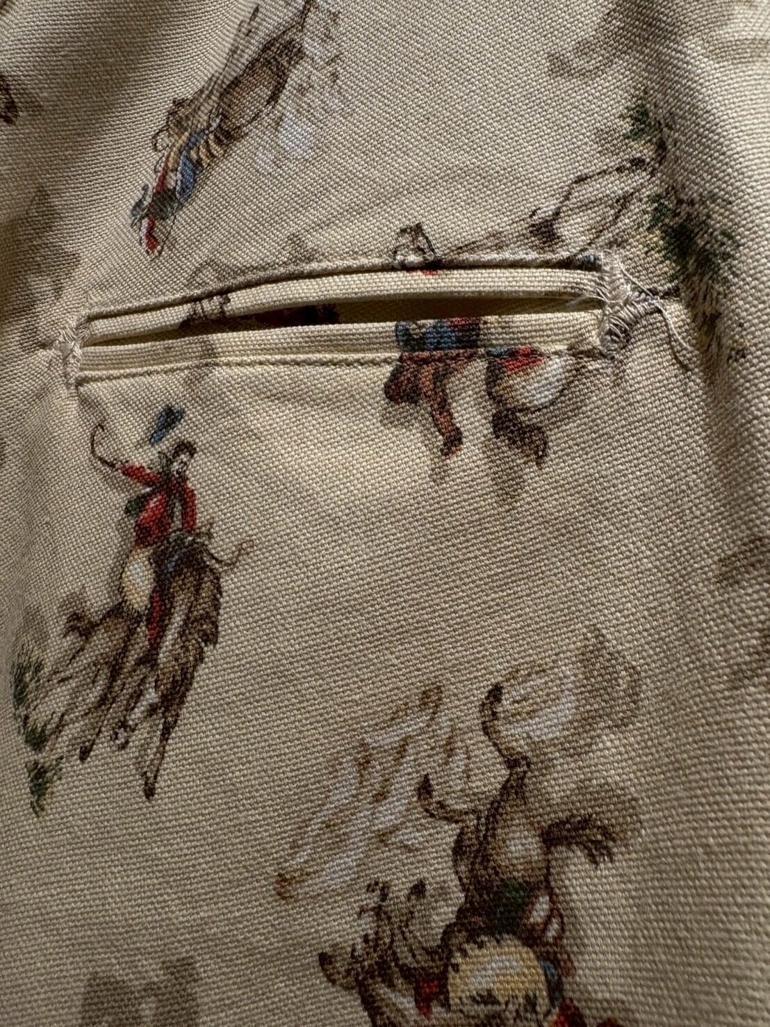スラッシュポケット、ホワイトの菱形スナップボタン、カフスがデザインのアクセントなり、ウエスタンらしさがしっかりと表現されています。