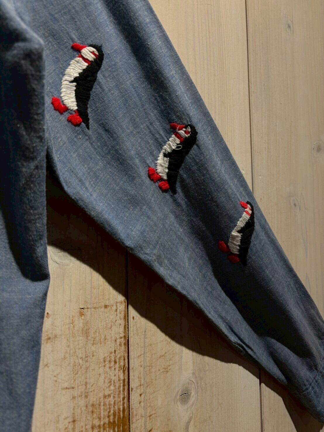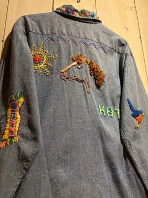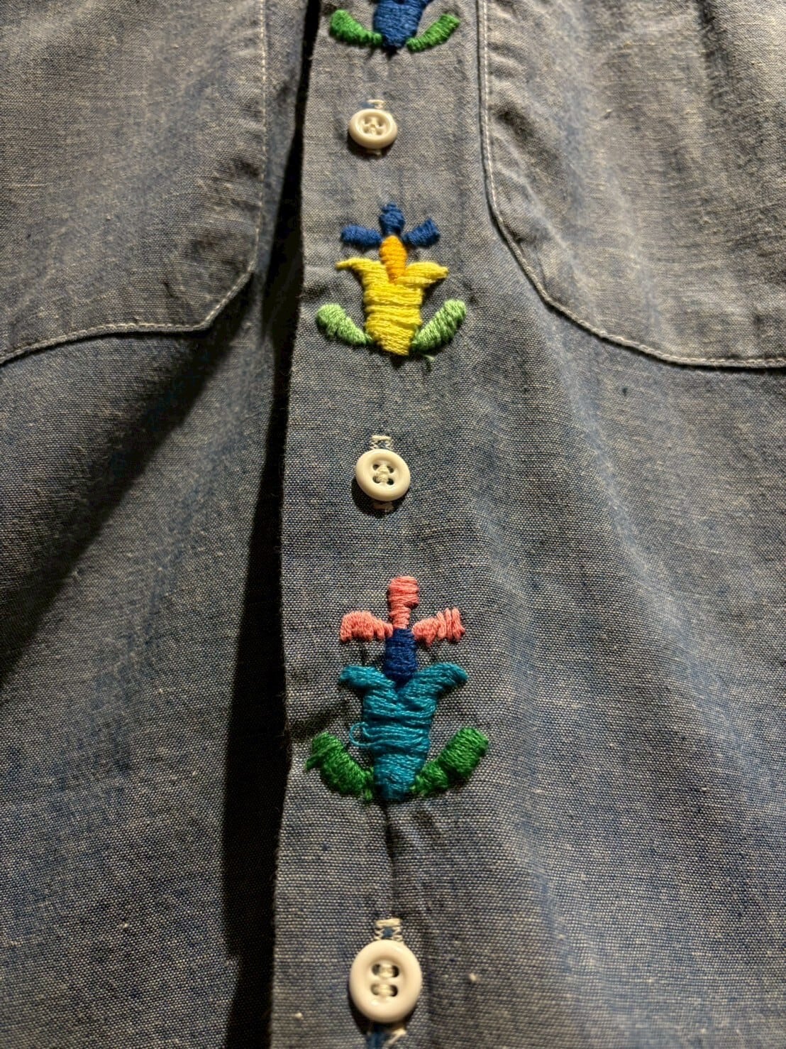 70年代のこの手のアイテムでは稀少な身幅、アームにゆとりを持たせたサイジング。サラッとした軽やかな着心地で、今時期のトップスとしてガッツリ着用出来ます。肌寒いシーズンにはジャケットやコートなどのインナーとして刺繍を見せたレイヤード使いもオススメ◎