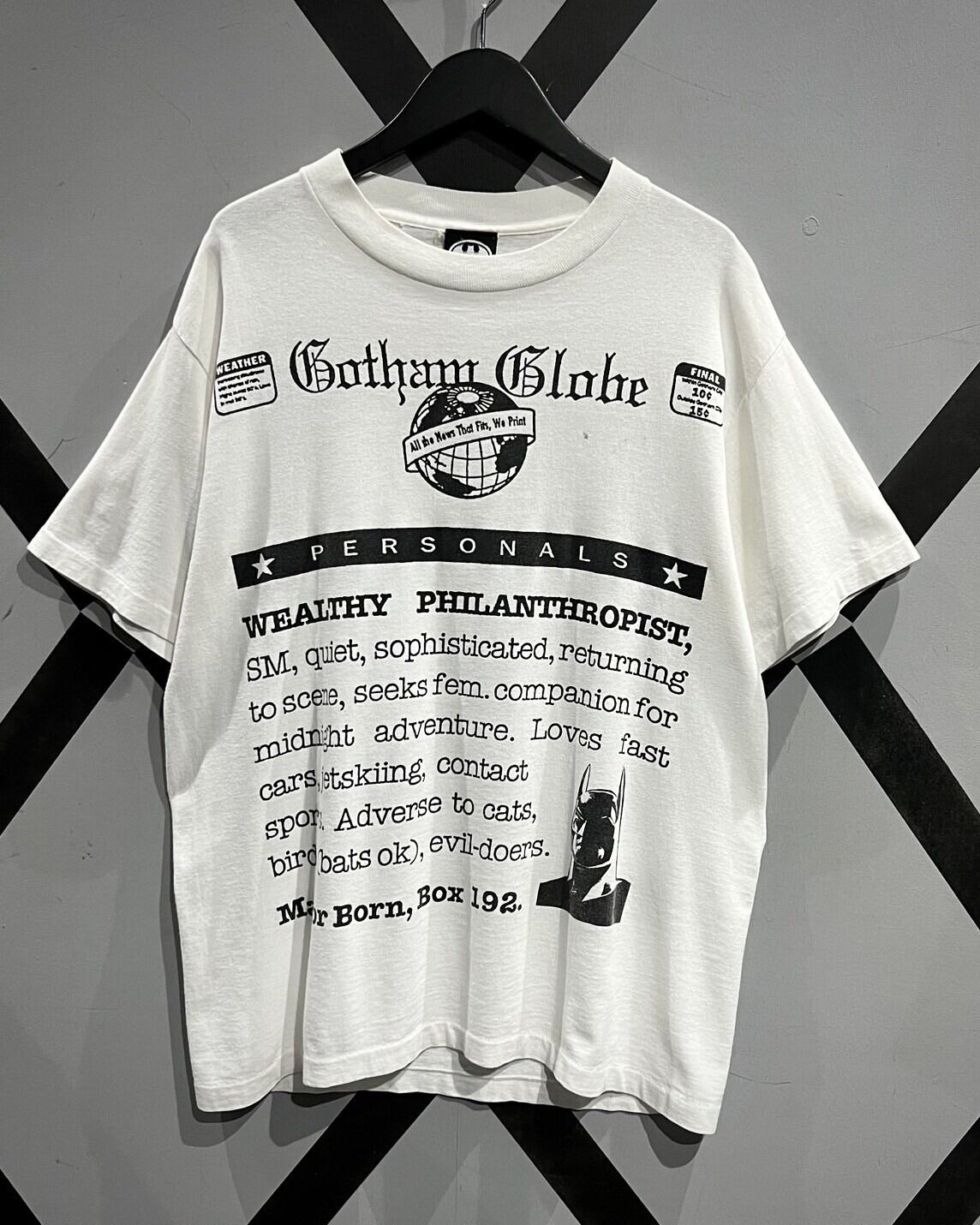 バットマンの舞台"ゴッサムシティ"のシティニュースペーパー"Gotham Globe"のデザインを載せた1着。