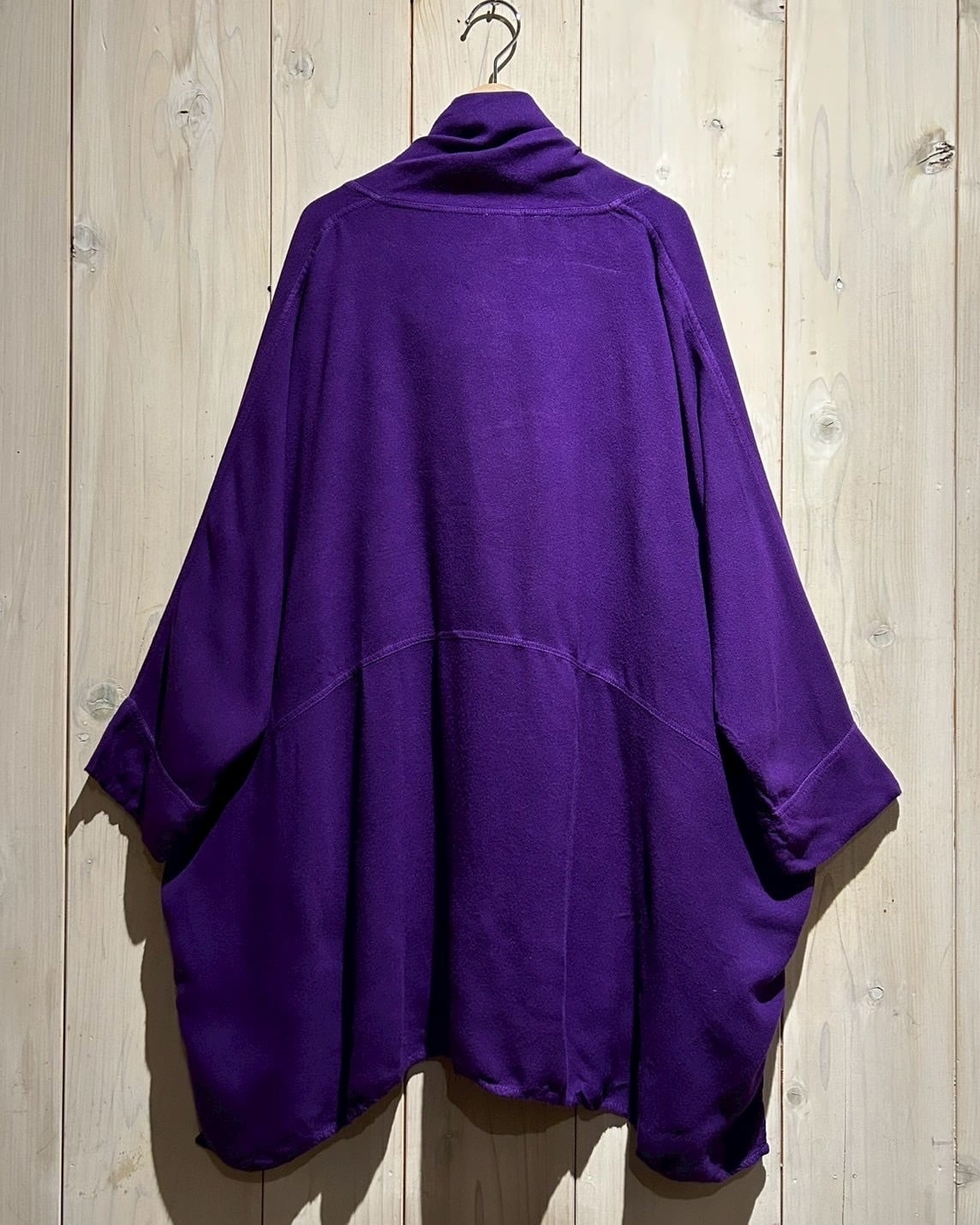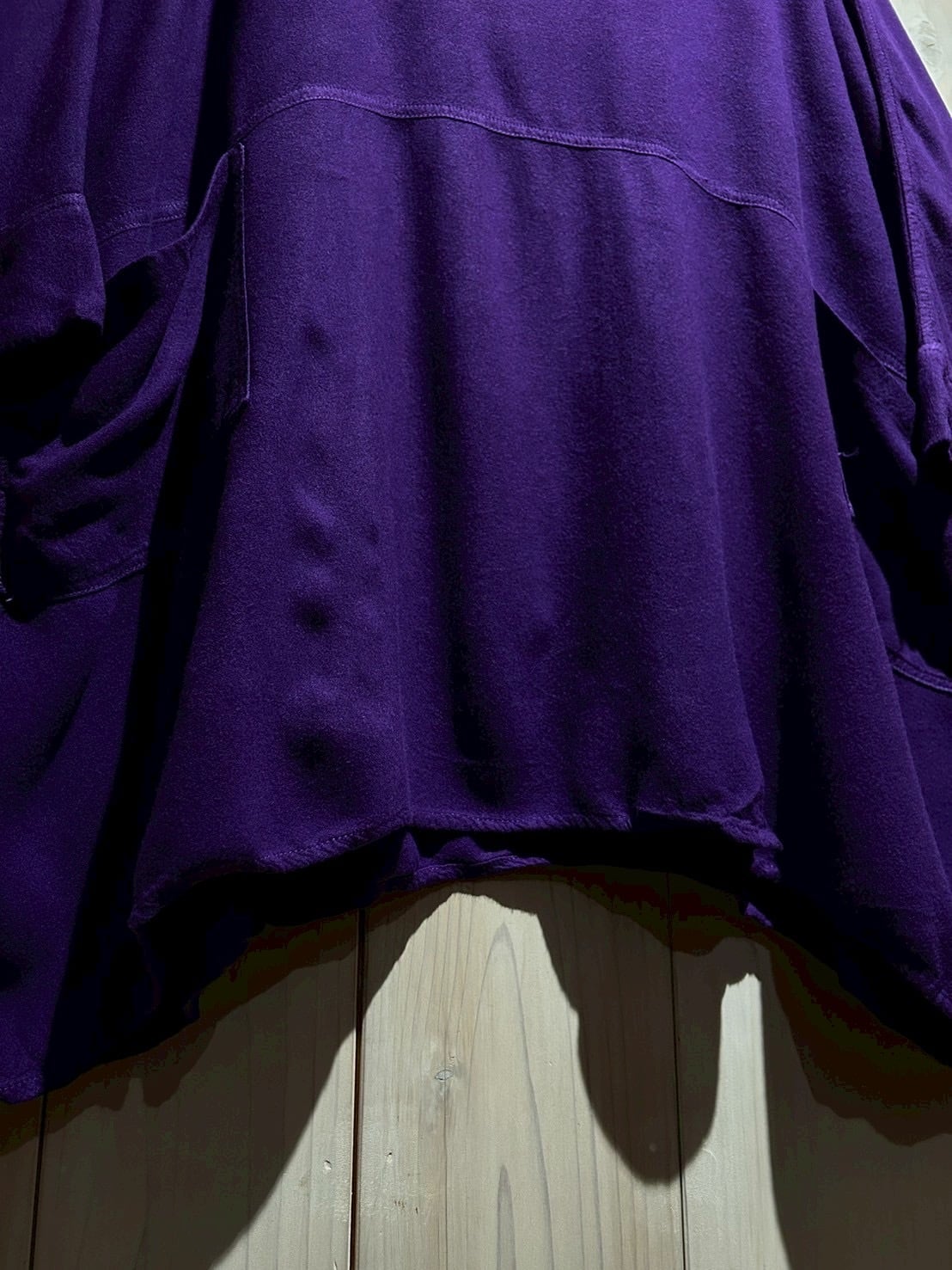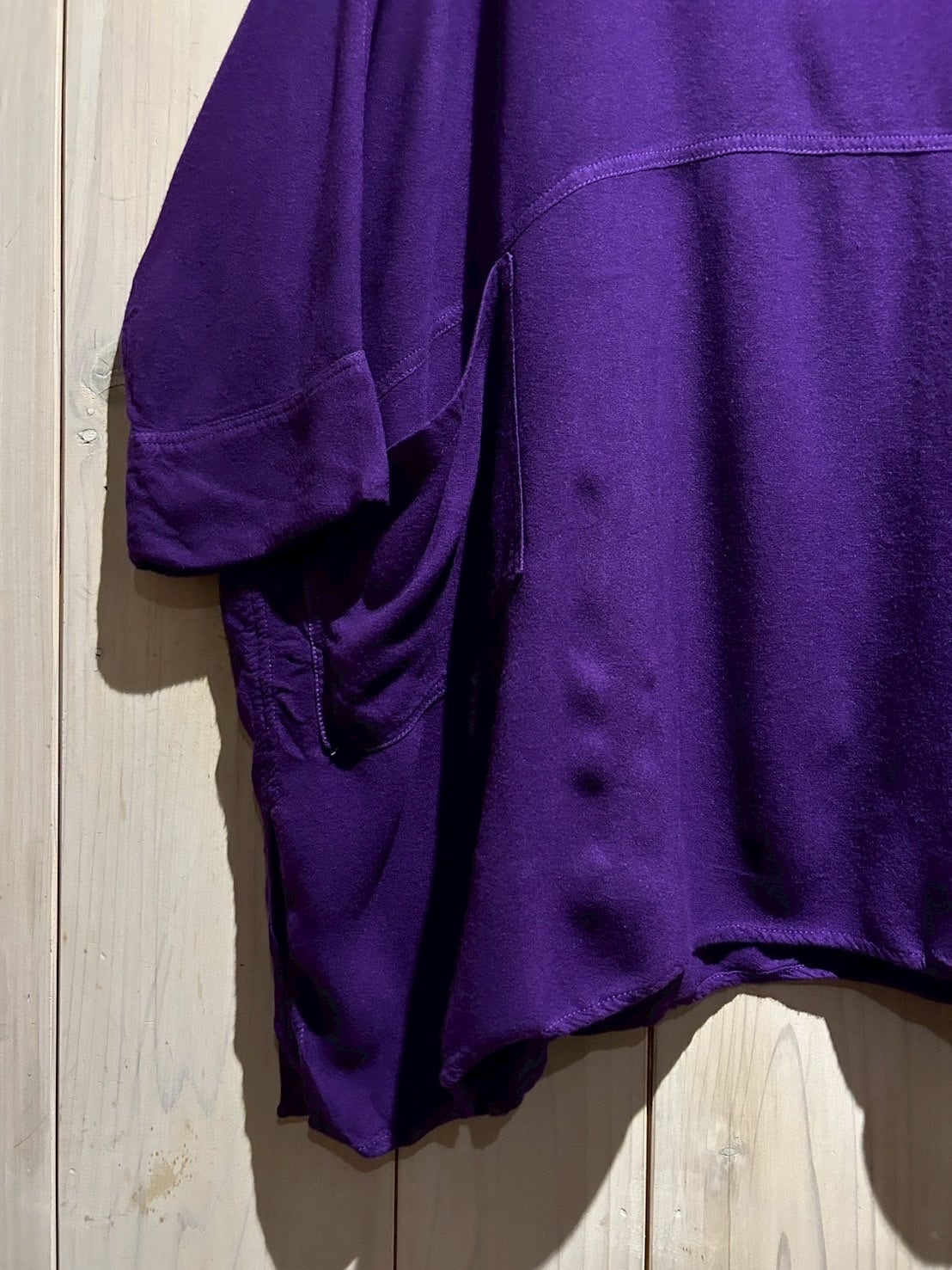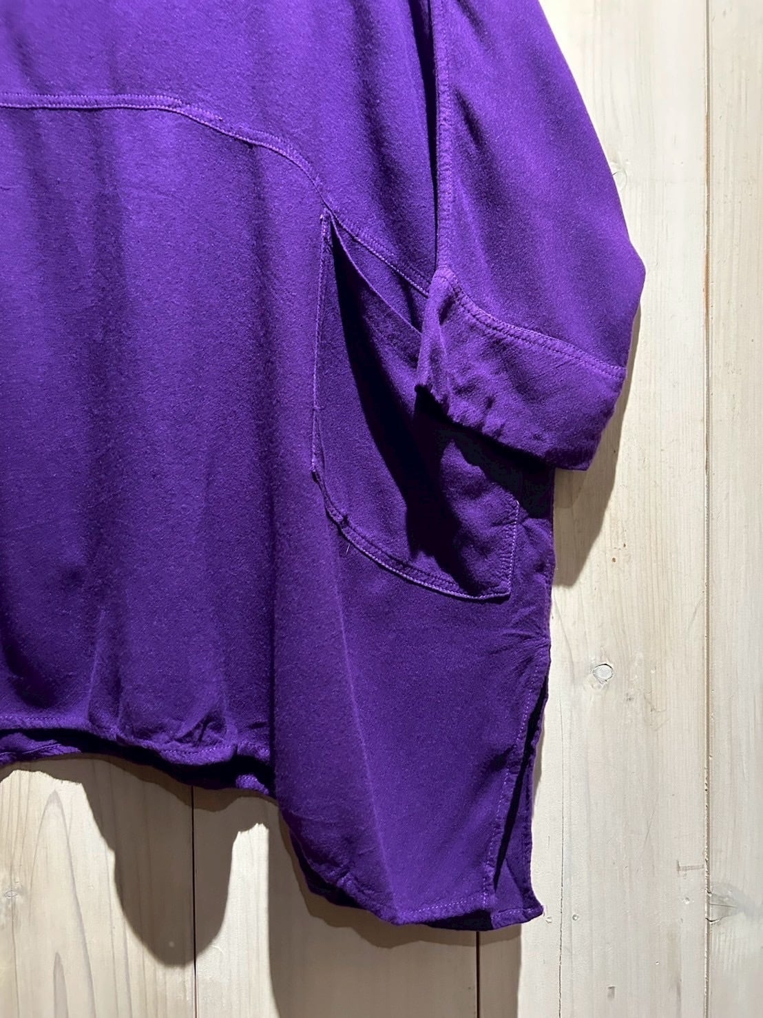 コットン×レーヨンを混紡したとろみのある柔らかな質感のファブリックをボディに使用し、鮮やかなパープルカラーで仕上げたドルマンスリーブプルオーバー。