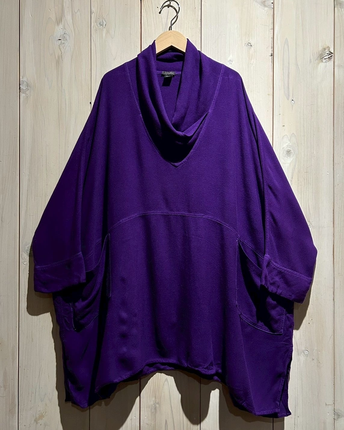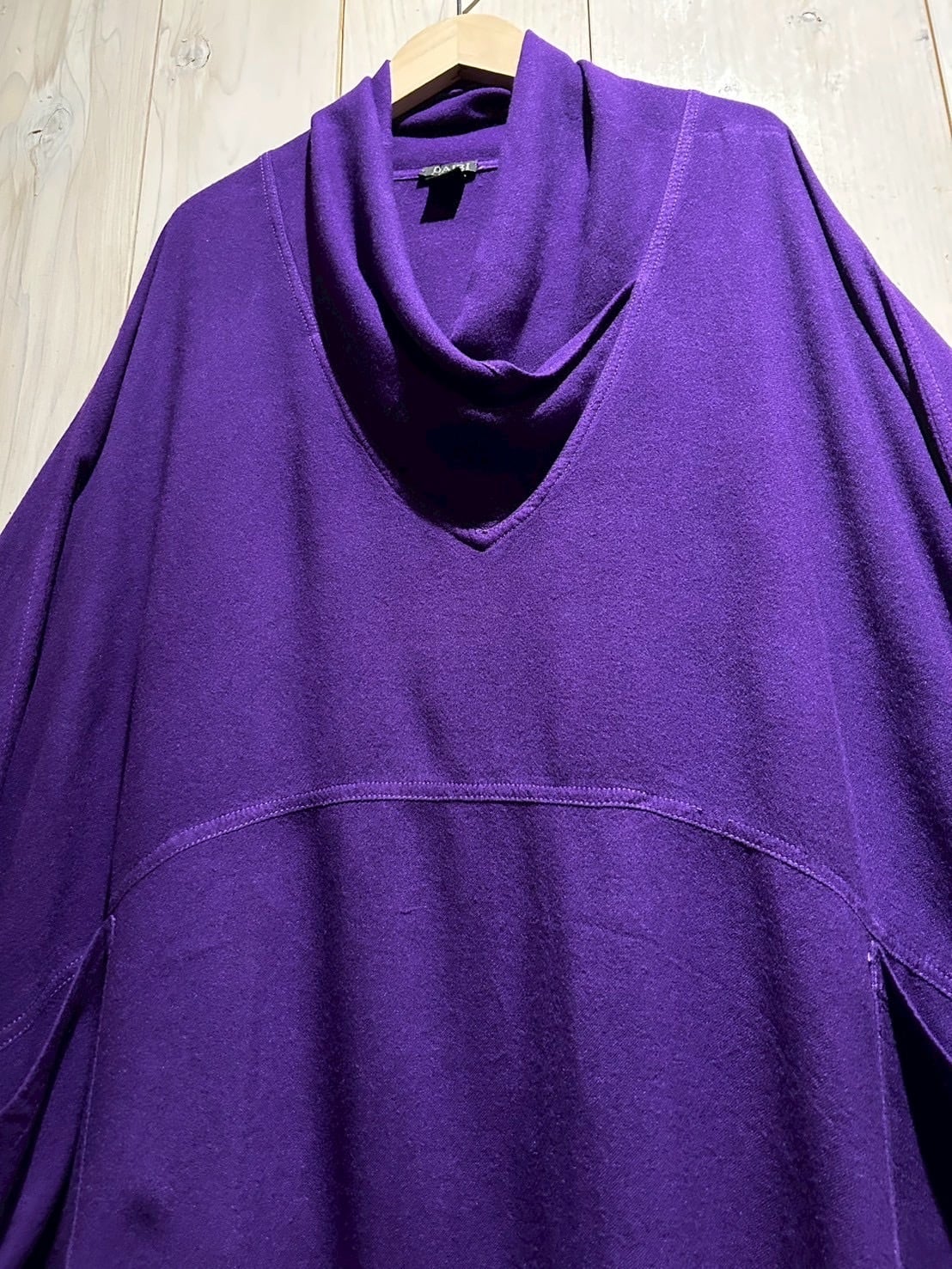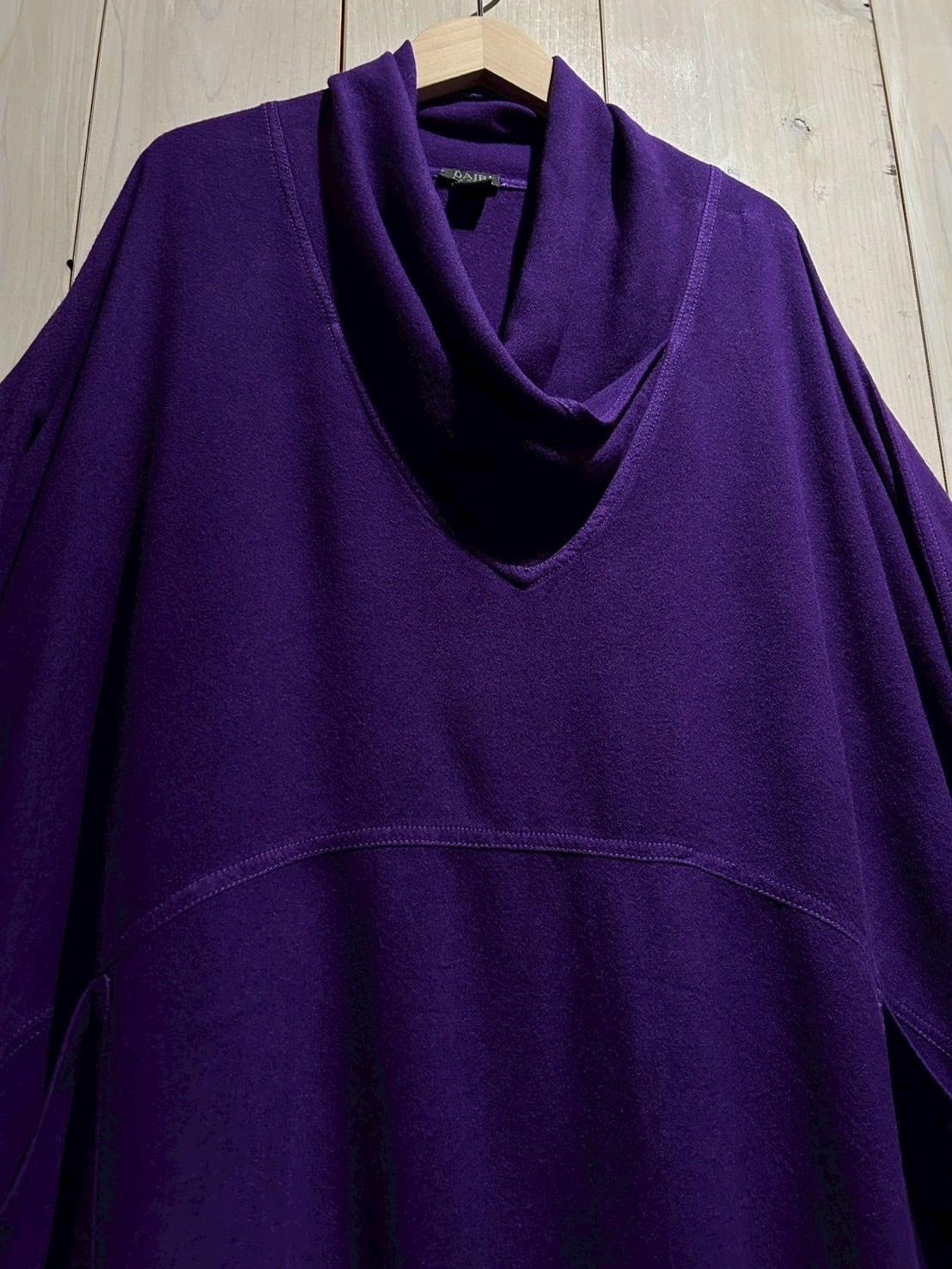 コットン×レーヨンを混紡したとろみのある柔らかな質感のファブリックをボディに使用し、鮮やかなパープルカラーで仕上げたドルマンスリーブプルオーバー。