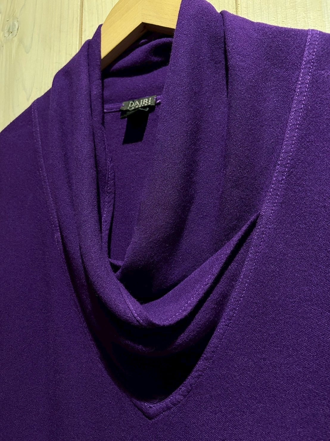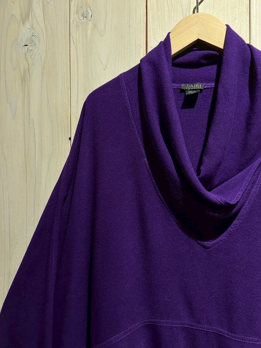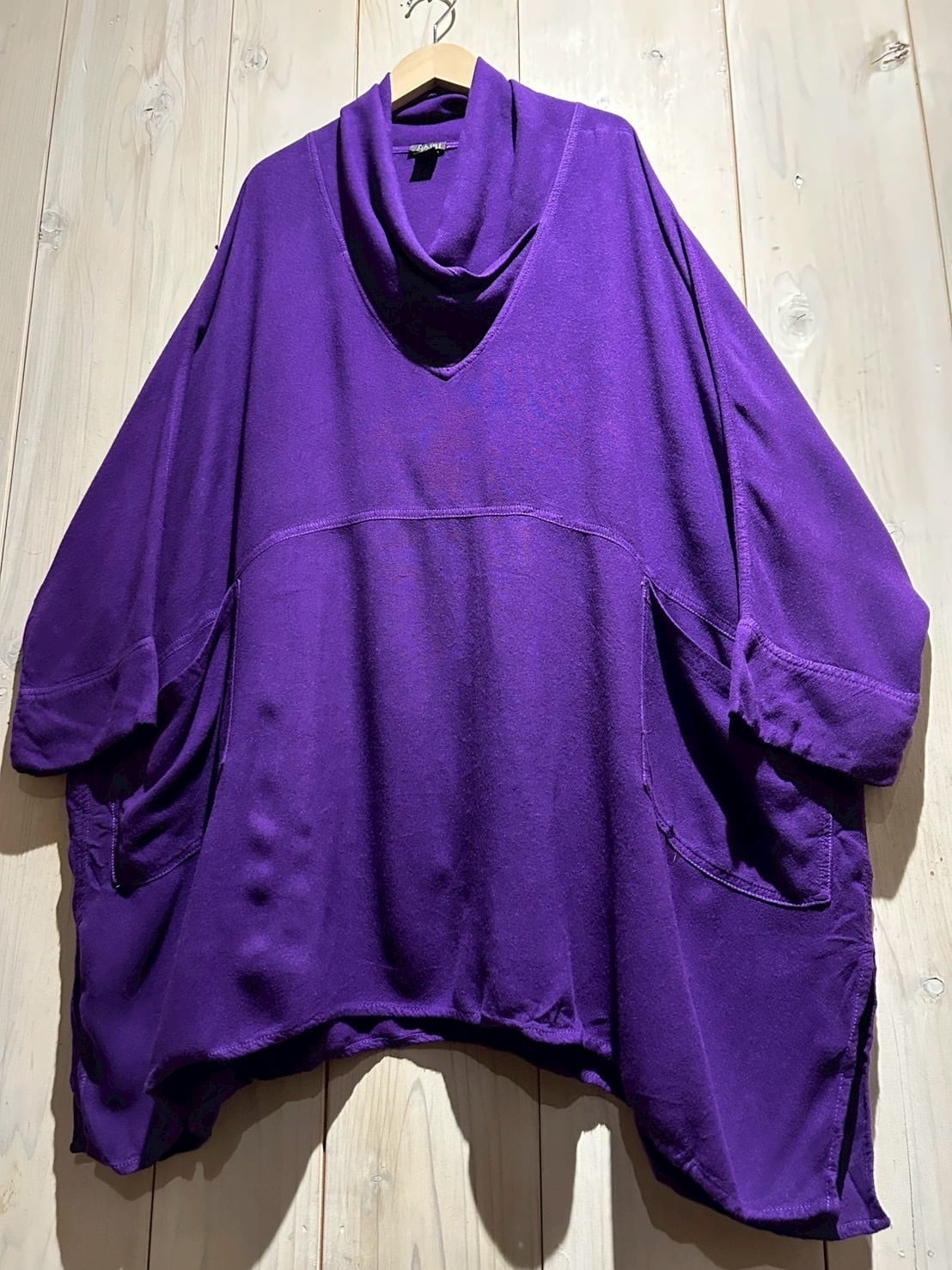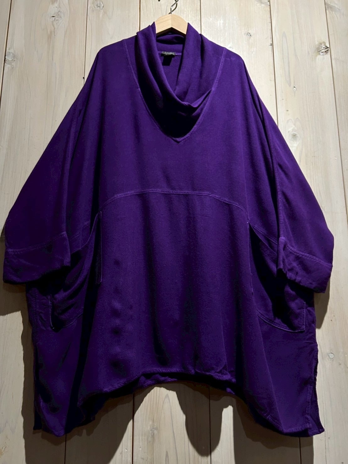 コットン×レーヨンを混紡したとろみのある柔らかな質感のファブリックをボディに使用し、鮮やかなパープルカラーで仕上げたドルマンスリーブプルオーバー。