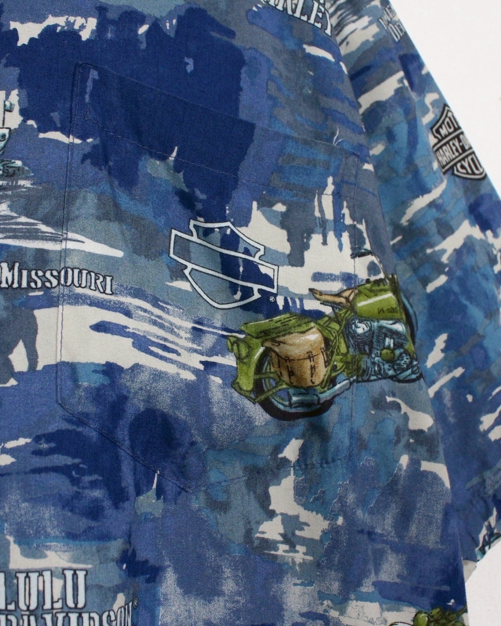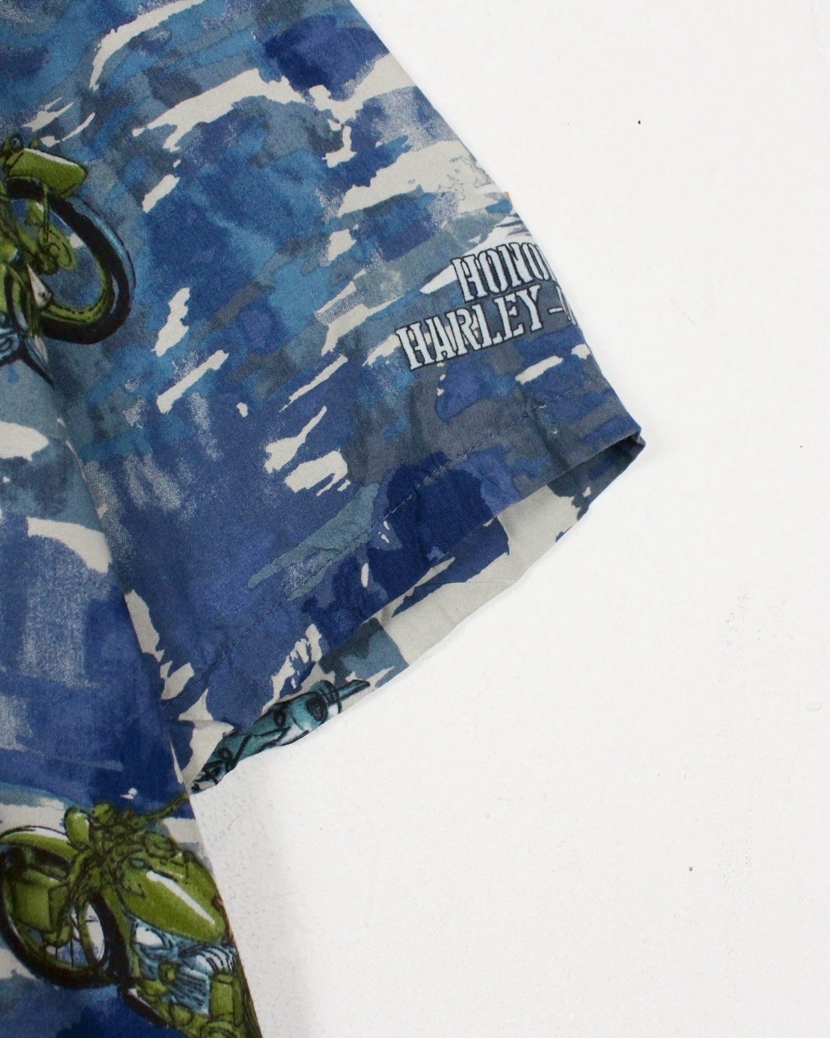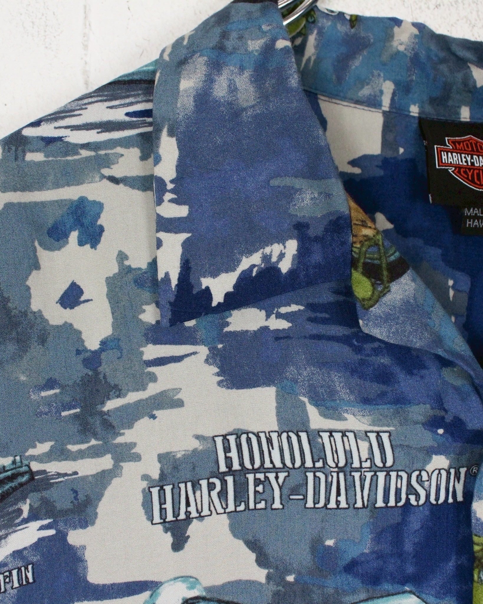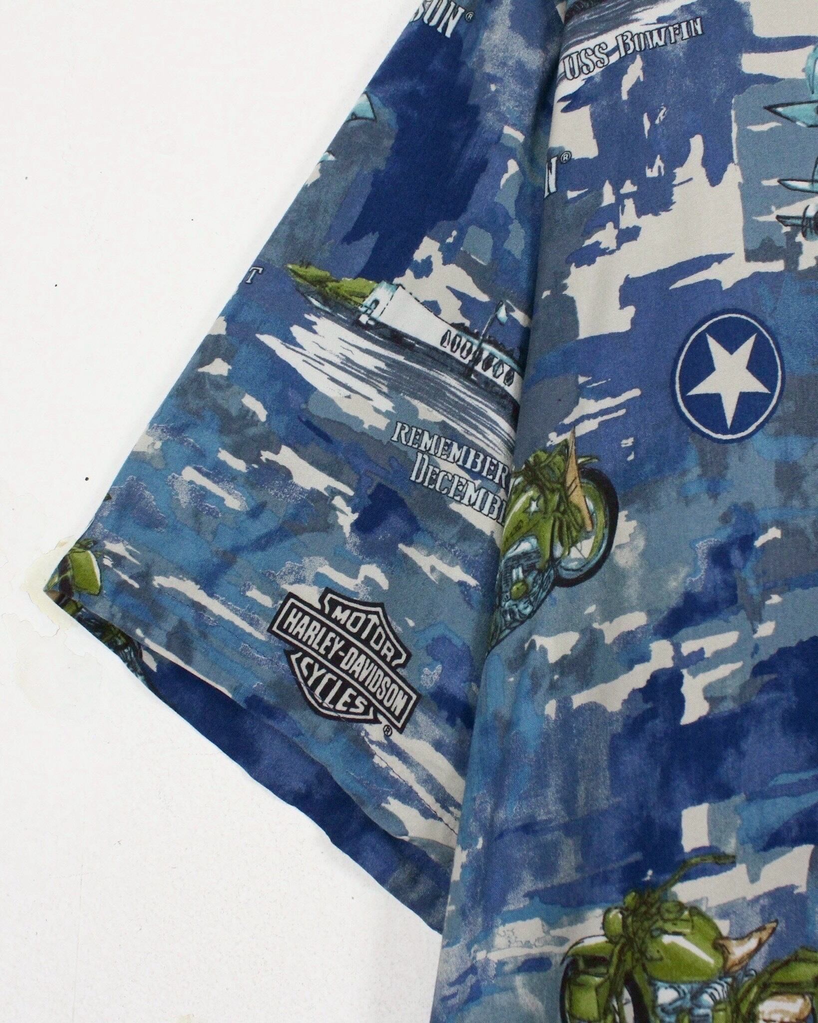 1941年12月7日に行われた"真珠湾攻撃"をソースとした柄を落とし込んだ、ホノルル・ハーレーダビッドソンからのハワイ製の稀有なオープンカラーシャツ。