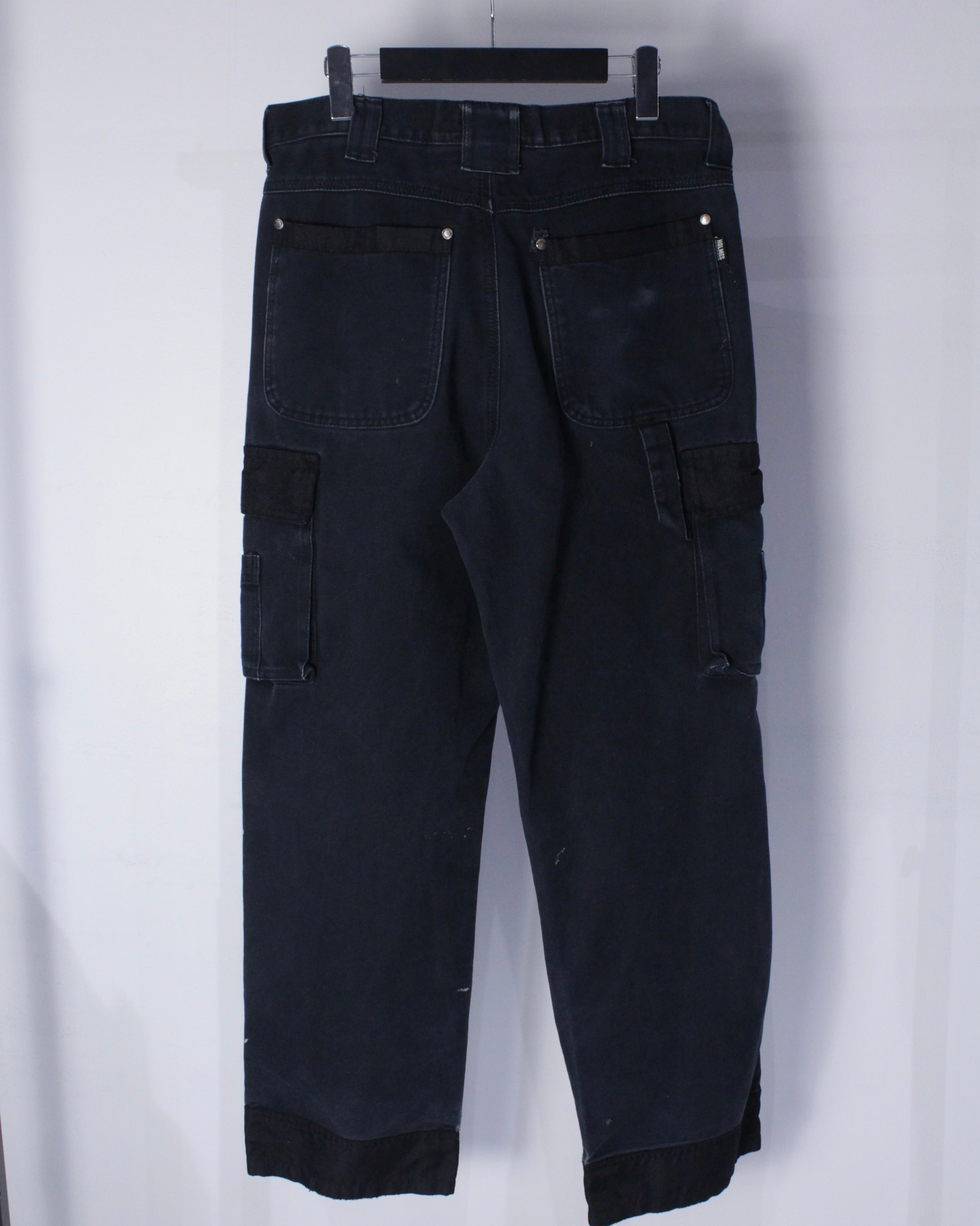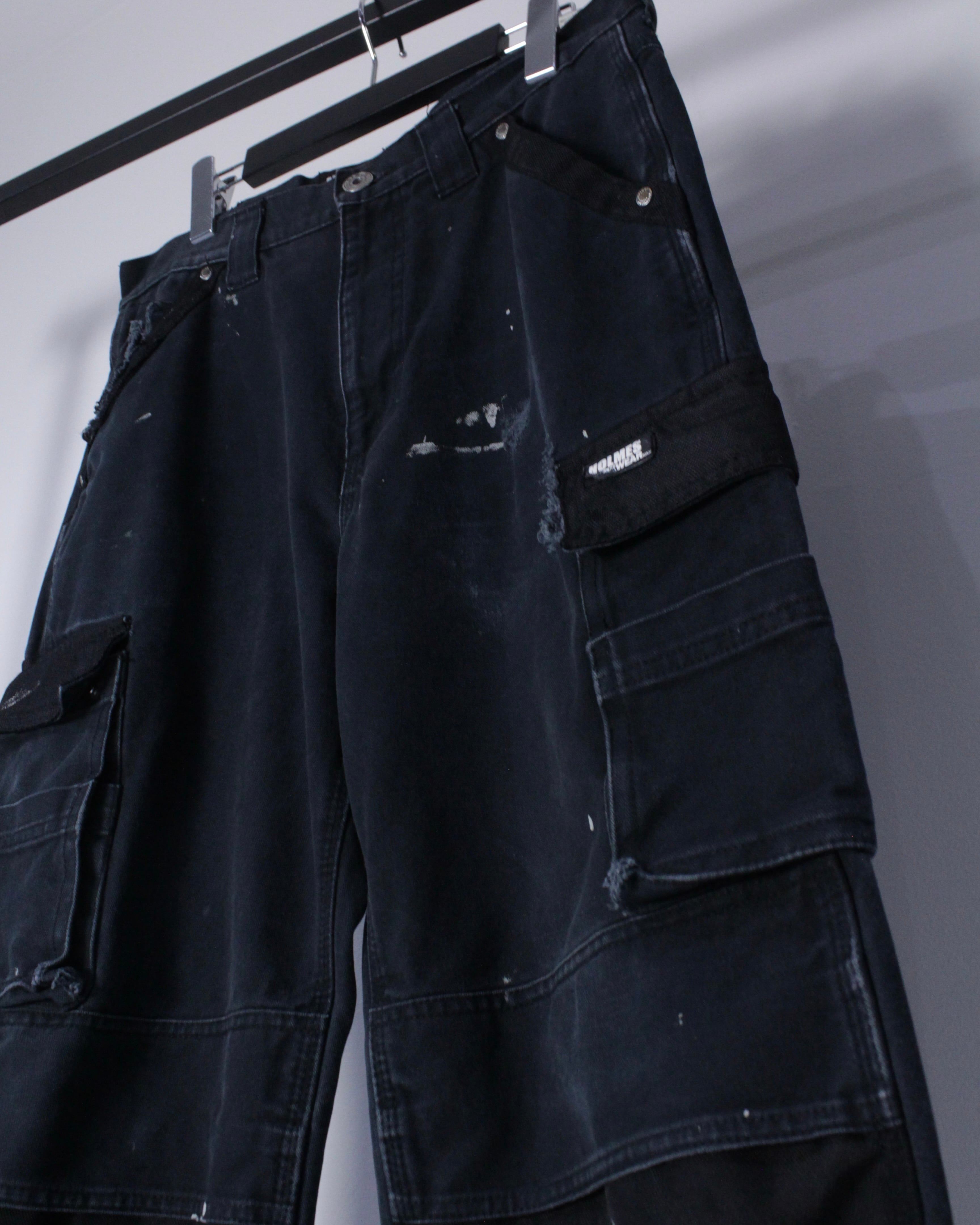 ブラックのダック地をボディに使用し、随所にナイロン生地を切り替えたダブルニーカーゴパンツ。