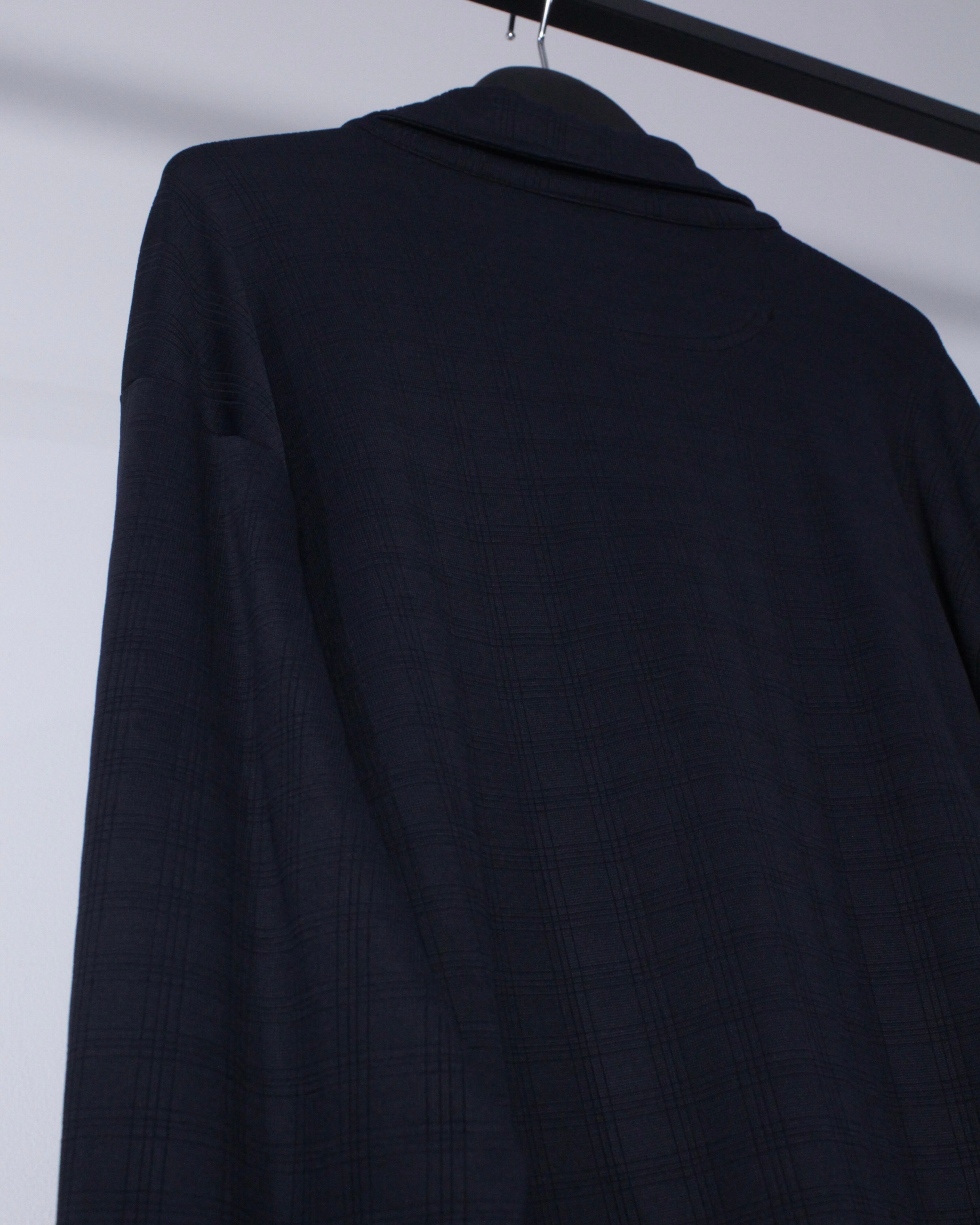 オールブラックの配色で映し出されたチェック柄に、滑らかなボディの質感によって洗練されたモダンな雰囲気を漂わせる1着。