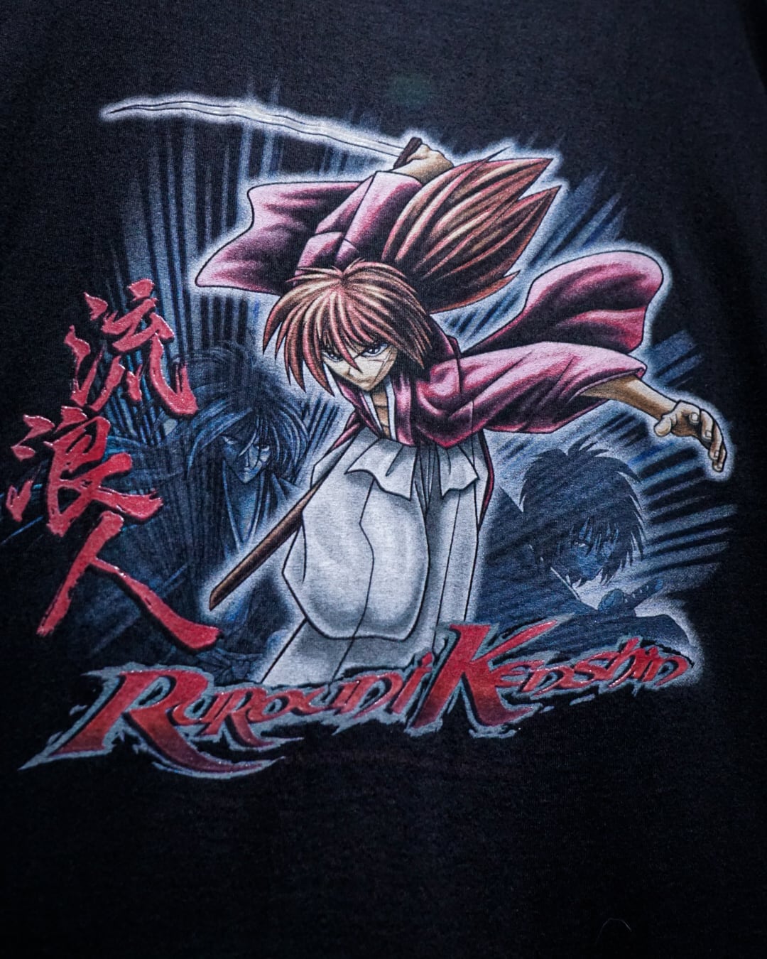明治時代初期の日本を舞台にした、日本アニメの代表作の一つ『るろうに剣心 -明治剣客浪漫譚-』のTシャツ。