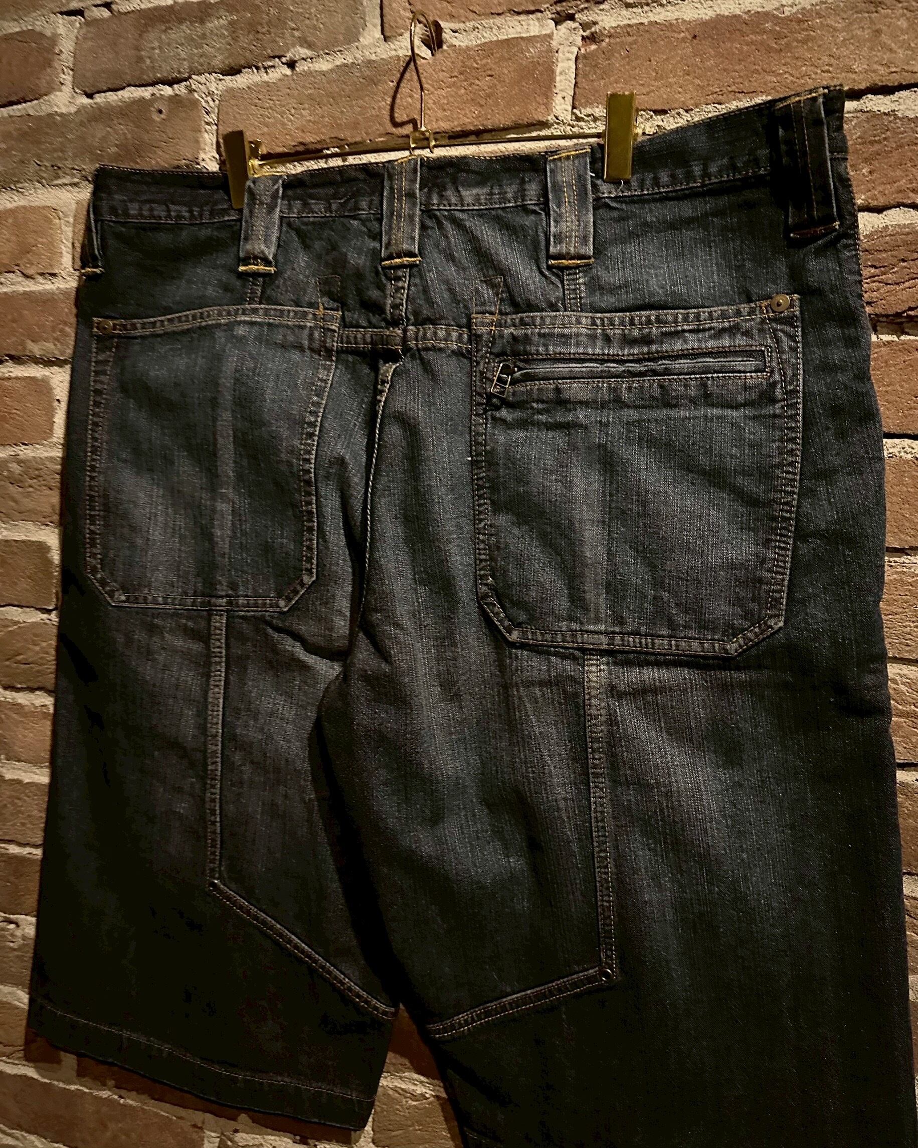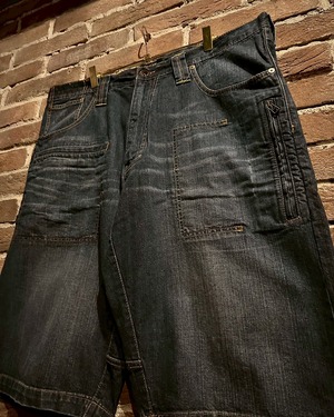 色落ち加工が施されたボディに、ステッチやラインでデザインを載せたデニムショーツ。