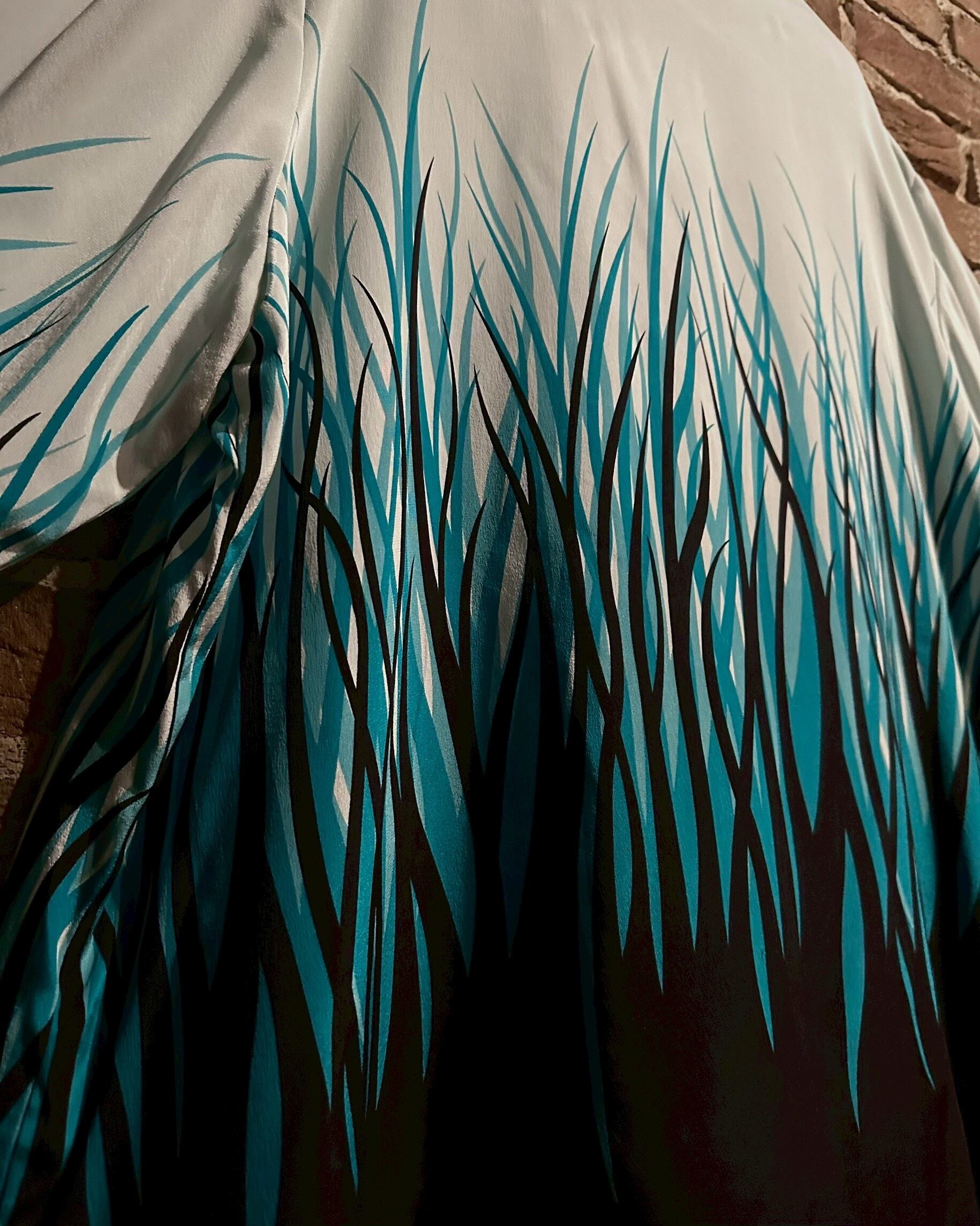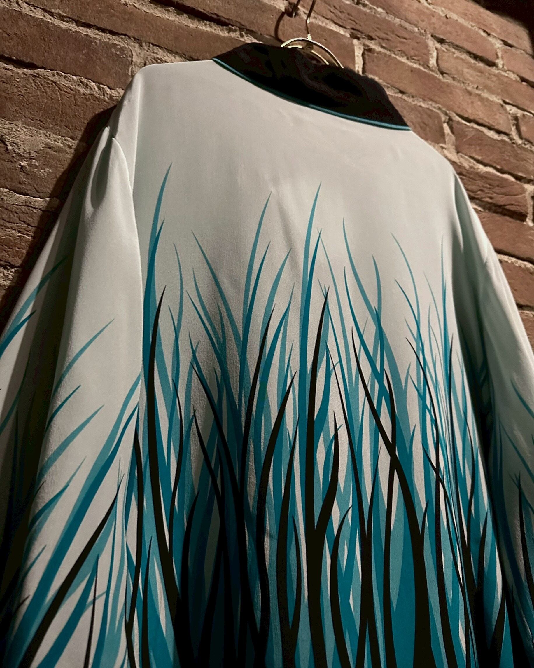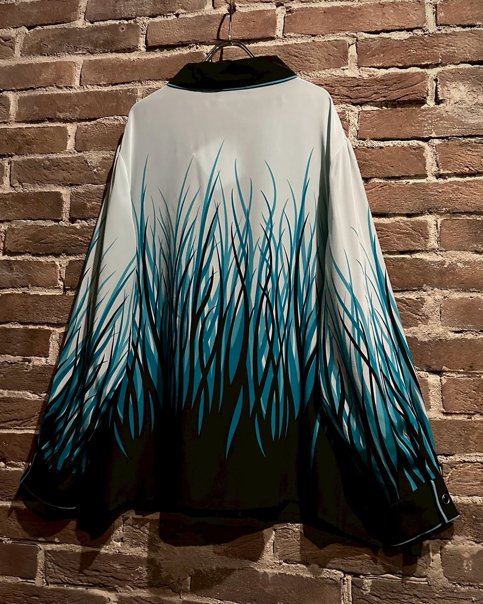 フワッと軽く、滑らかで上質なシルク素材に、爽やかな草原を表現したような柄模様を載せたシャツ。