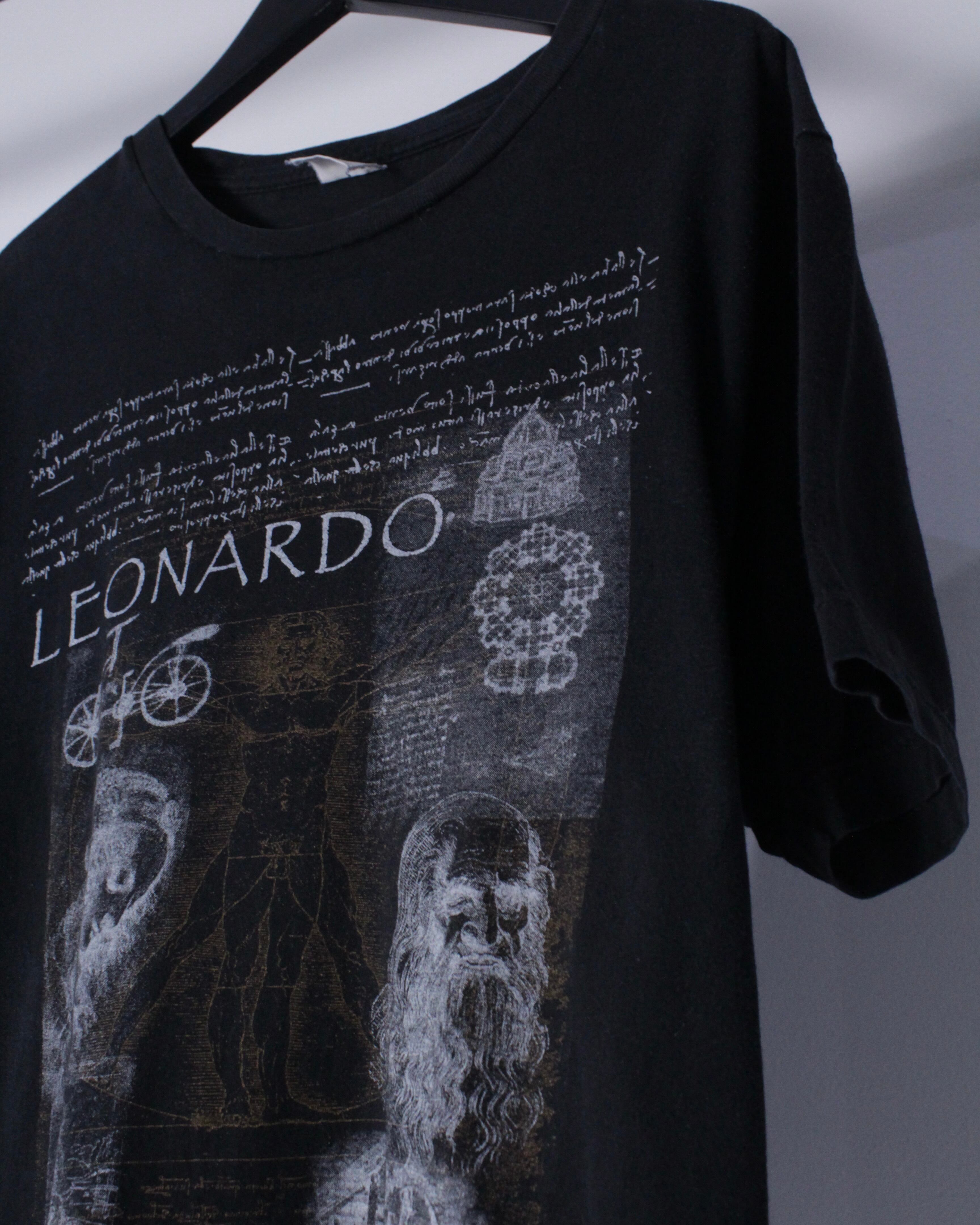 イタリアのルネサンス期を代表する芸術家レオナルド・ダ・ヴィンチ作"ウィトルウィウス的人体図"のTシャツ。