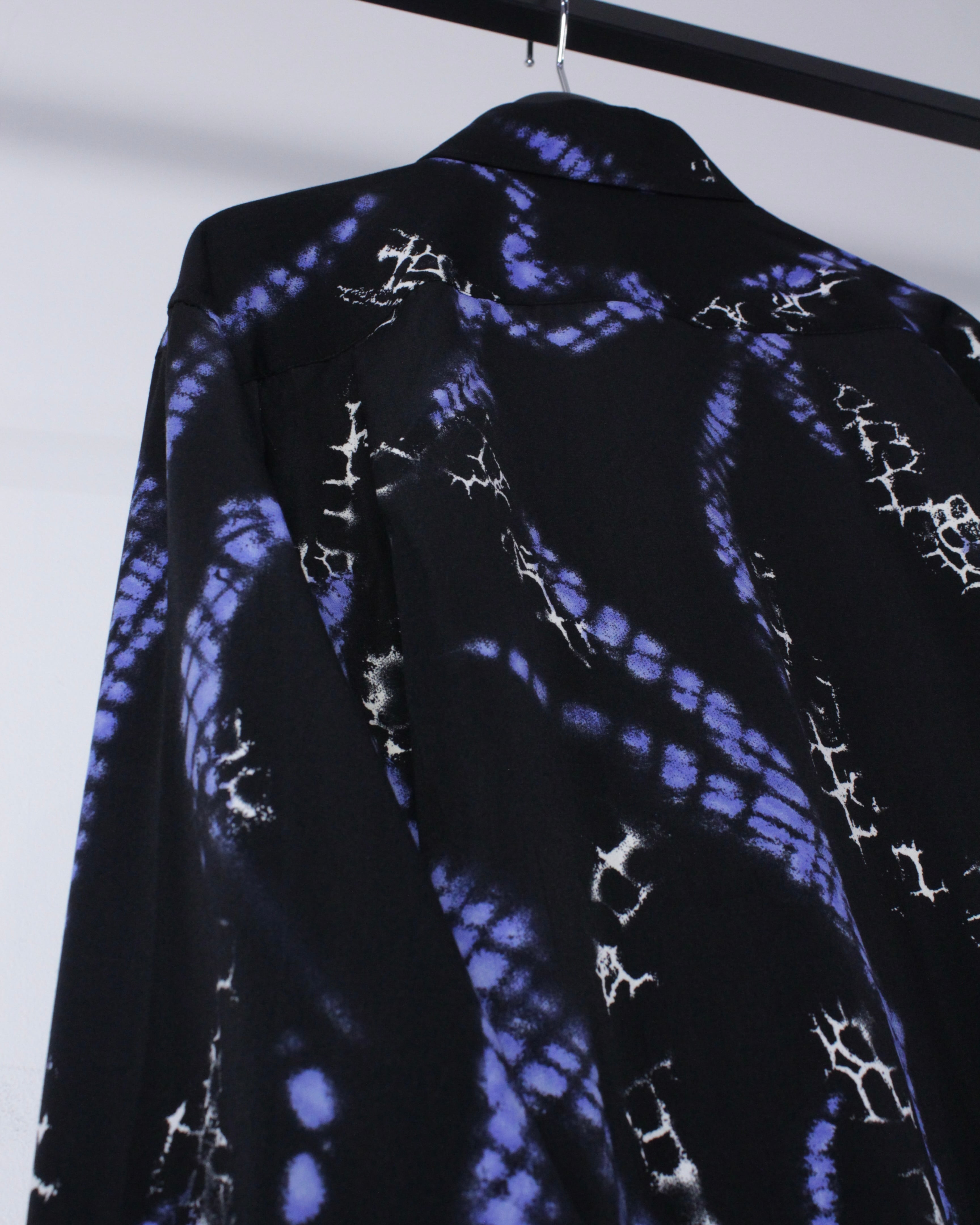 ツルッと滑らかなボディに、アーティスティックな、独特な雰囲気を放つラインのデザインを載せた長袖シャツ。