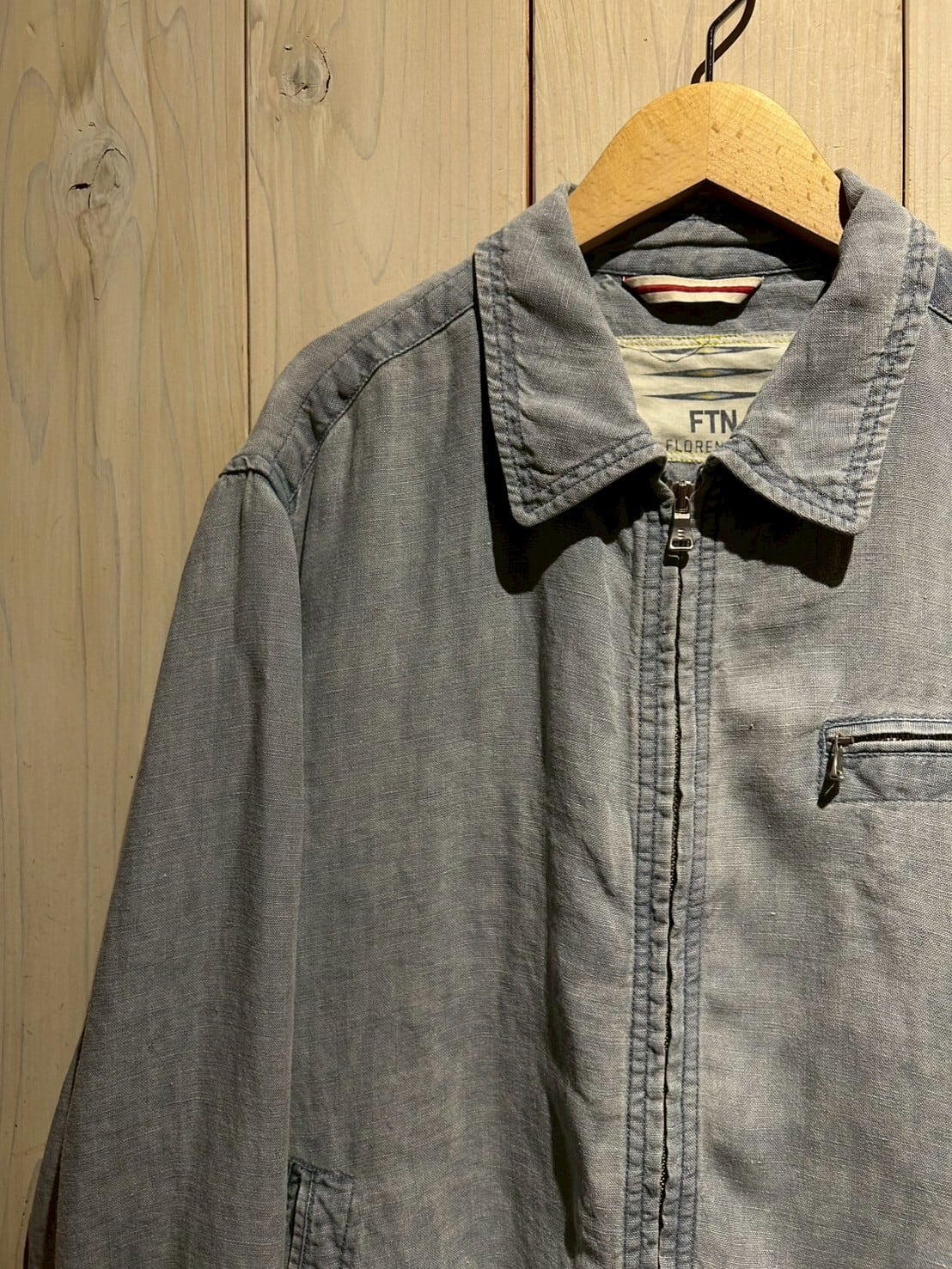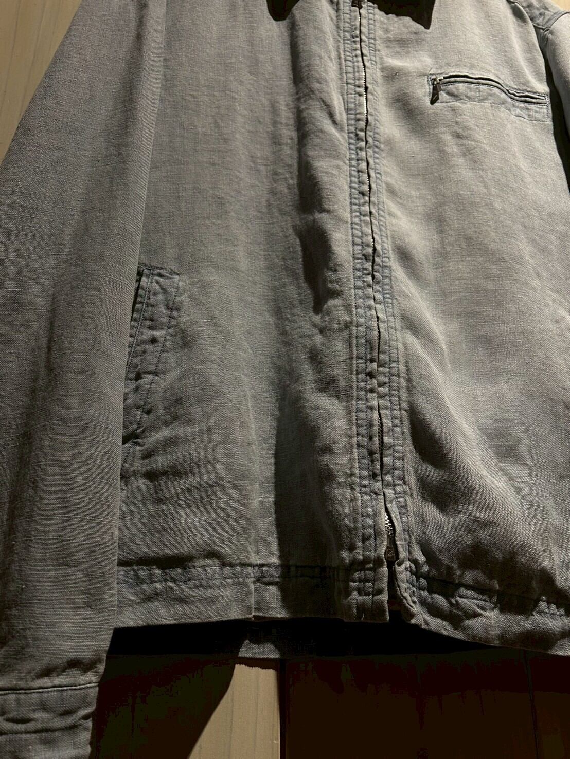 経年変化によってボディが美しくフェードした、リネン混のジップアップジャケット。