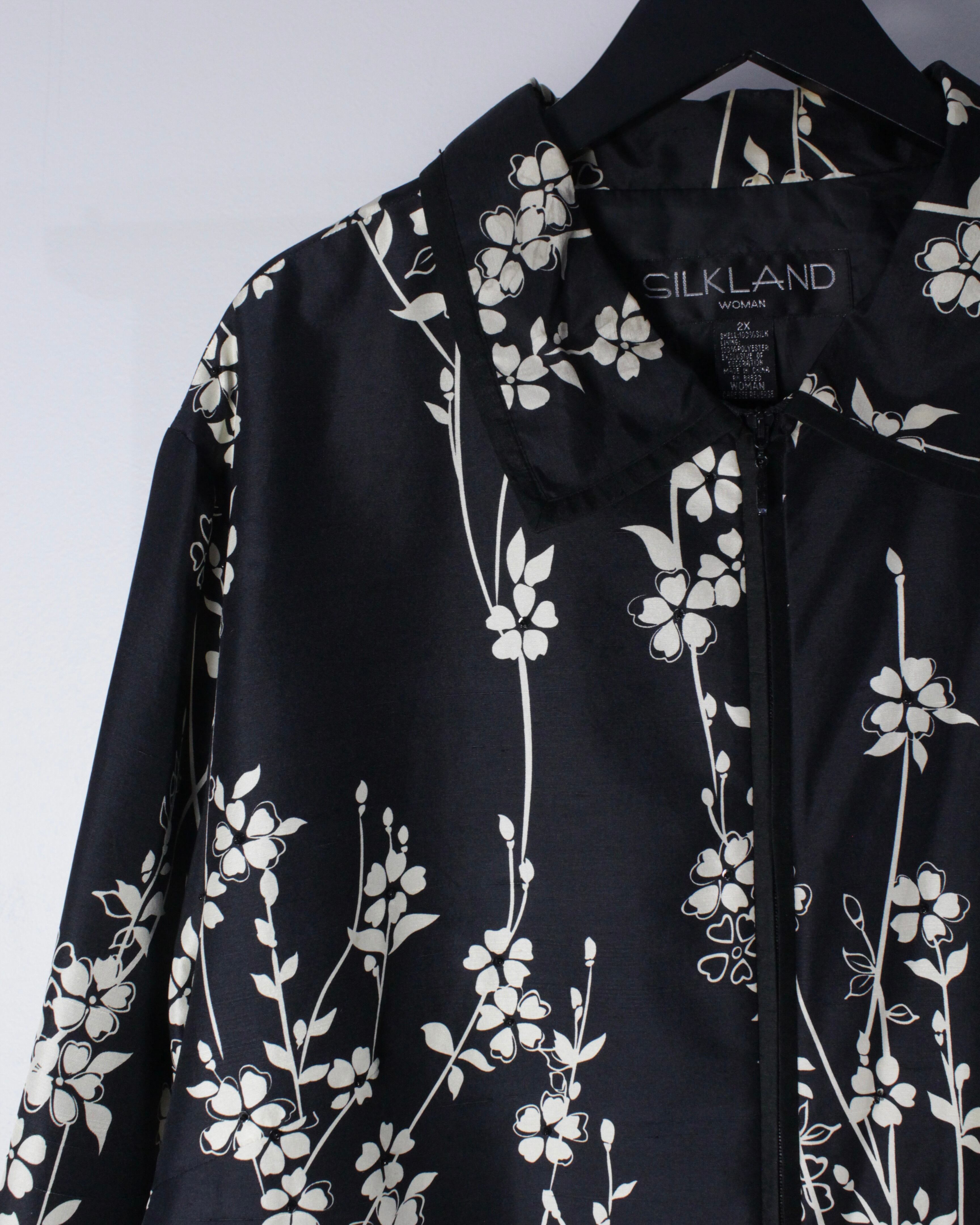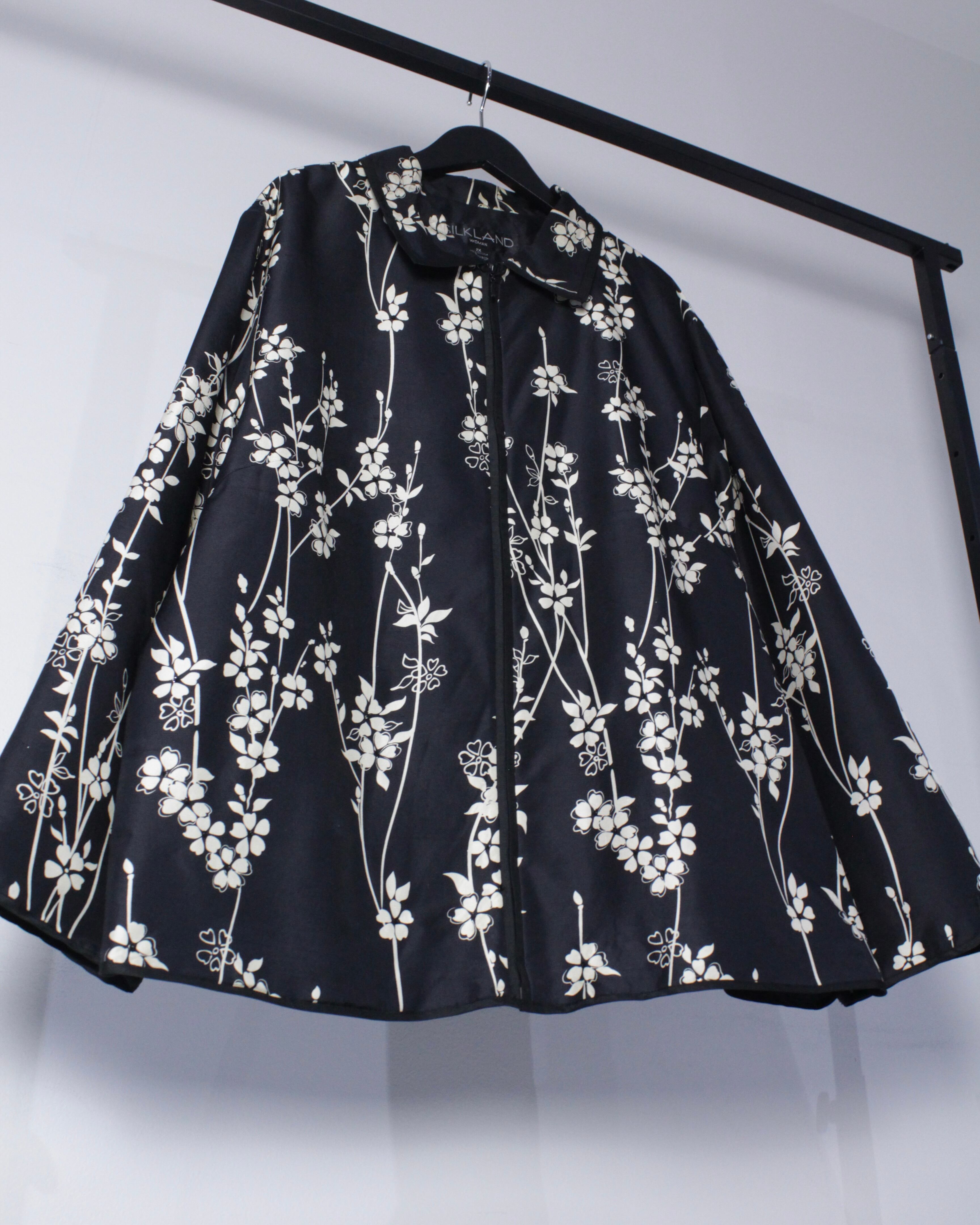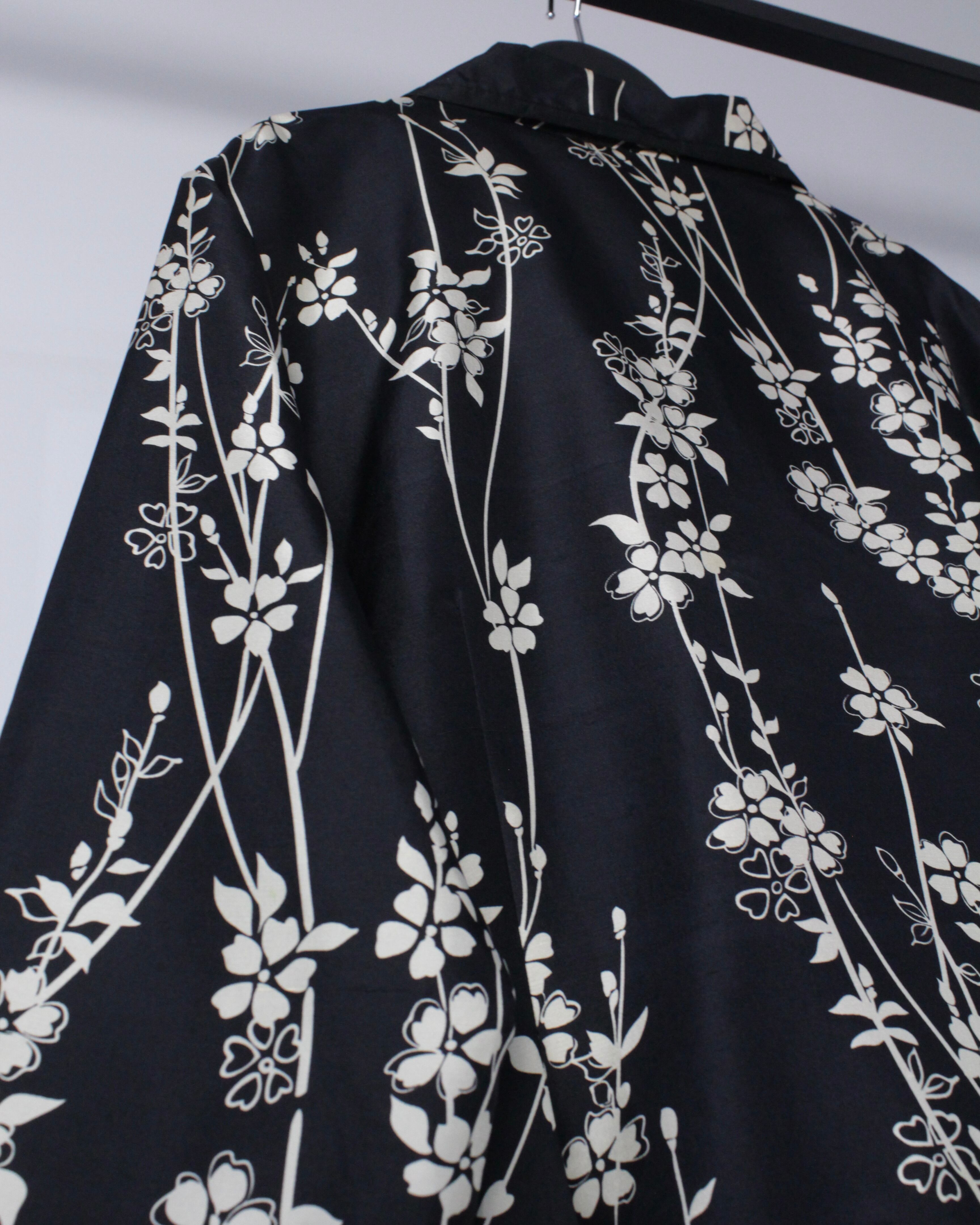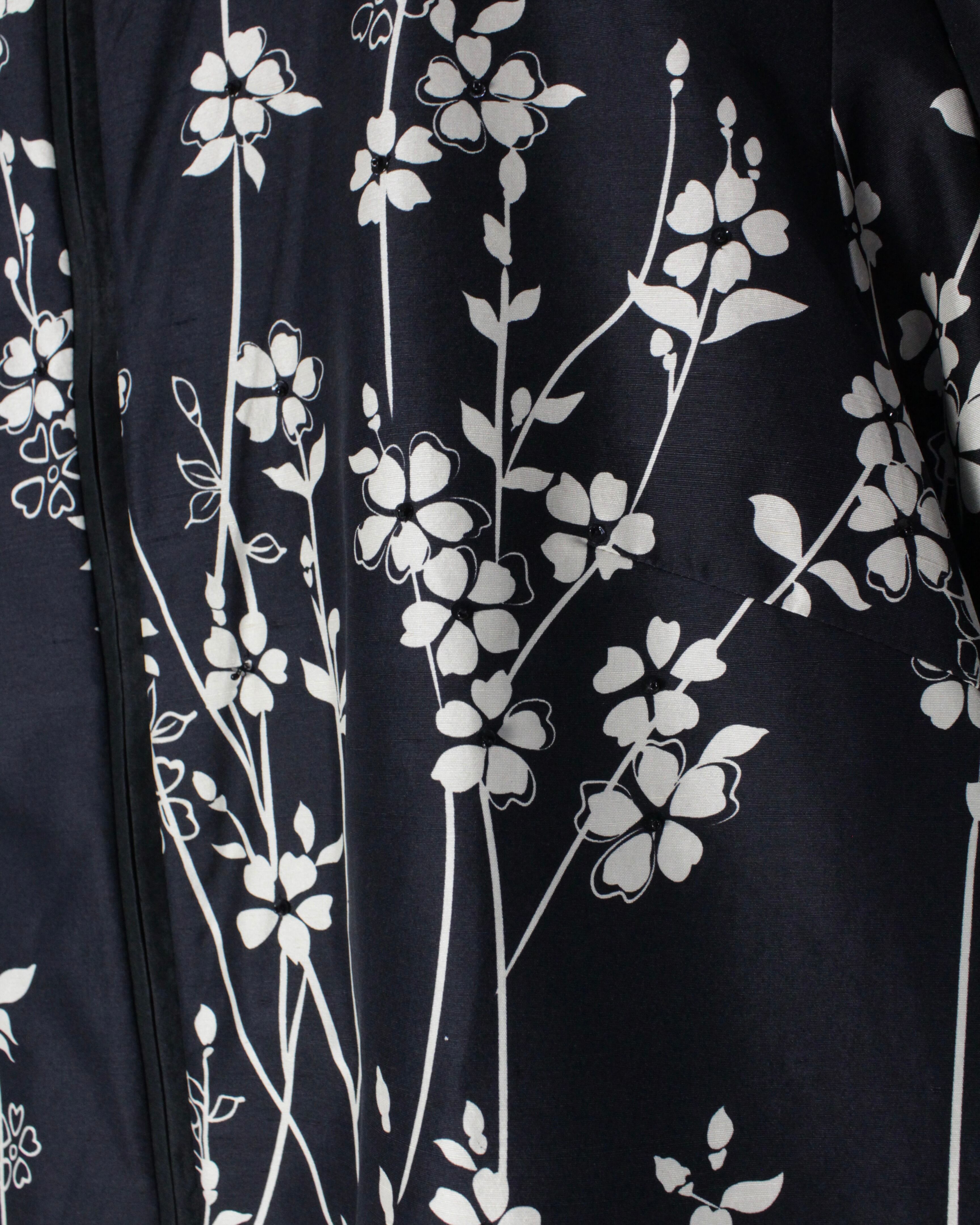 ブラックのボディをベースに、美しい花柄を載せたシルクジャケット。