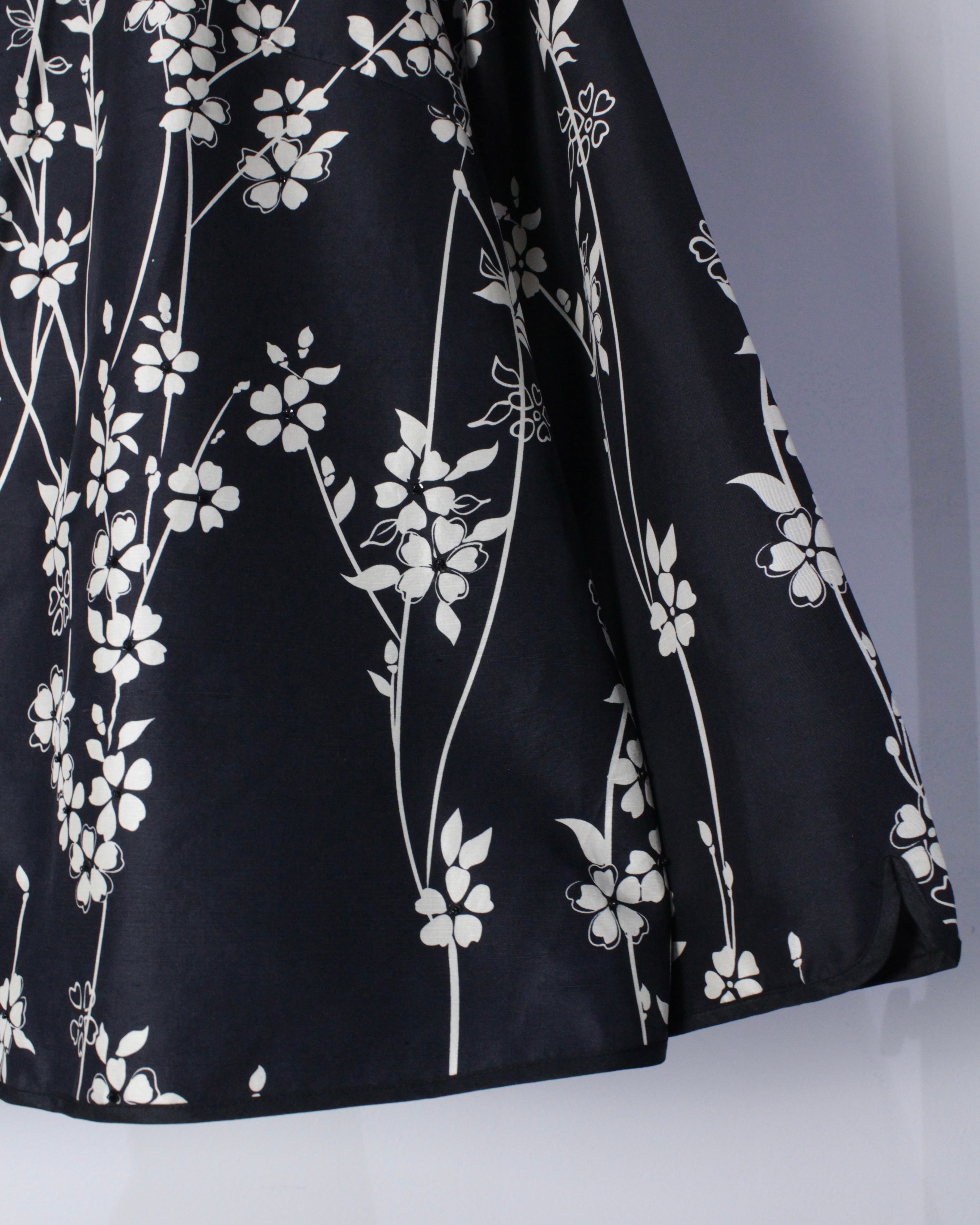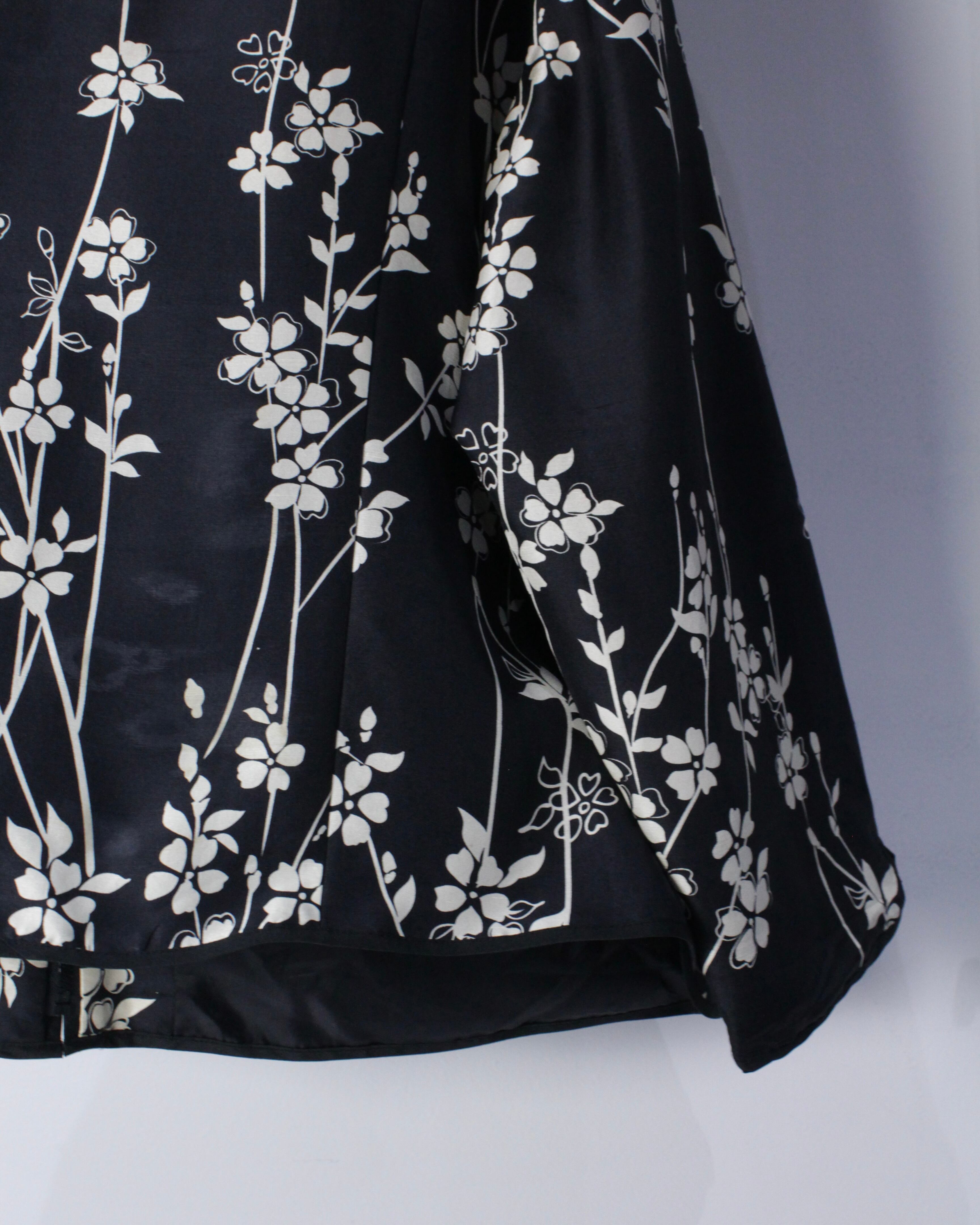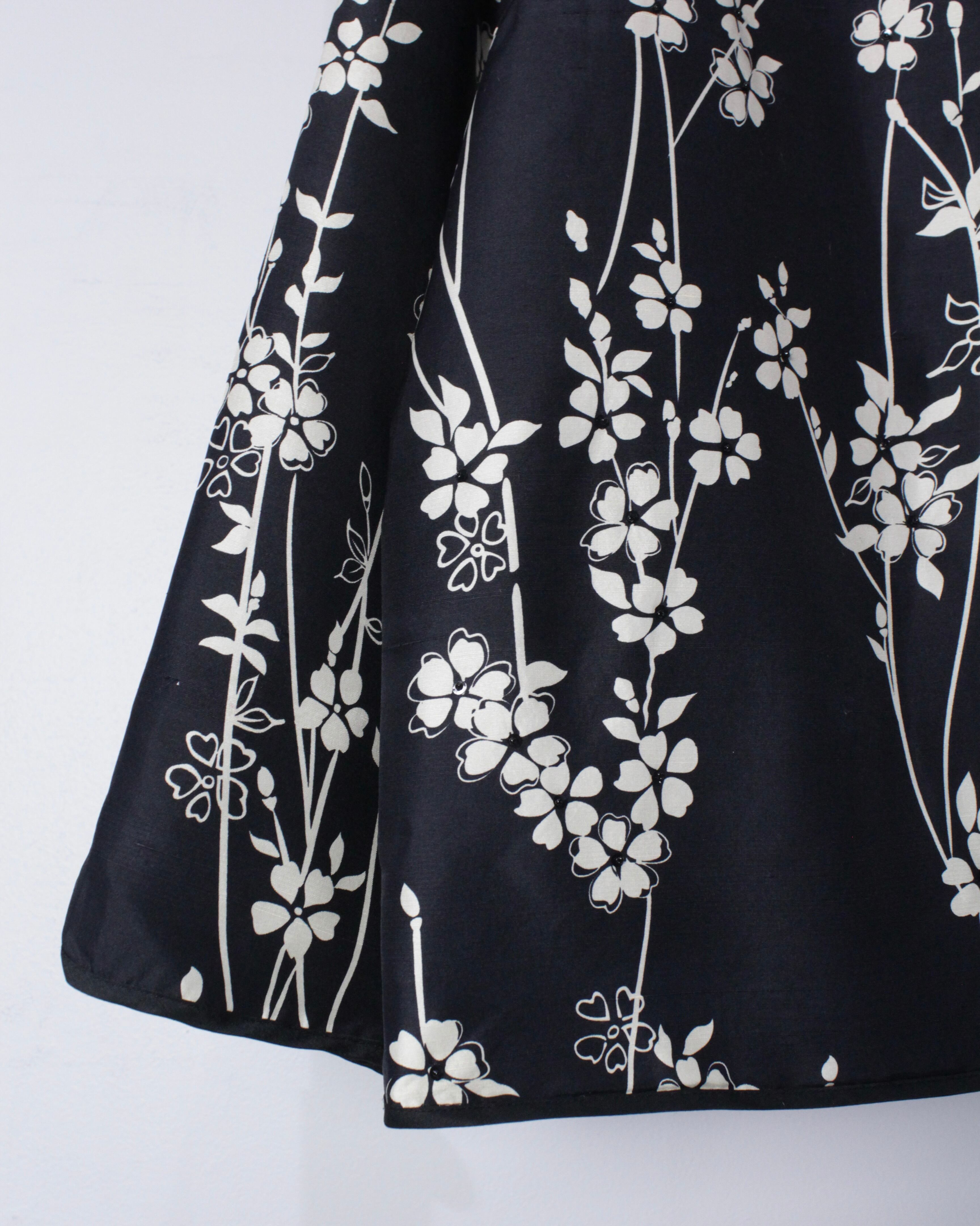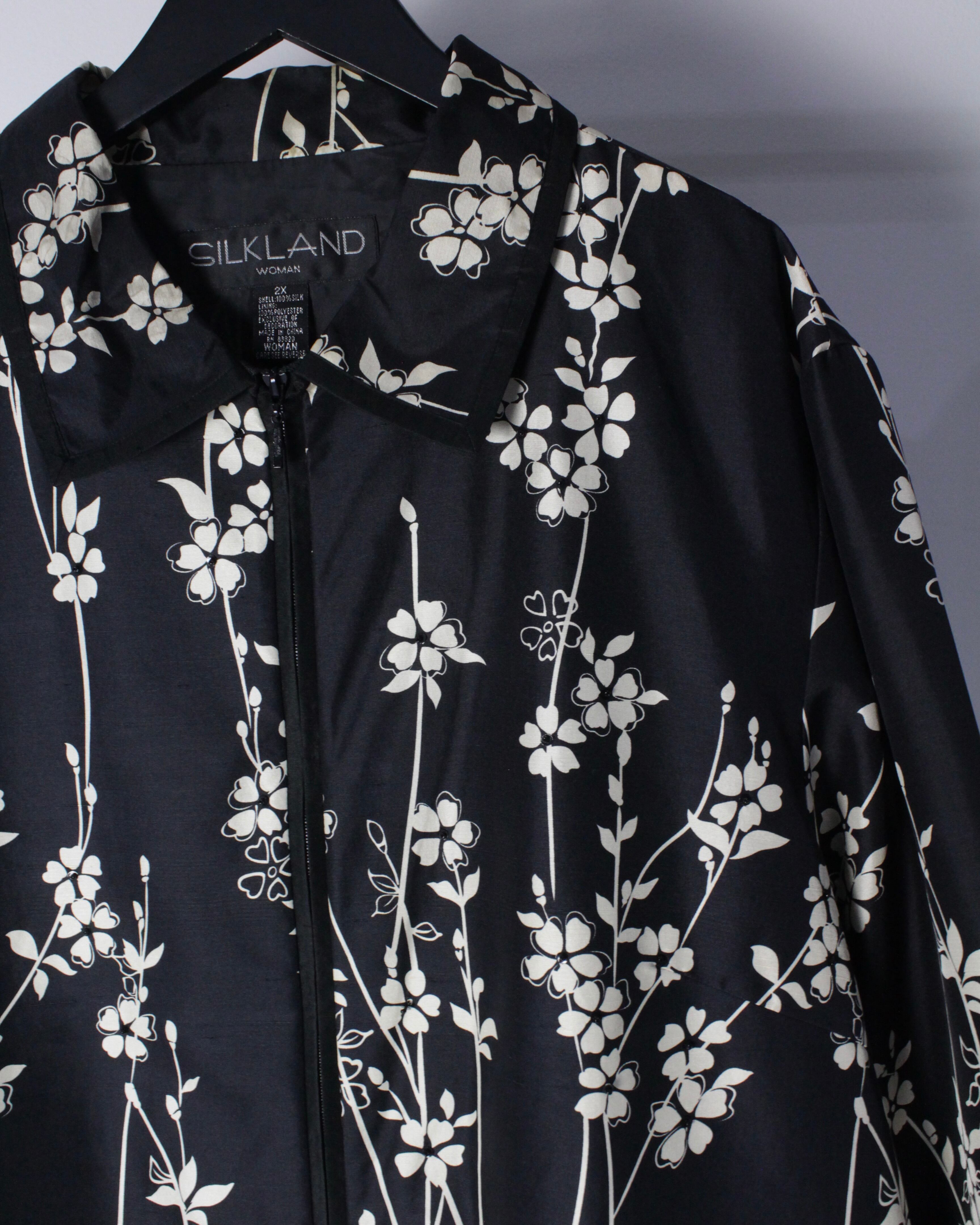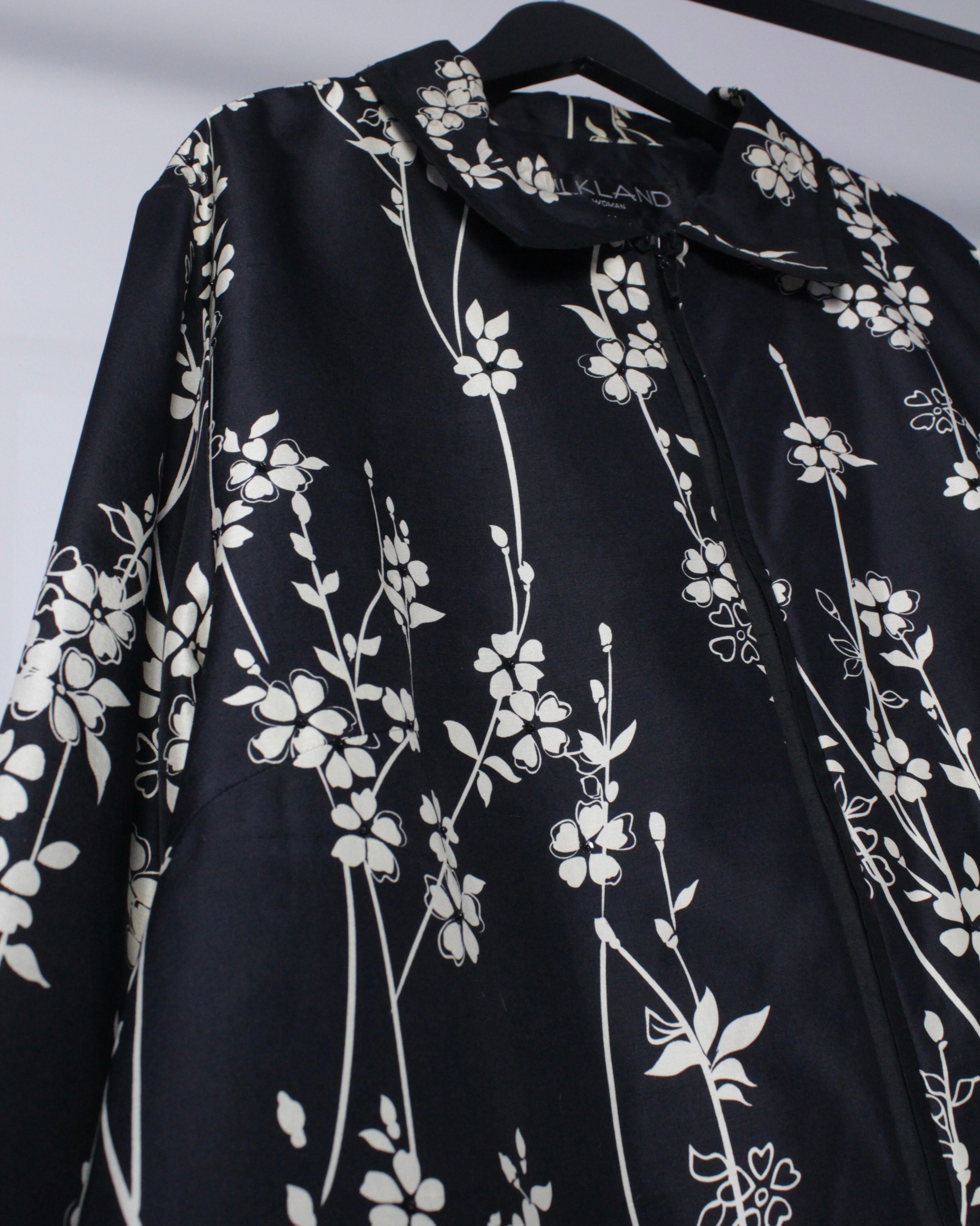ブラックのボディをベースに、美しい花柄を載せたシルクジャケット。