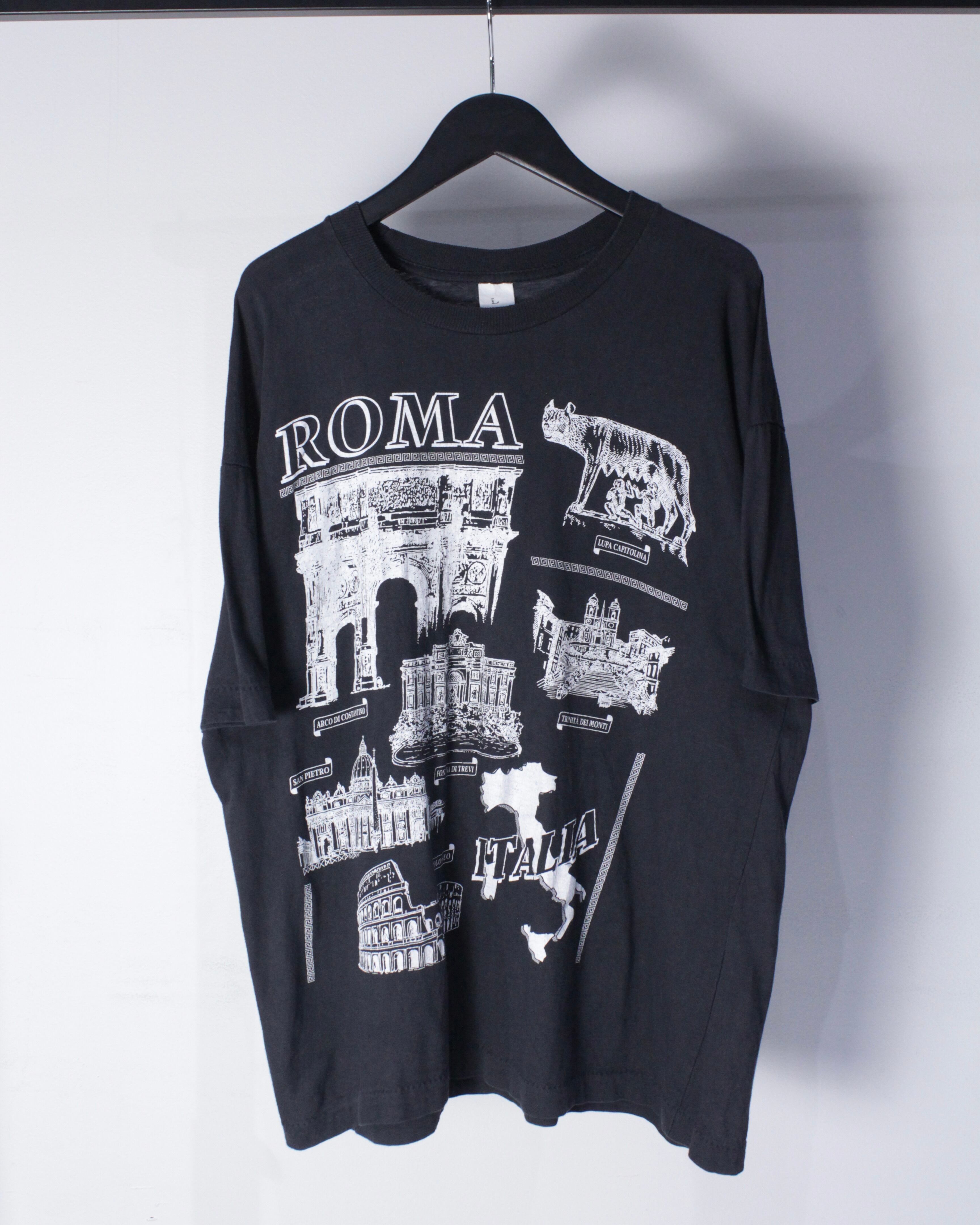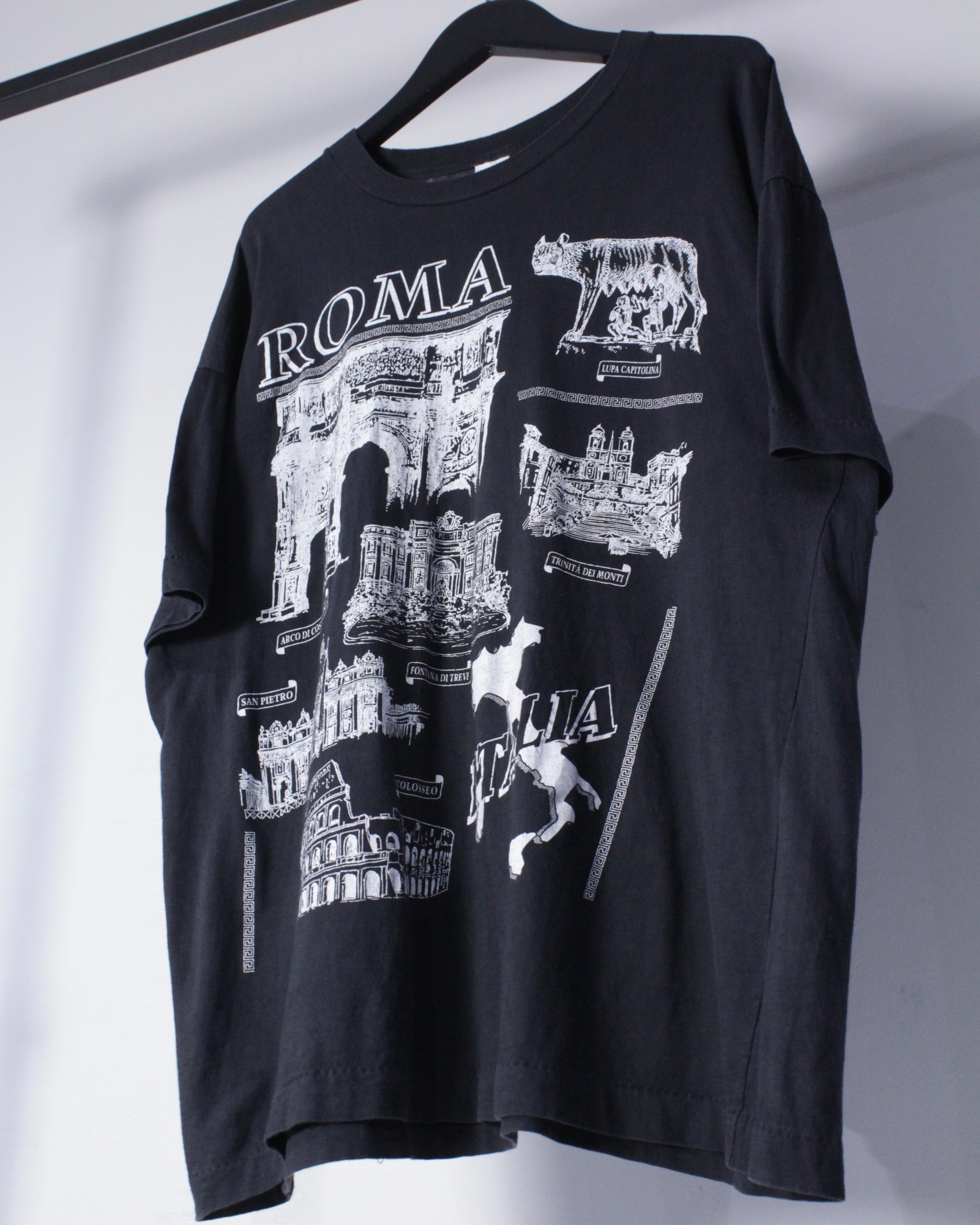 フェード感の良いブラックのボディをベースに、イタリアの観光名所をプリントで載せたTシャツ。