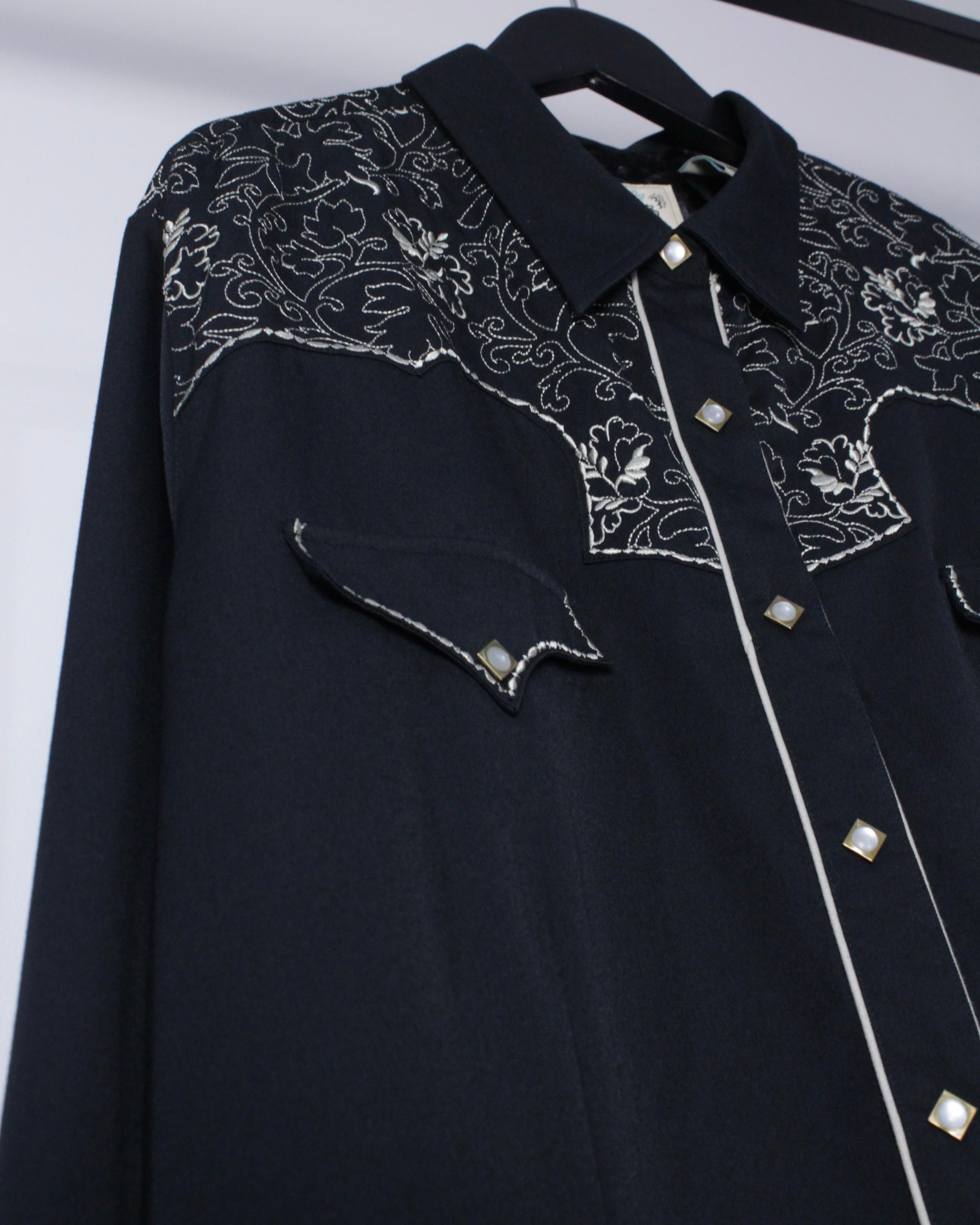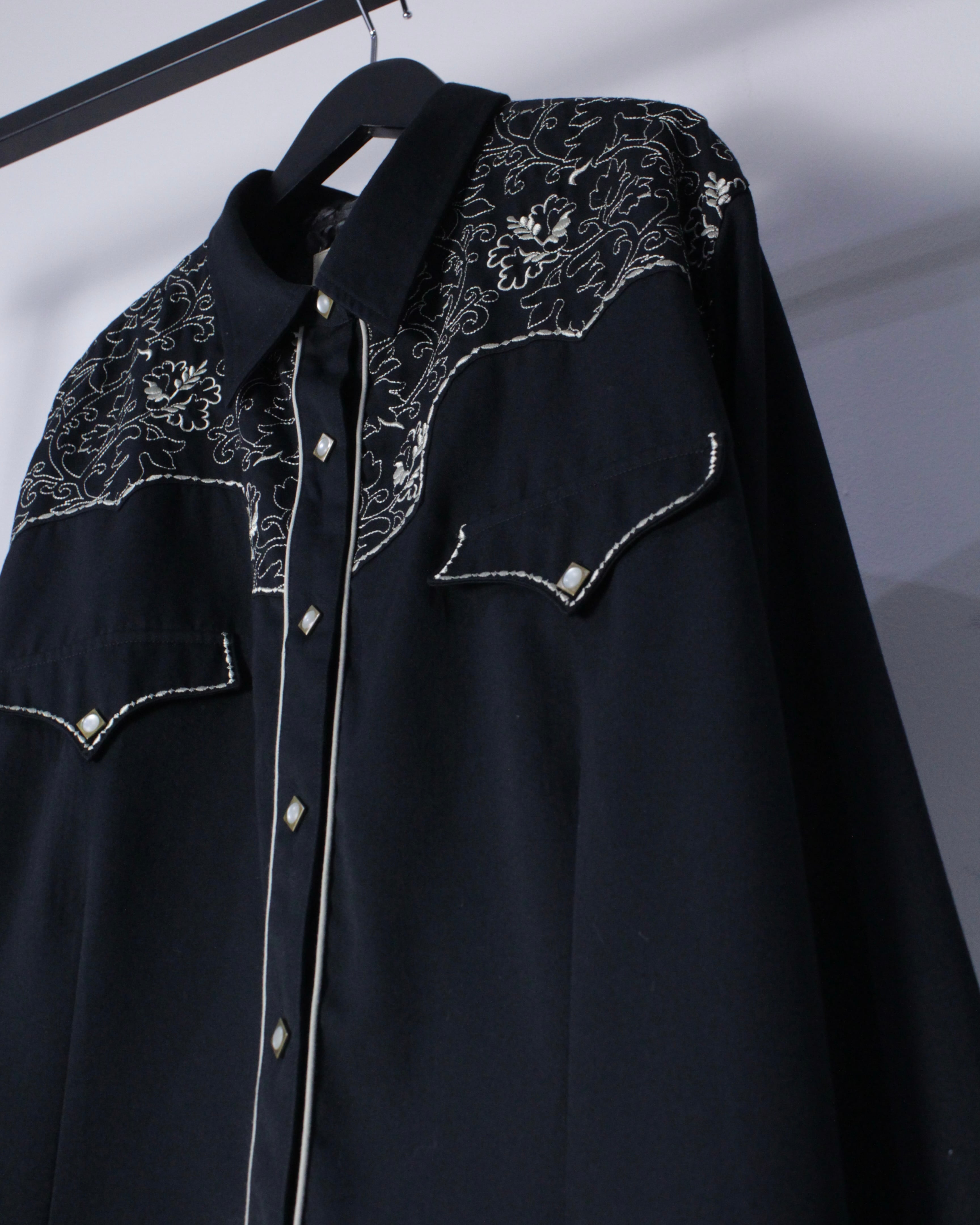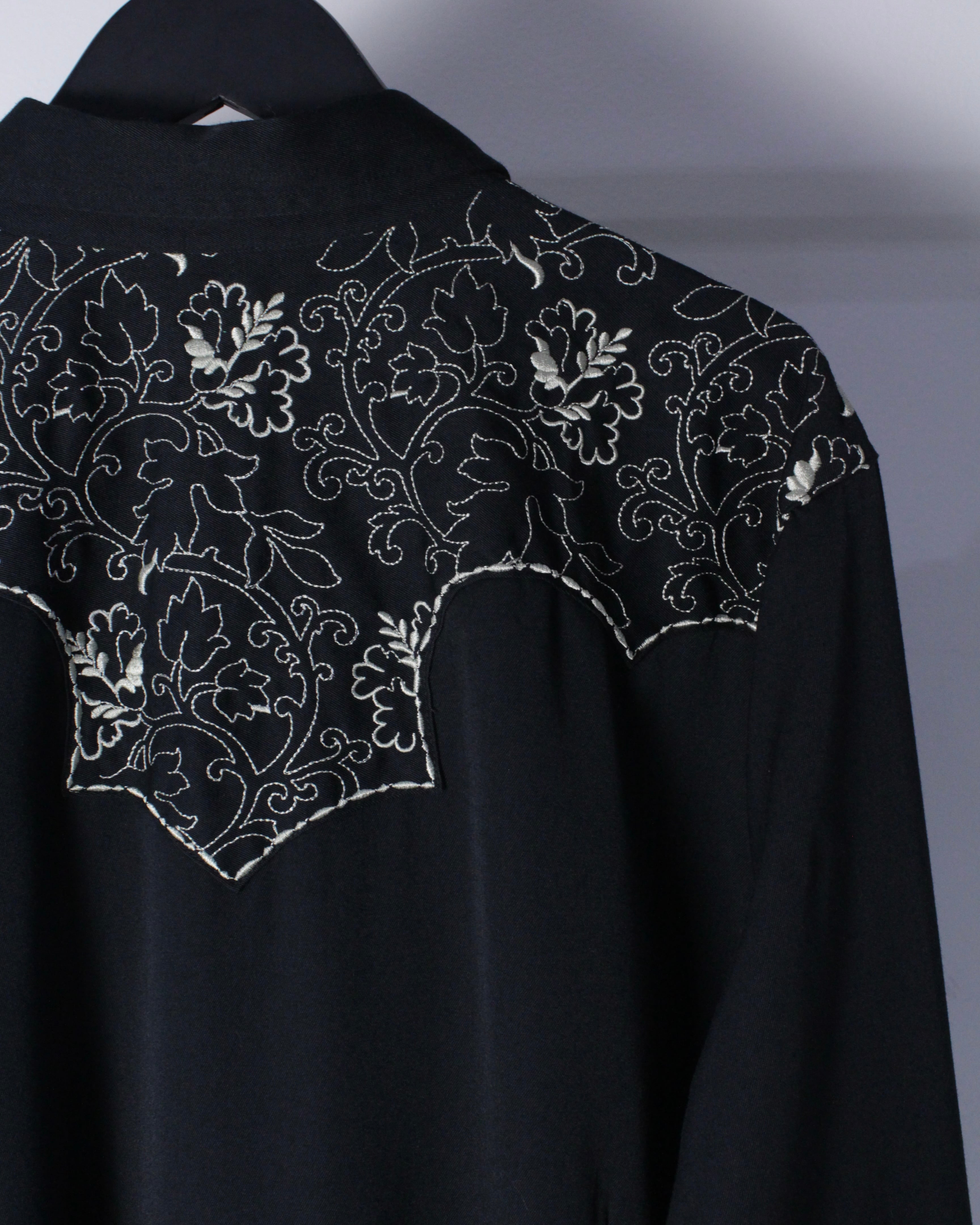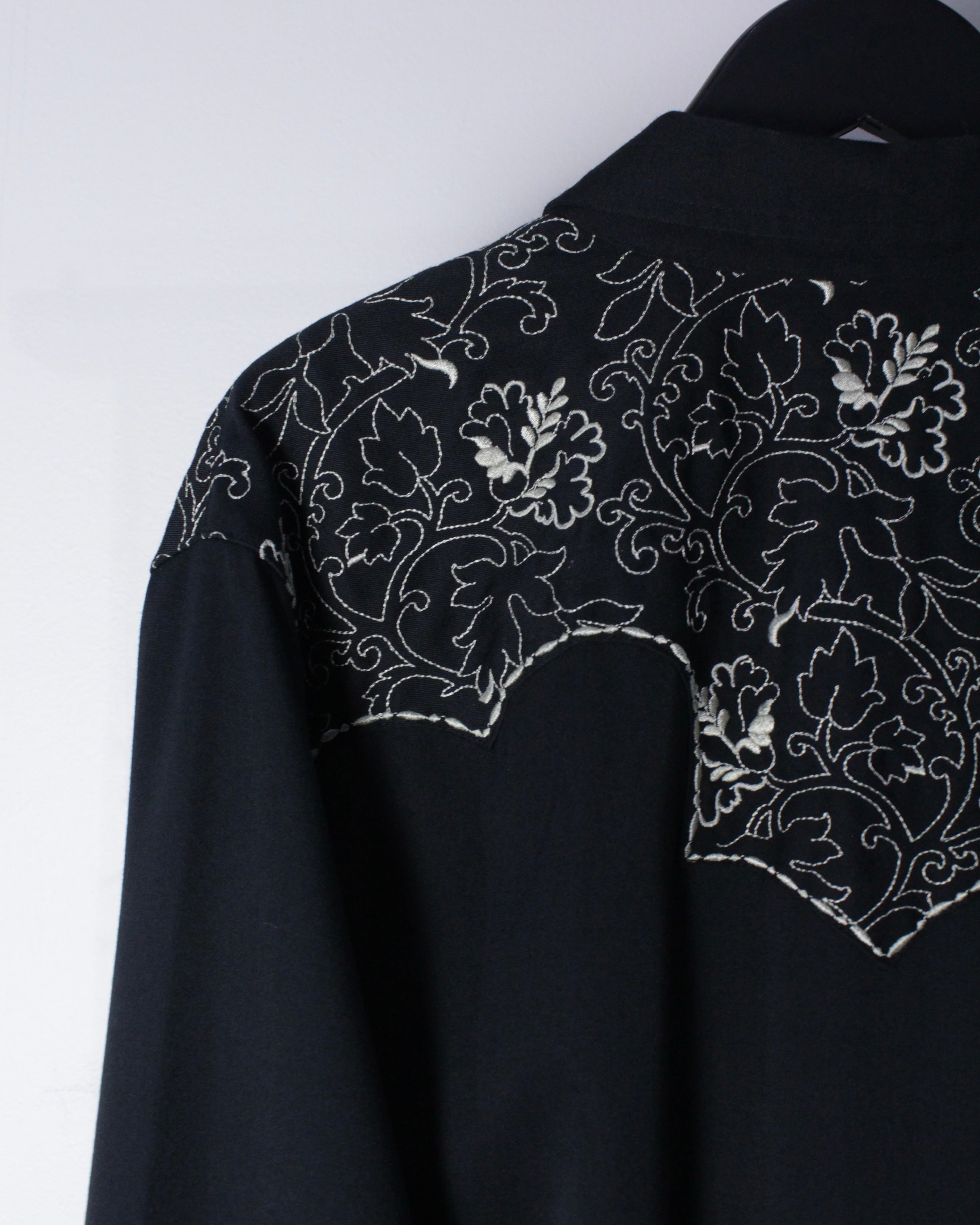 コシ、しなやかさを併せ持ったツイル織のボディに、ヨークにボタニカルな刺繍を刻んだウエスタンシャツ。