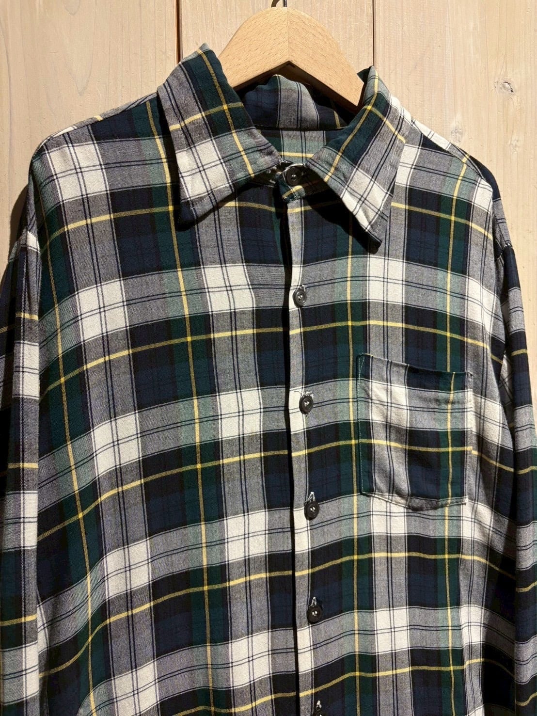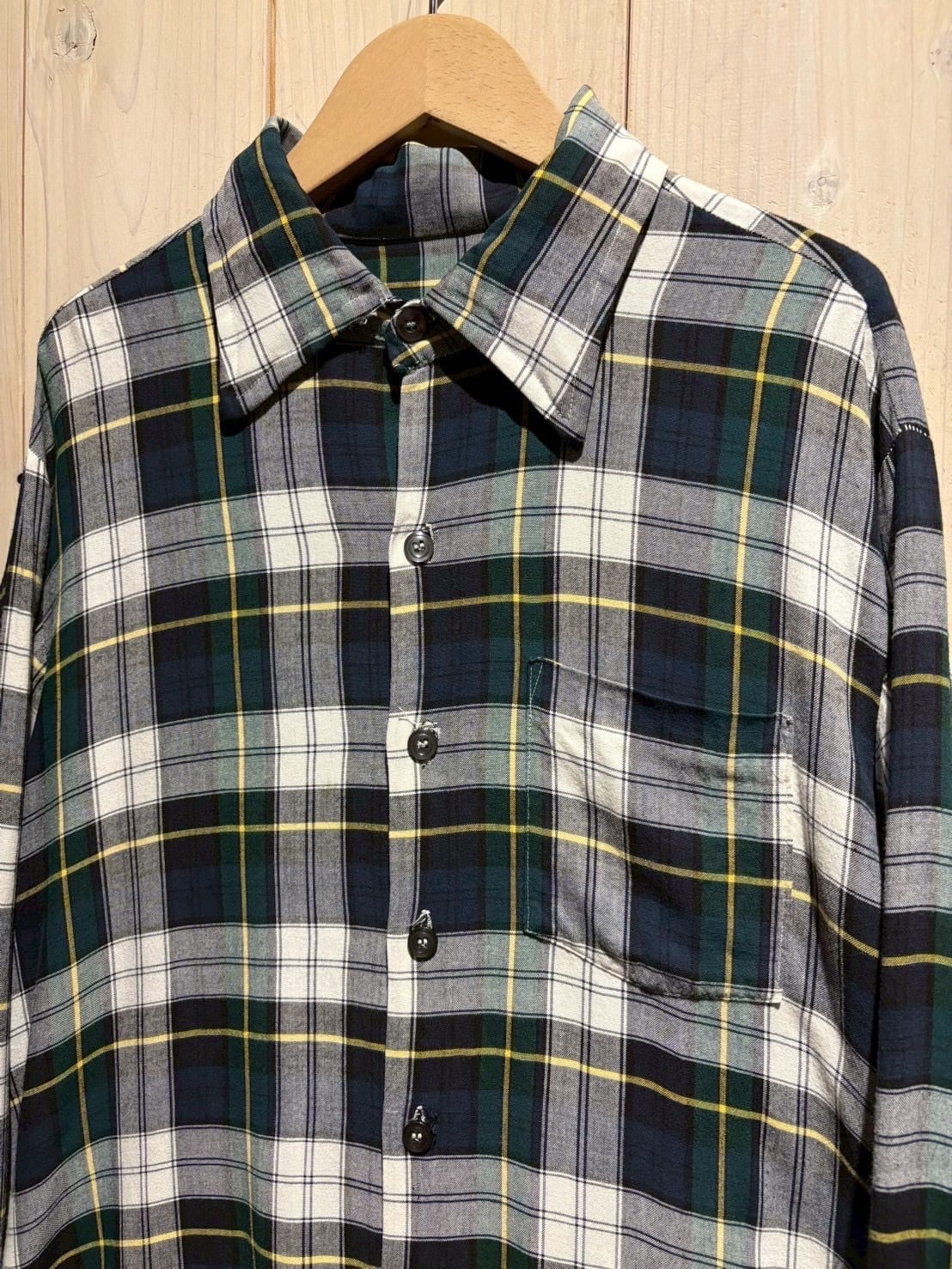 70's、レーヨン、更には配色の良いチェック柄とヴィンテージ好きの心を射抜く3拍子が揃ったこちらの個体、稀少なピースです。