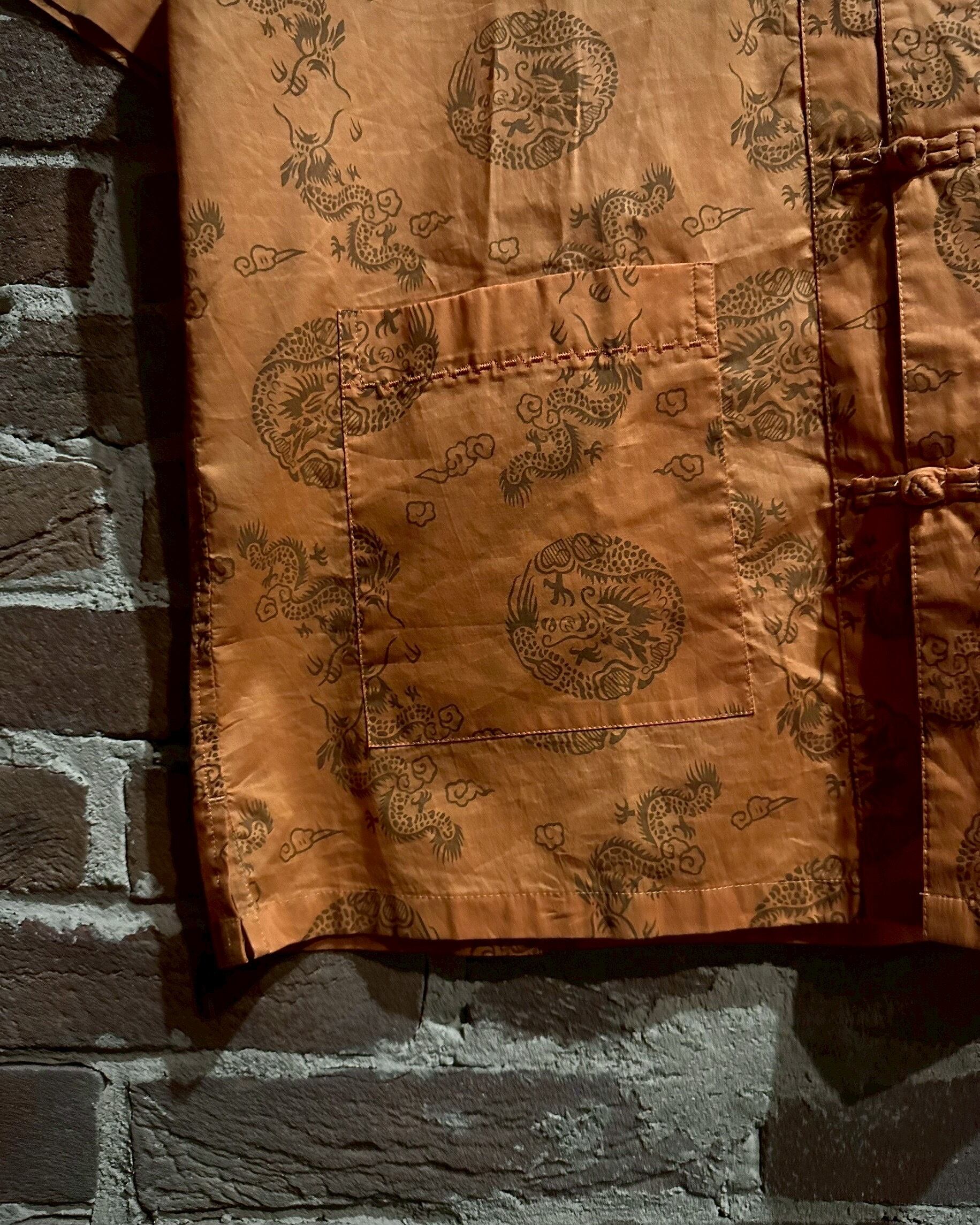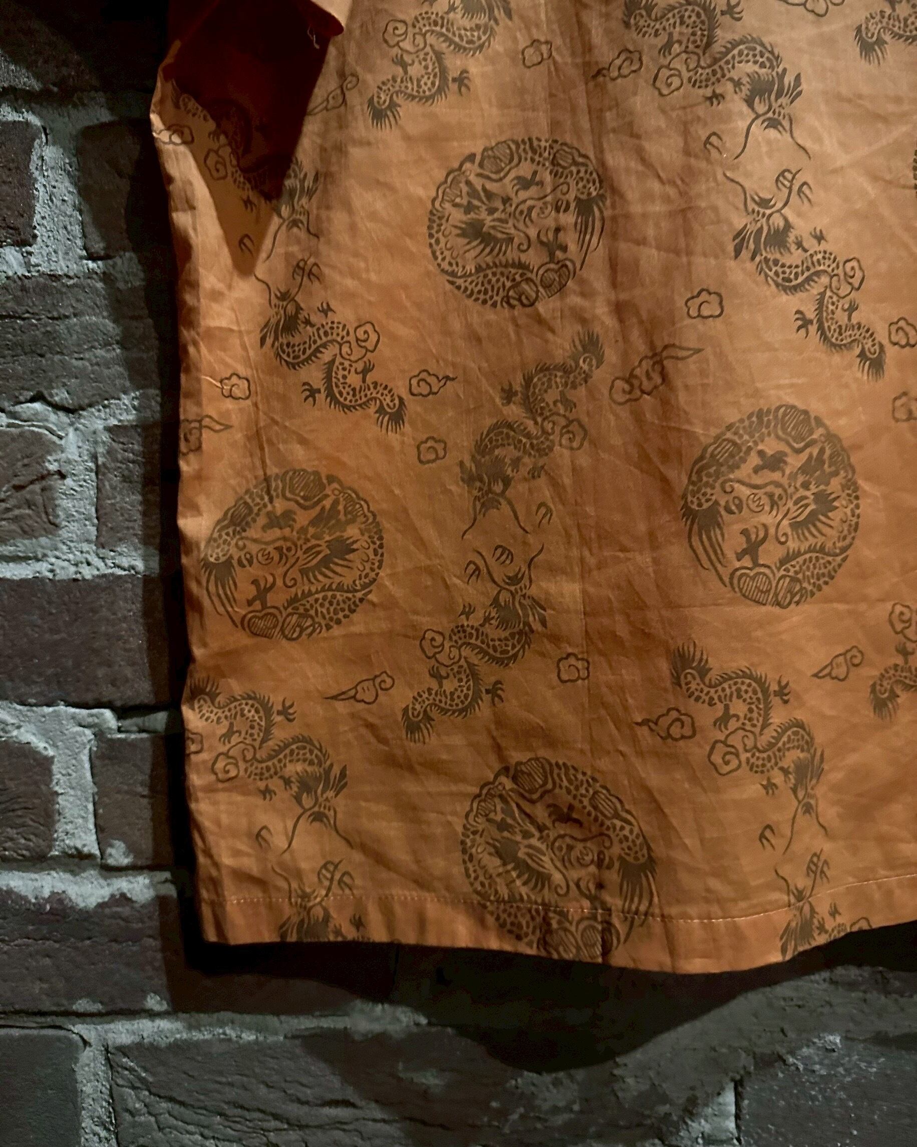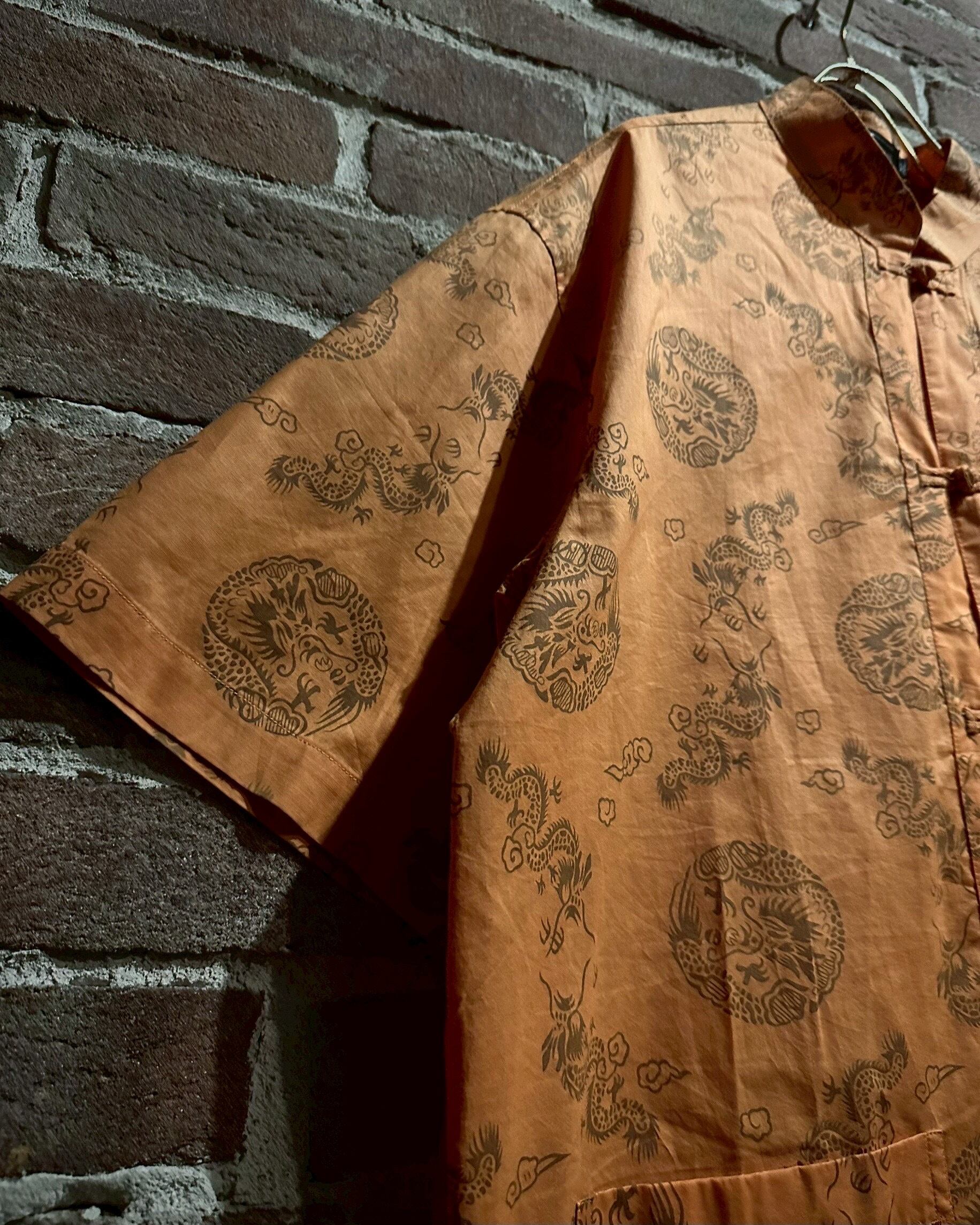 肌触りの良いコットンを用いたボディに、龍を載せた半袖チャイナシャツ。