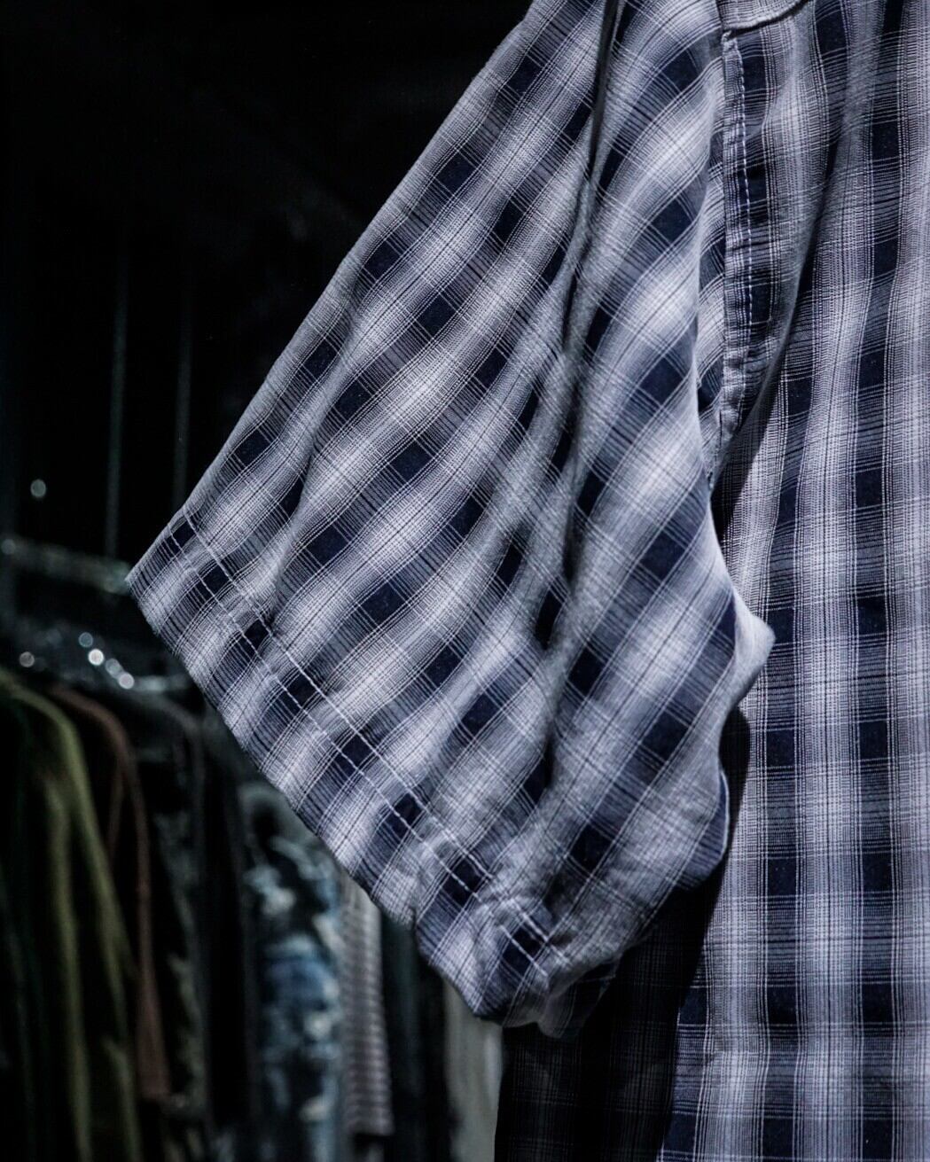 オンブレやシャドーチェックならではのグラデーションがかったチェックが雰囲気をムンムンに放ちますね。音楽やストリートカルチャーと深い繋がりのあるデザインでもあり、お洋服好きの皆様なら1着はワードローブに取り入れておきたいアイテム。
