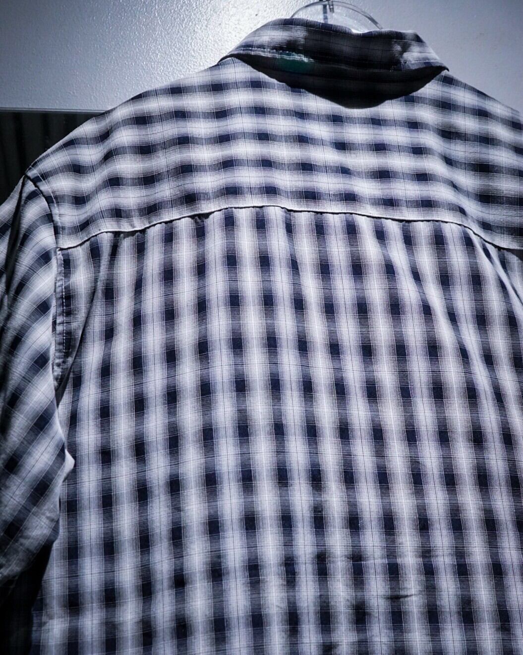古着の定番アイテムでありつつ、当店では今期より一層気分なチェックシャツ。汎用性抜群の配色にサイジング、状態も完璧。オンブレチェックというカルチャー的な観点から見ても素晴らしい半袖シャツの1着です。